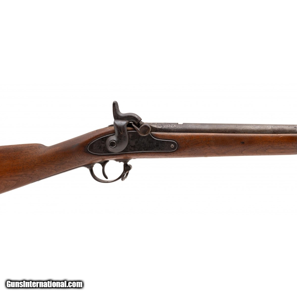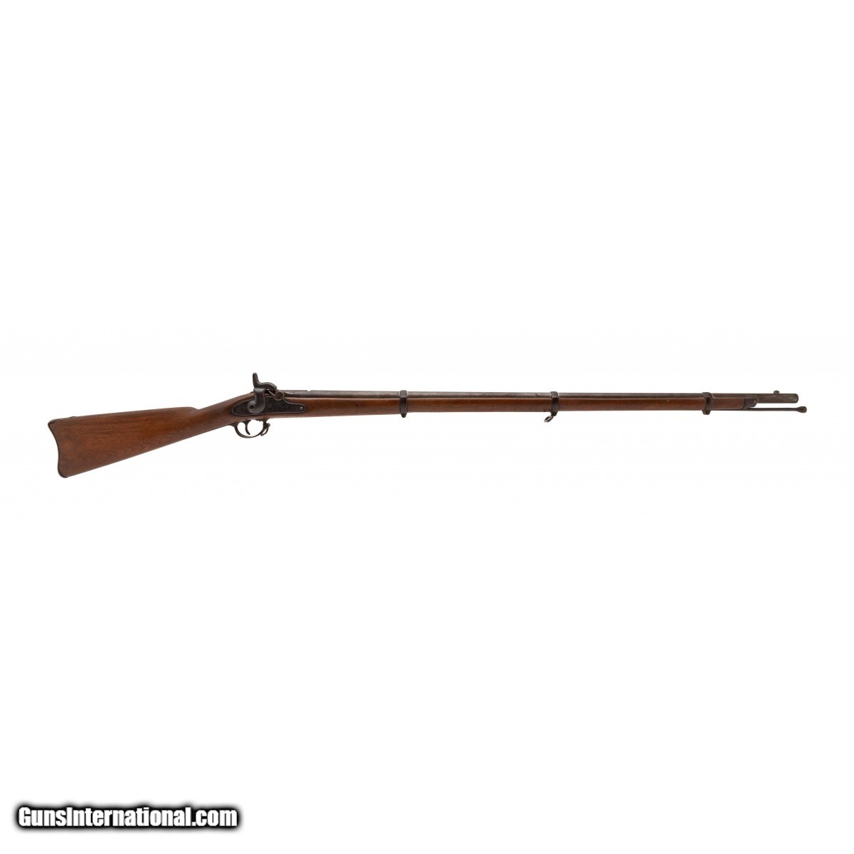 NSN, made in 1864, .58 caliber, 40"" round rifled barrel with standard proof marks visible. Barrel is a dull grey patina with light surface oxidation noted, rear leaf sight is missing. Stock has been lightly cleaned at some point with minor nicks, dings and scratches visible. Action holds at half and full cock.