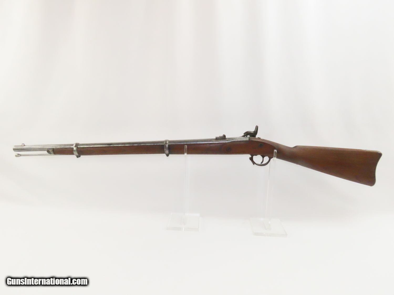 Description: Antique CIVIL WAR Contract COLT SPECIAL Model 1861 EVERYMAN’S Rifle-MUSKET “1863” Dated Lock and “1862” Barrel Here we present an antique Civil War Colt Special Contract Model 1861 Percussion Rifle-Musket, produced in 1863 at the Colt’s Patent Fire Arms Manufacturing Company of Hartford, Connecticut. Production began in September of 1862 while the war was in full swing. The Union was still trying to make up for arms shortages and the destruction of Harpers Ferry Armory with production at Springfield, supplementing this with contracts with over 20 other contractors, like Colt, for rifle-muskets. The M1861 is representative of the “everyman’s” rifle during the war. About 1.5 million rifle-muskets were made in the U.S., over 800,000 of which were made by the Springfield Armory. This was the last hurrah of the rifle-musket as arms development and tactics rapidly advanced during the short period of the American Civil War. The American Civil War raged from April 12, 1861 to May 9, 1865 in which roughly 130,000 Special Model 1861 muskets were produced by Colt for the US government. Nevertheless, the 1861 represented new technology as it was made for use with the Minié ball, a hollow based, conical projectile that was small enough to quickly push down the muzzle of a rifled barrel and expanded to create a good gas seal unlike a solid, round ball. Almost immediately after the war, the US military switched from the old muzzle loading type weapons to the newer breech loading rifles, bringing an end to the musket as a standard frontline firearm in American history. The overall condition is very good. The action is strong. The bore is shiny bright. The left barrel reads “NJ STEEL”. The lock is dated “1862”, while the barrel reads “1863”. The top of the butt plate is marked “US”. The barrel has been shortened sometime over the years and a new blade front sight installed. Here we have a nice example of a Colt M1861 Percussion Rifle-Musket! Own the original! This is a legitimate antique and not a reproduction. Barrel is 30 inches. Caliber: .58 Overall condition as seen in photos. Very Fast. Very Safe. FREE SHIPPING WORLDWIDE. Delivered directly to your door by express mail! Guaranteed AUTHENTIC & Includes CERTIFICATE OF AUTHENTICITY. ancestryguns $1050 #20601 SOLD Antique: Yes |