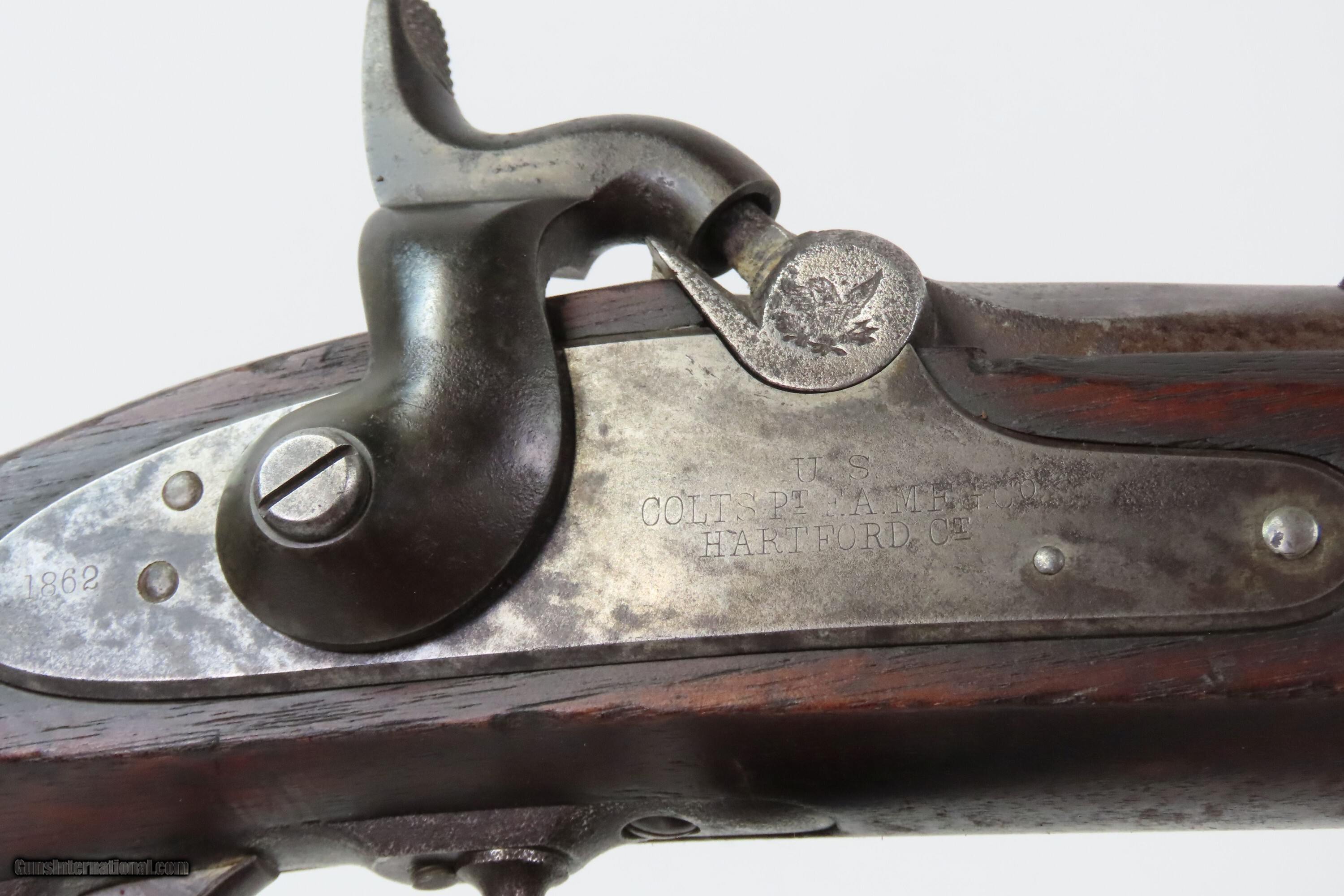Description: CIVIL WAR Era Antique COLT SPECIAL M1861 “Everyman’s” Rifle-Musket BAYONET NEW JERSEY Marked .58 Caliber w/SCABBARD & SLING Here we present an antique New Jersey Marked Civil War U.S. Colt Special Contract Model 1861 Percussion Rifle-Musket, produced in 1862 at the Colt’s Patent Fire Arms Manufacturing Company of Hartford, Connecticut. Production began in September of 1862 while the war was in full swing. The Union was still trying to make up for arms shortages and the destruction of the Harpers Ferry Armory with production at Springfield, supplementing this with contracts with over 20 other contractors, like Colt, for rifle-muskets. Colt contracts with the Federal Government, along with State Governments, resulted in approximately 100,000 muskets being produced. The Model 1861 is representative of the “everyman’s” rifle during the war. About 1.5 million rifle-muskets were made in the U.S., over 800,000 of which were made by the Springfield Armory. This was the last hurrah of the rifle-musket as arms development and tactics rapidly advanced during the short period of the American Civil War. Nevertheless, the 1861 represented new technology as it was made for use with the Minié ball, a hollow based, conical projectile that was small enough to quickly push down the muzzle of a rifled barrel and expanded to create a good gas seal unlike a solid, round ball. Almost immediately after the war, the US military switched from the old muzzle loading type weapons to the newer breech loading rifles, bringing an end to the musket as a standard frontline firearm in American history. The American Civil War raged from April 12, 1861, to May 9, 1865, in which roughly 130,000 Special Model 1861 muskets were produced by Colt for the U.S. government. Like the Springfield production of the Model 1861, the Colt could be considered the “everyman’s” infantry weapon. The overall condition is good. Original dark patina. Strong action. The bore is dark but in good shape. The markings are legible. Theres “N.P.” cartouche on the left barrel and stock flat. The stock and forend are in good shape with average scuffs and dings. Good U.S. marked bayonet and scabbard. Good leather sling. Own the original! This is a legitimate antique and not a reproduction. Barrel is 40 inches. Caliber: .58 Percussion Overall condition as seen in photos. Very Fast. Very Safe. FREE SHIPPING WORLDWIDE. Delivered directly to your door by express mail! Guaranteed AUTHENTIC & Includes CERTIFICATE OF AUTHENTICITY. ancestryguns $2200 #250499 Antique: Yes Price: $2,200.00 Buy Now Pay with ![]() Contact Seller |