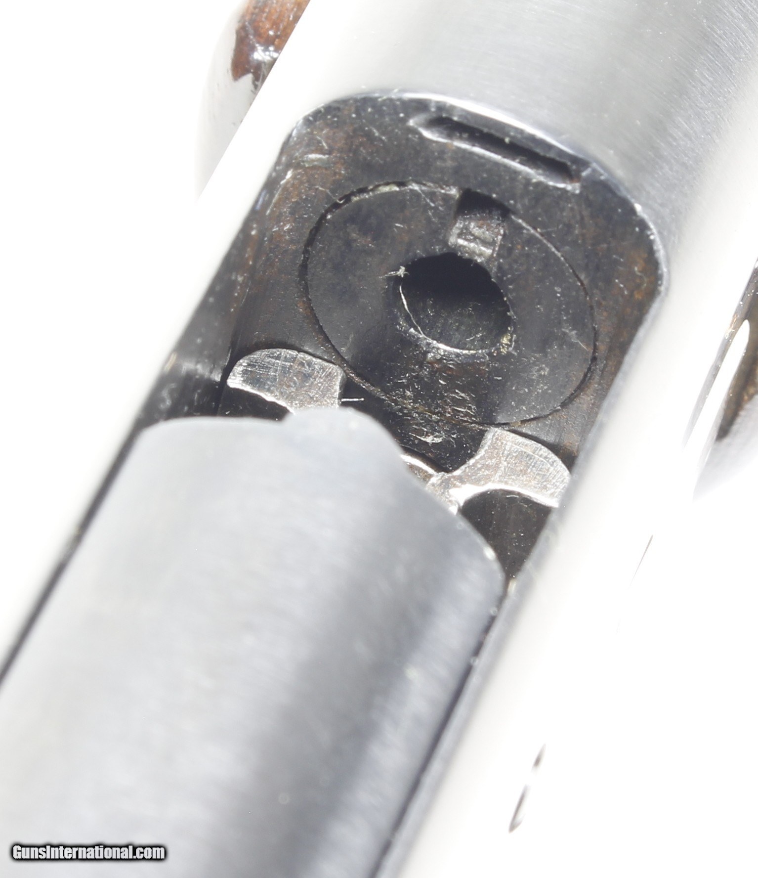 Description: Colt Lightning Small Frame Rifle in .22 Caliber. SN #27179. Mfg. in 1897. 24" octagon barrel. 13 3/8 LOP. The re-blued metal and re-finished wood are very nicely done. The bore is good for it's age. Frosted throughout with light pitting but strong rifling. Good mechanical condition. All markings are clear and visible. Top, back part of forend has been tapered to even out both sides, as the pictures show. You don't find many of these in this kind of condition. This is an antique and requires no FFL to purchase. SOLD Antique: Yes |