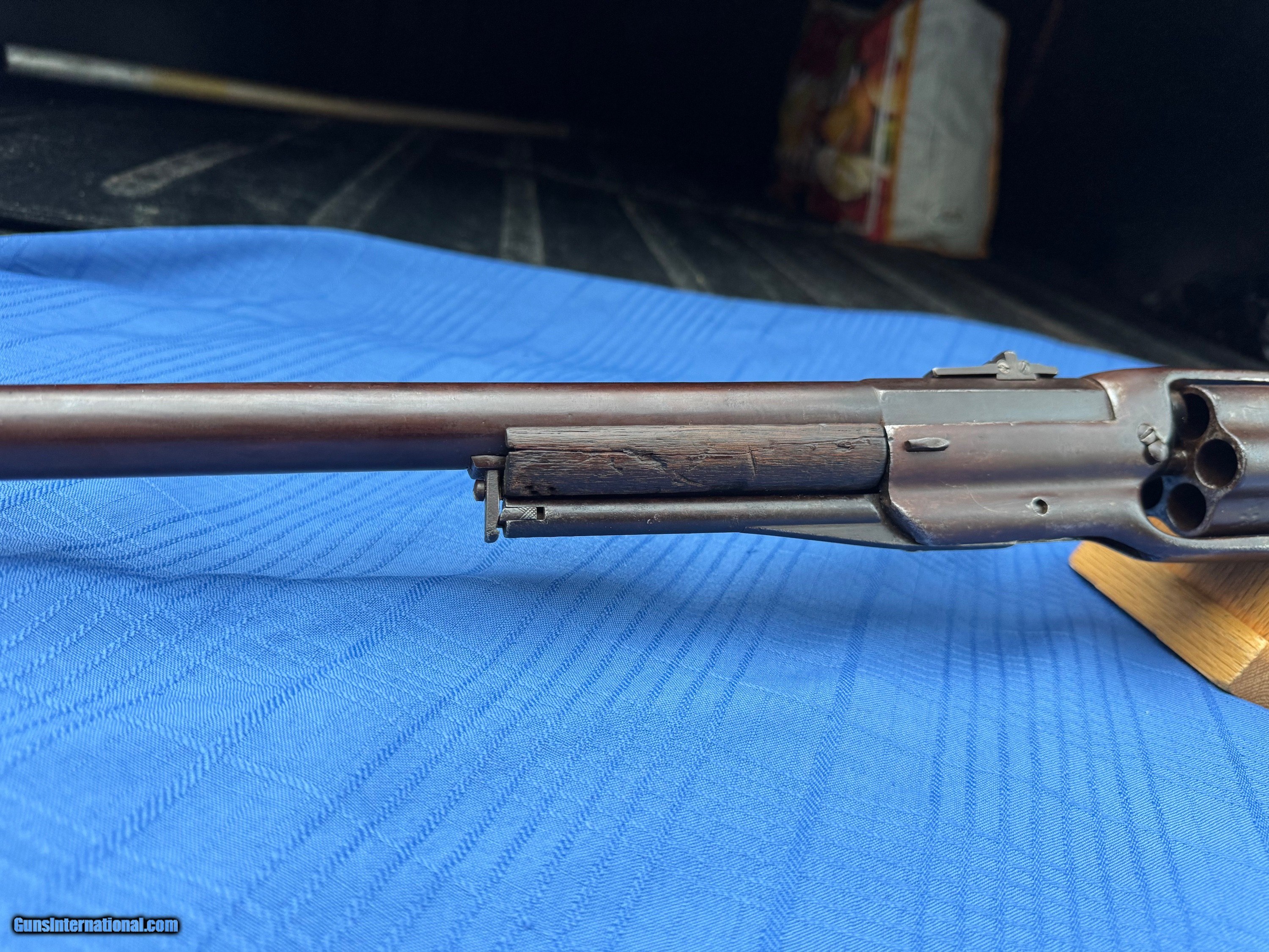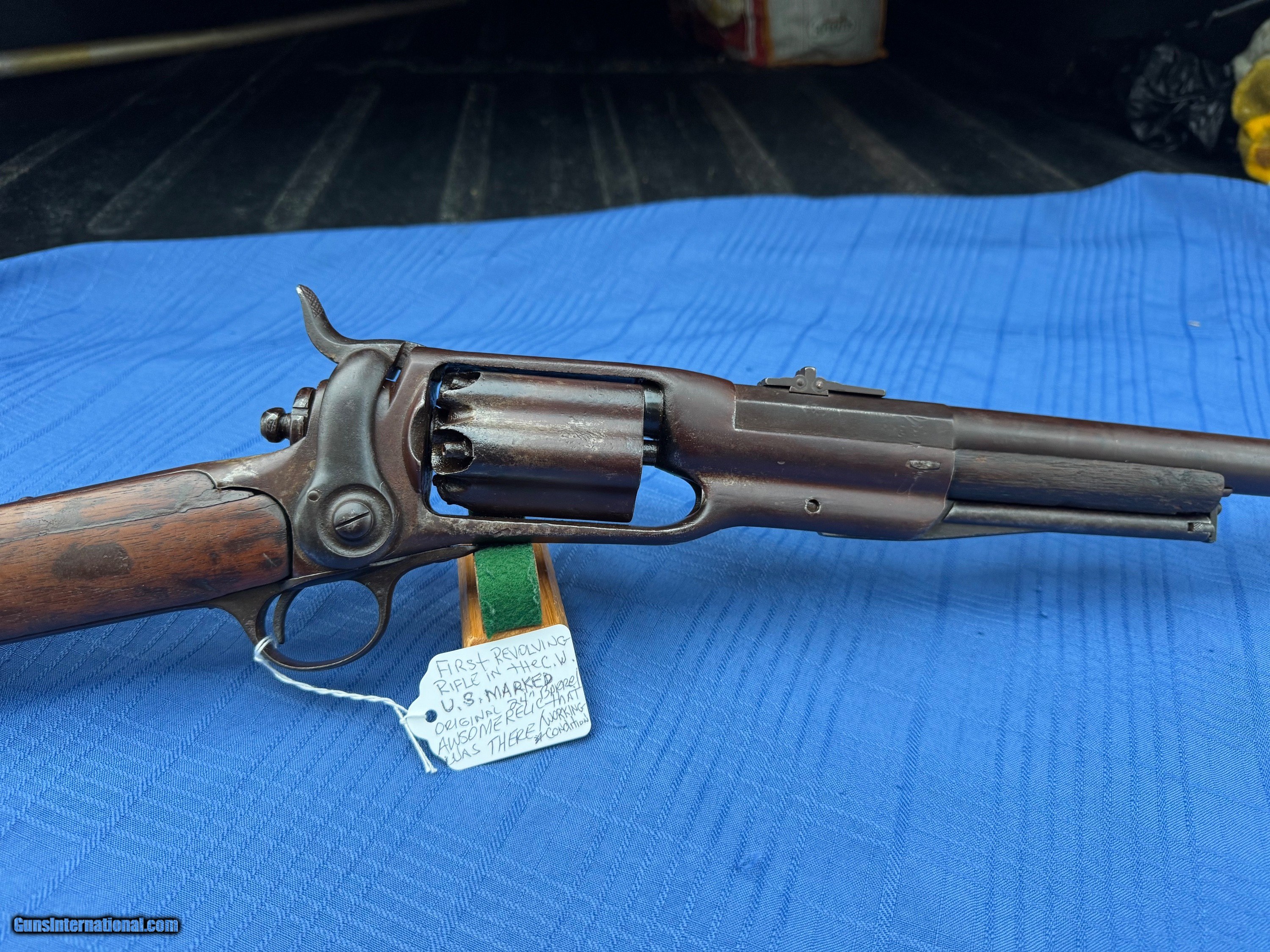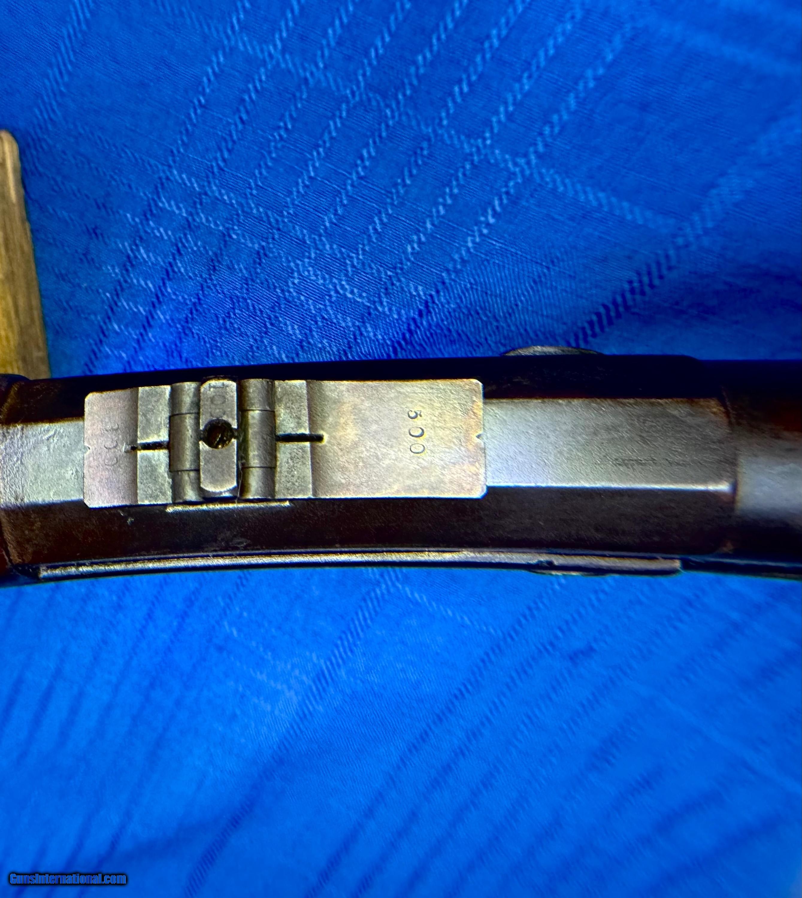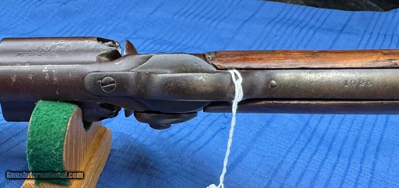 Description: Here's a Important Piece Of American History ! Colt 1855 Revolving Rifle U.S. marked ! Serial number 1025. Original 24" barrel . 5 Shot Cylinder in 56 caliber. The metal is a nice brown blue patina . Comes with original sights . Flip up sight that is marked from 100 to 500 . Original stocks are in good condition. All marks are pretty legible . Gun is in very good working condition. Bore and mechanics are in good condition. Man If this gun could talk ! This rifle was there ! Gives me goose bumps every time I pick it up ! This is the real deal . 1st Revolving Rifle in the American Civil War ! Please review my photos and email me with any questions ? 3 day inspection as Allways! Thank you for looking, Little Jo SOLD Antique: Yes Rifle Caliber: .56 Manufacturer: Colt Model: 1855 Serial Number: 1025 Barrel Length: 24” Condition: Very good |