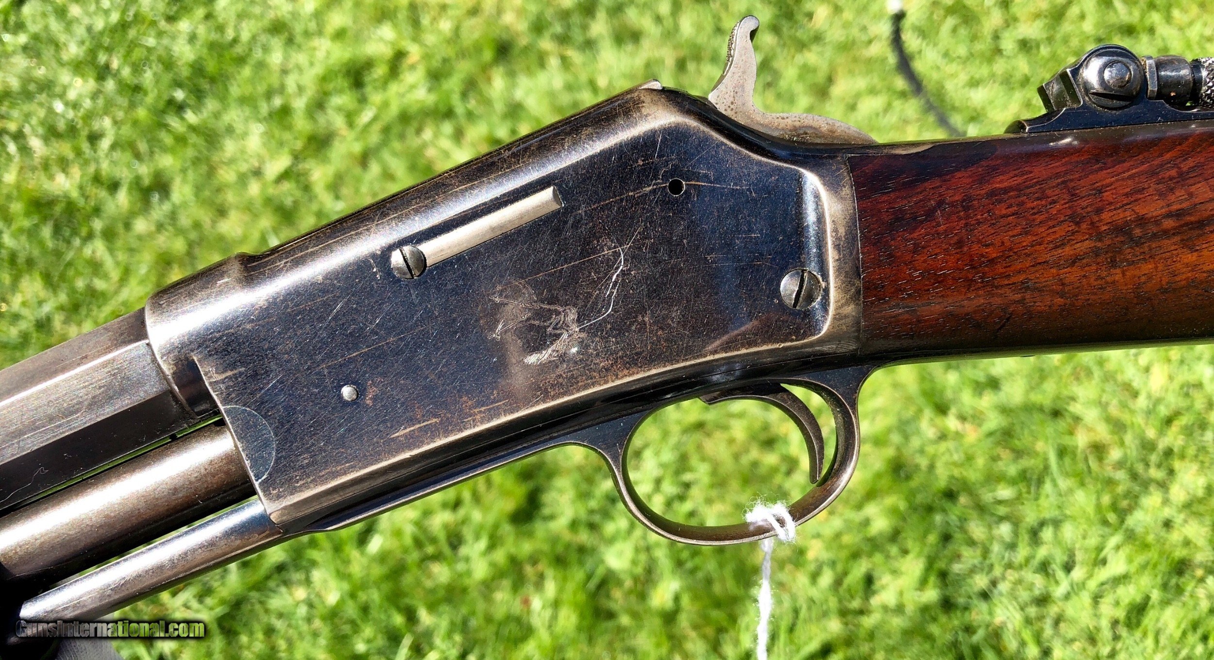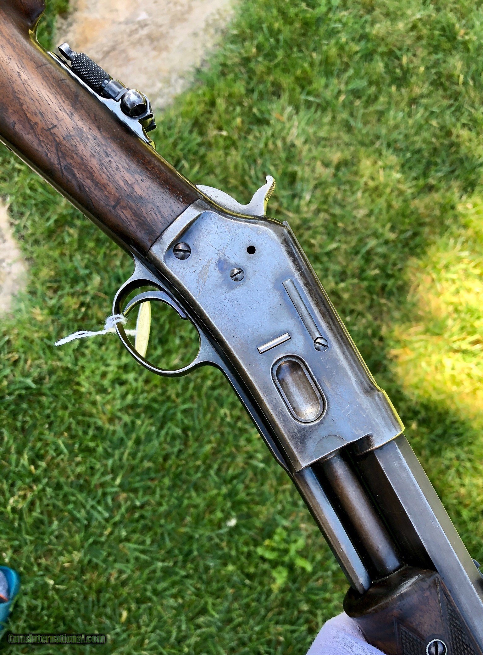 Description: This Medium Frame Colt Lightning Rifle is overall a very nice example. The frame has a beautiful and about 70% manjority of Original blue finish remaining. The wood is excellent. There is a tang sight present that appears original to the period. The barrel has a light brown patina that shows little to no original finish. The address is sharp as well as the caliber marking. Mechanically the action works excellent. Overall a very nice Lightning! Shipping is $65 fully insured. $2,000 SOLD SOLD Antique: Yes |