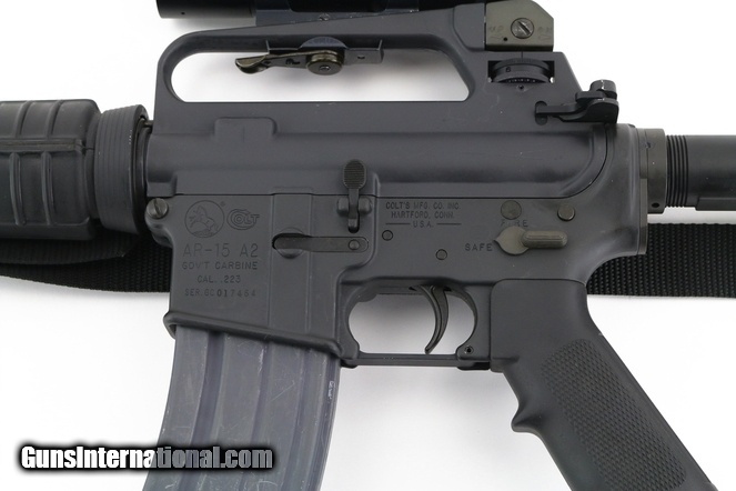 Description: Colt AR-15 A2 .223 caliber rifle. Colt Government AR15A2 with Colt 4x scope, 2 position butt stock, sling, and 30 round magazine. Very good overall condition.