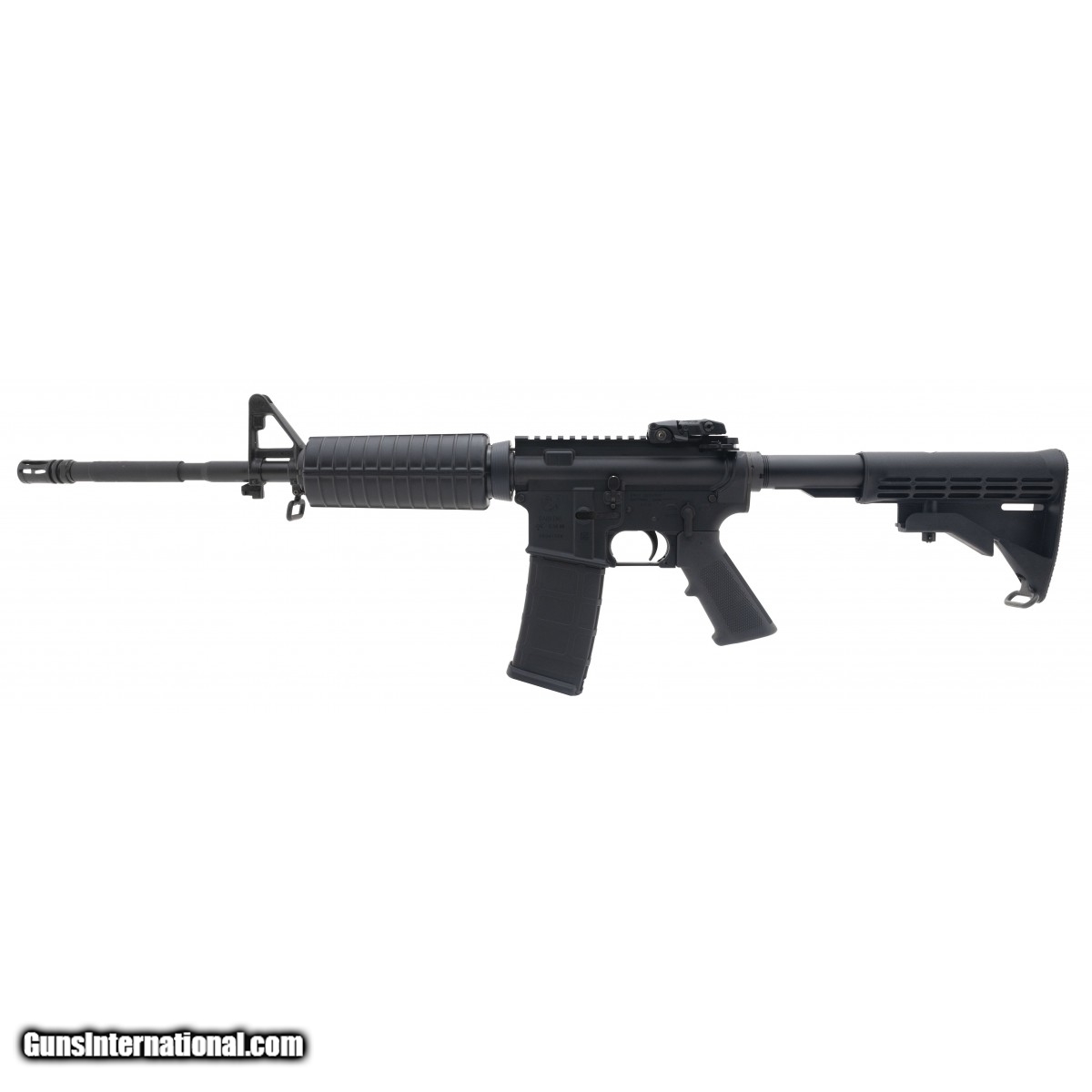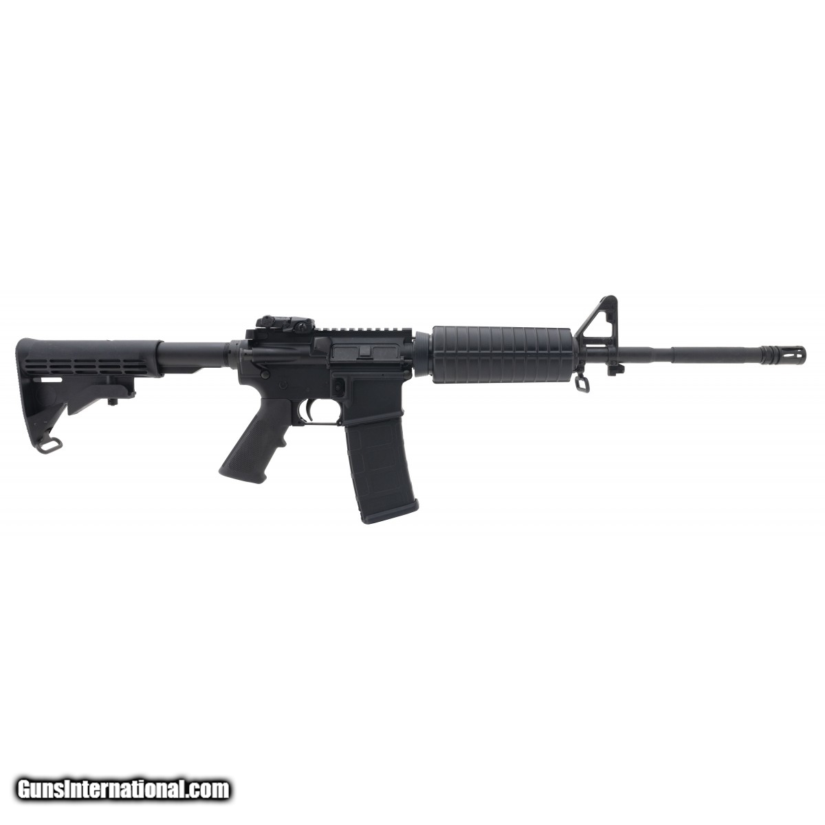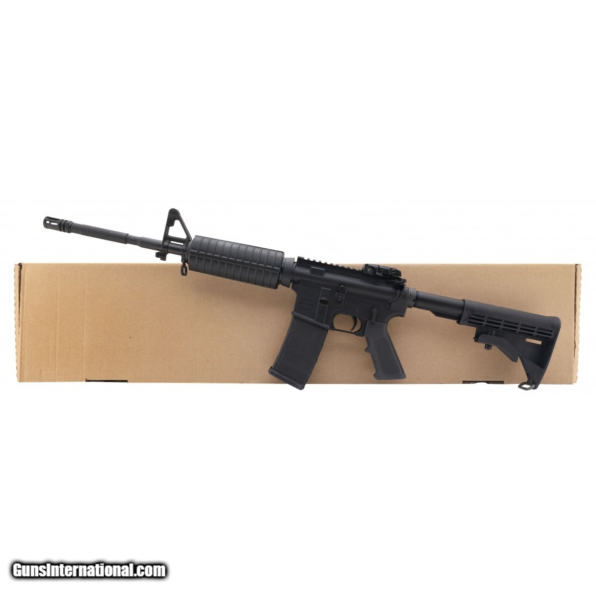 SN:CR041368. Semi-auto 16"" M4 carbine with a polymer fore-end, fixed front sight post, & flip-up rear sight. In excellent condition. Comes in the original box with lock & PMag.