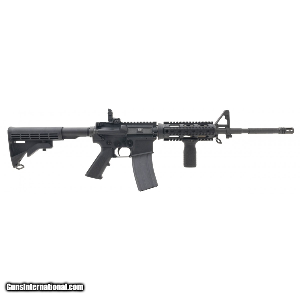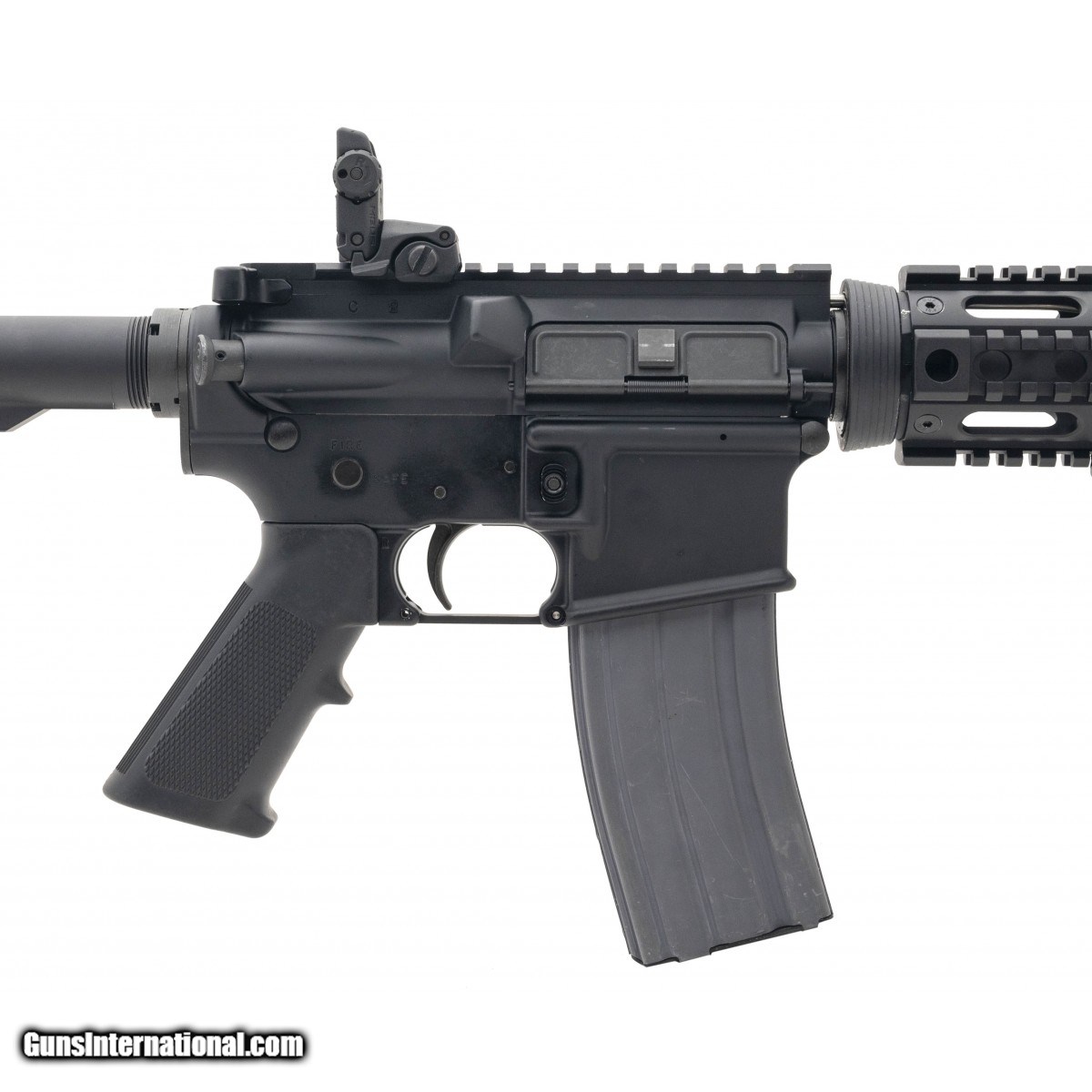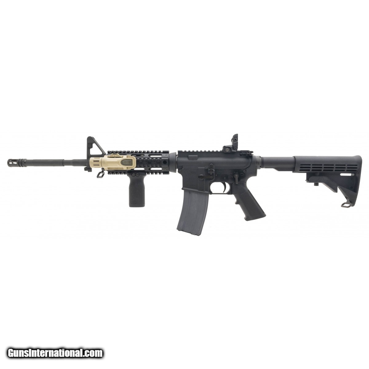 Description: " SN:LE352710. Semi-automatic AR pattern carbine rifle with a fixed front sight post, quad rail, Magpul RVG, Inforce weapon light, flip up rear & A2 furniture. In excellent condition. SOLD |
