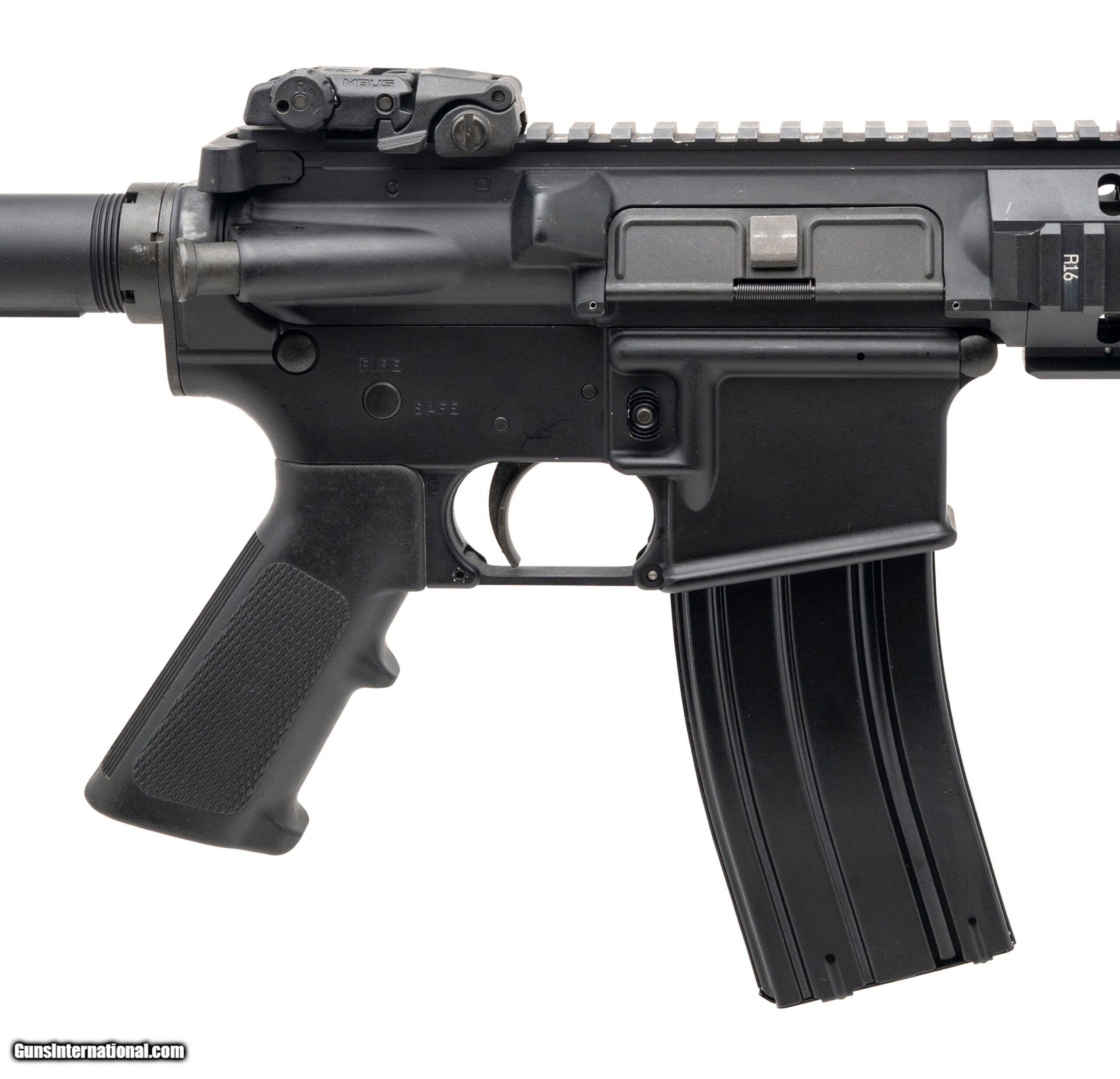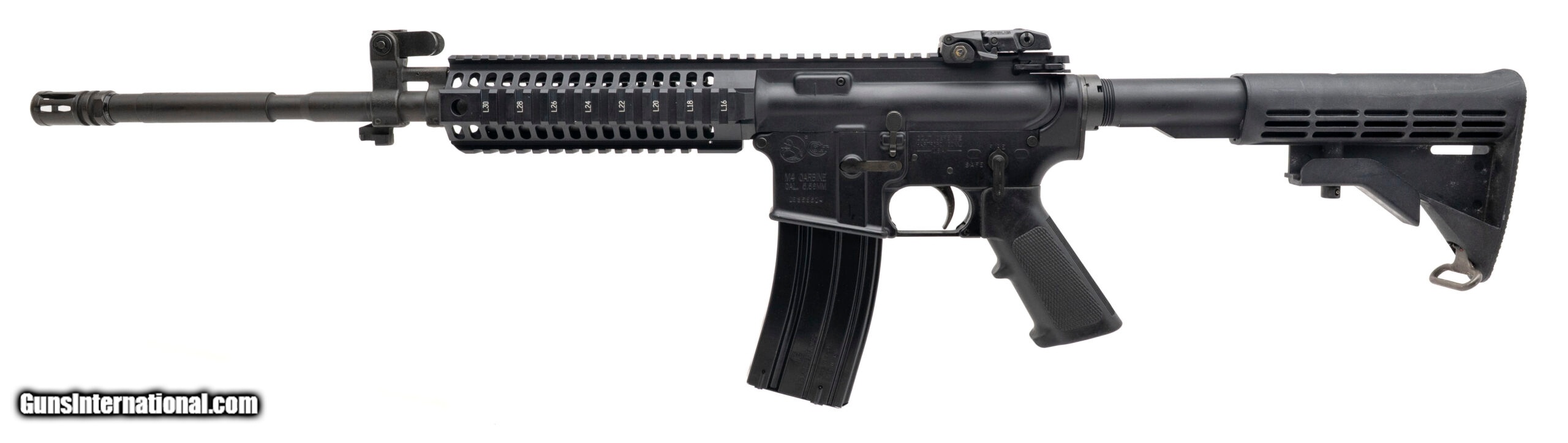 Description: "SN: LE358614. Modern production, 5.56 NATO with a 16"" barrel. Bore is bright with strong rifling. Semi-auto tactical carbine with a fixed flip-up front sight and bayonet lug adaptor. Overall condition is very good. SOLD |