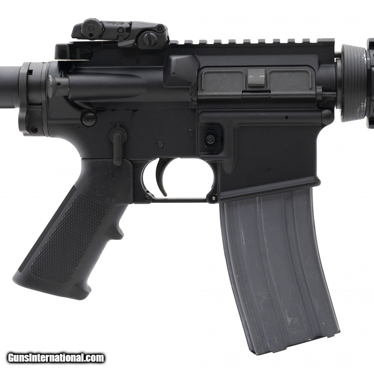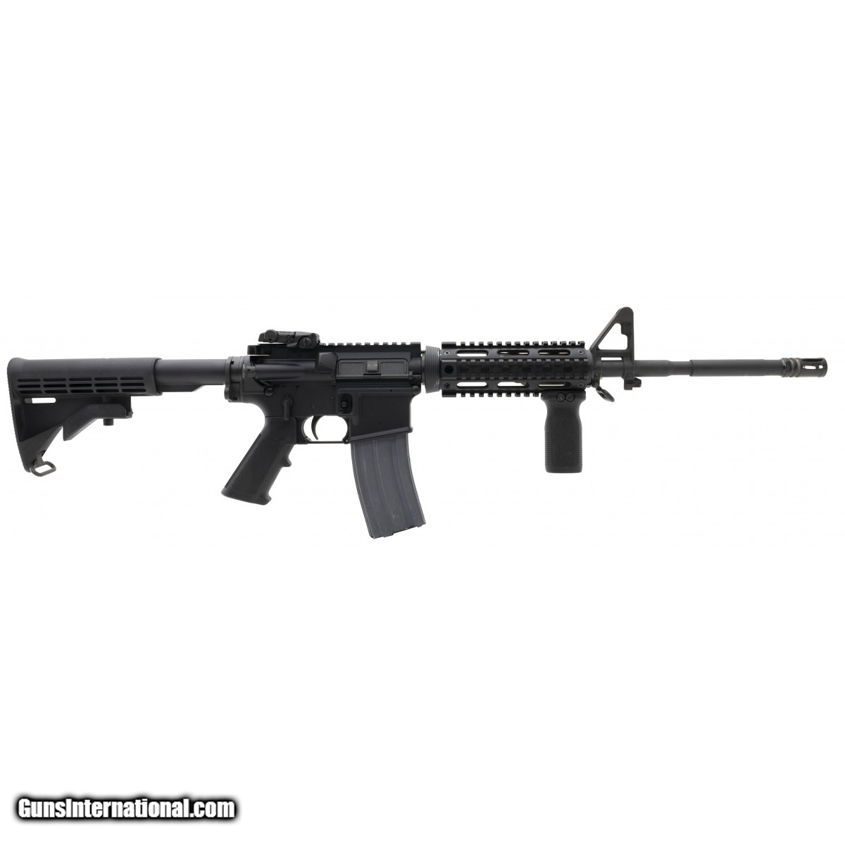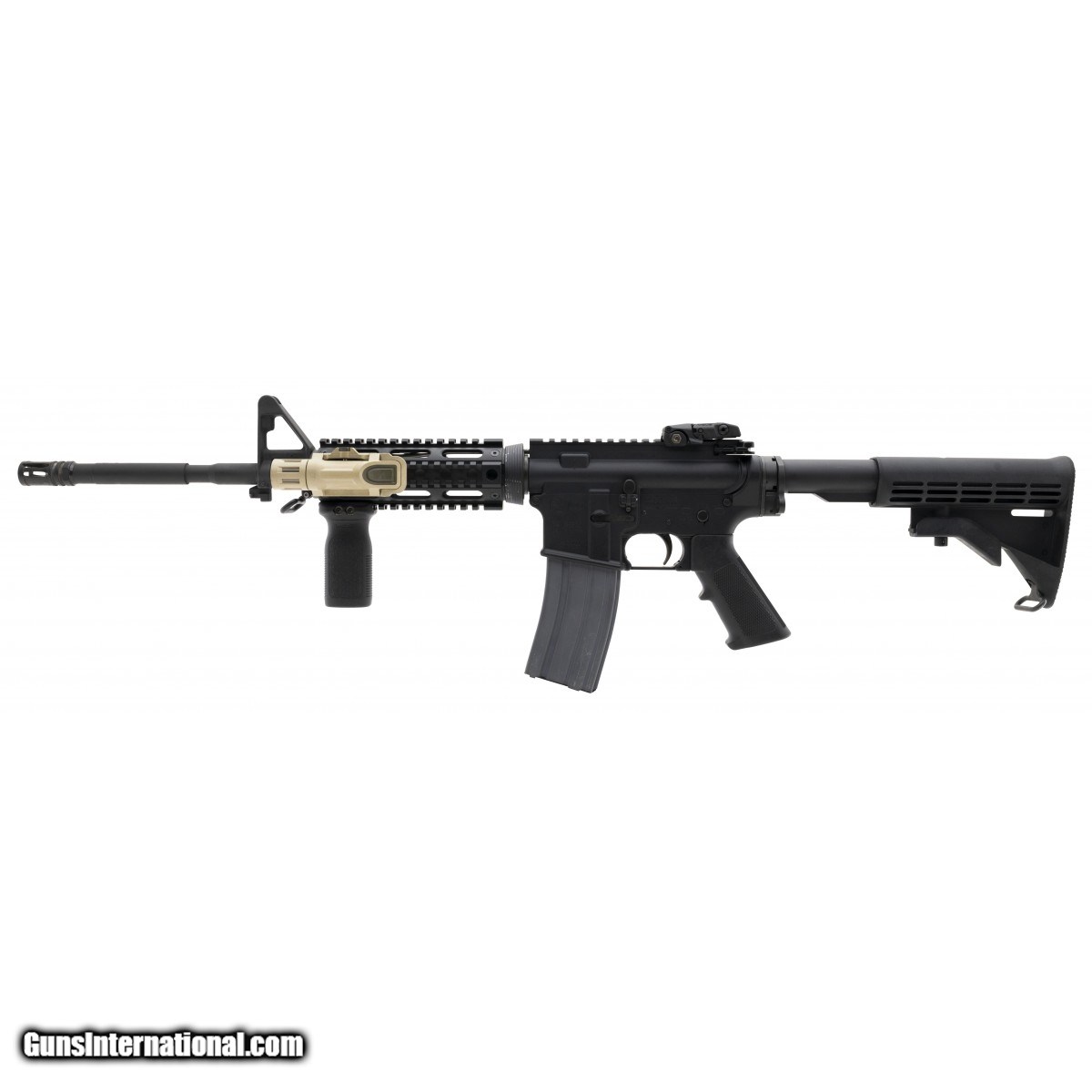 Description: " SN:LE352710. 2013 model M4 with a quad rail, integrated front iron sight, bayonet lug, Inforce weapon light, MOE foregrip, Magpul MBUS rear sight, and adjustable stock. In excellent condition. SOLD |