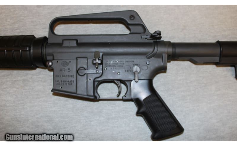 Description: Very good condition, light wear, small nicks and scratches. Original Colt 9mm AR-15 carbine - 16" barrel, factory black finish, standard AR-15 type controls, adjustable iron sights, factory trigger, checkered pistol grip, 2 postion adjustable butt stock, and sling attachments. An excellent choice for Colt collectors or for Pistol Caliber carbine shooting competitions. 9mm Luger SOLD Chambers: semi auto Metal Condition: Very good Bore Condition: Bright Barrels: 16 Triggers: Factory trigger Stock Dimensions: Adjustable LOP Fore End: Factory Butt Pad: Colt adjustable stock Sights: Factory Colt iron sights Item Location: La Vista, NE |
