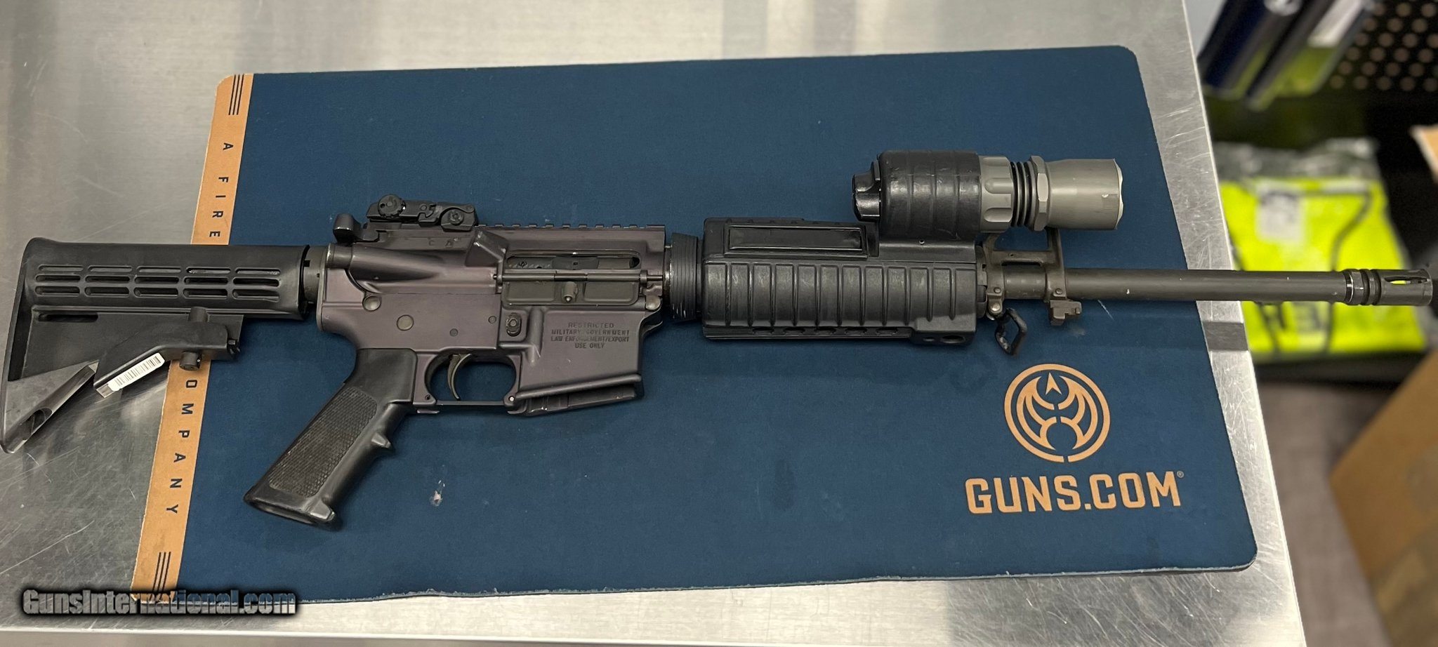 Description: Guns Listing ID: 1299952 LAW ENFORCEMENT TURN IN, “RESTRICTED MILITARY/GOVERNMENT.”COMES WITH A2 FLASH HIDER, SUREFIRE M500 HANDGUARD LIGHT WITH (2) LED MARKER LIGHTS, MAGPULL FLIP UP REAR SIGHT WITH FACTORY FRONT SIGHT. FOREGRIP MAY WORK WITH NEW BATTERIES. NO MAGAZINES NO BOX. SOLD Manufacturer: COLT Model: AR-15A3 TACTICAL CARBINE Caliber Info: 5.56X45MM NATO Condition: Used - Non-Certified Barrels: 16 BARREL |
