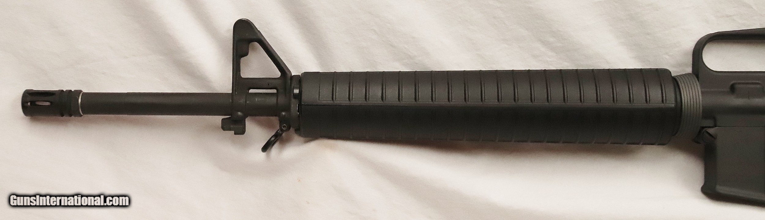 Description: This Colt rifle is accompanied by the original box, 4 Colt marked magazines, cleaning rods, chamber brush, tools, sling and manual. The box has the early Green label. The serial number table I found suggests the manufacturing date is 1972. The rifle was owned by a perfectionist who meticulously cared for his weapons. The rifle has been lightly used and well maintained as is apparent by the Excellent overall condition. The bore is as new and the action is in fine operating condition, with very little wear showing. The rifle has been stored in the box, so it’s a bit “soft”, but it has offered protection over all of these years. The exterior surfaces of the rifle show just a few modest blemishes as shown in the photos. Note that this Pre-Ban has the dreaded bayonet lug and is therefore restricted in some states. Please check your local law before your decision to purchase. I can’t research the ever-changing law in 50 states in advance, but I will verify before completing the sale. This is a great Colt AR for your collection and is enhanced by the Box and Original Accessories. .223 Cal. Serial Number, SP220035. FFL Required. Beaver Creek Arms TERMS & CONDITIONS Objective: As a collector of 35 years and Licensed Firearms Dealer since 1989 I have a clear definition of a satisfactory transaction. I will be paid as we agreed to, and you will be satisfied with your purchase. My goal is to establish a client list of satisfied repeat customers who will recommend me to other collectors. It’s just that simple. Exiled Saudi princes with secret funds needing change from an over paid purchase need not apply. Notice: ALL Federal, State, & Local firearms laws will be followed. I will take NO shortcuts in the process of a legal sale or transfer, so please don’t ask. SHIPPING: Normally shipments are made via U.S.P.S. Priority Mail, Insured, with a return receipt. Packing, Shipping and Insurance cost for this Long Gun is $45.00. Checks are to be made out to “Steve Clark” Address: 380 Beaver Creek Road, Dillsburg, PA 17019 FIREARMS: Modern firearms, post 1898, can only be shipped to a Type 01 Federal Firearms License address. Curio-Relic firearms, as defined by the BATF list, can usually be shipped to a Type 03 Collectors License address. Some states have additional restrictions such as CA, CT, DC, IL, MD, NJ and NY. A signed valid FFL license copy either mailed or emailed will be required for shipment to only the license address. Antique firearms, pre 1898 do not require a Federal License. For purchase, a copy of a Government Issued Identification (Driver’s License, Etc.), showing date of birth and current address will be required. GUARANTEE: Your complete satisfaction is assured, see objective above. If you are not satisfied, please contact me within 3 days of receipt. Please don’t fire the weapon, safety, function and accuracy are NOT Guaranteed. Any weapon offered by Beaver Creek Arms is never test fired nor is there any representation the gun is functional and safe to fire. These guns are sold for collectors and only represented as used firearms that must be checked by a competent person, observe all the necessary safety precautions prior to attempting to load and fire one of these weapons RETURNS: Returns must be made within 3 days of receipt. They must be received in exactly the same condition with no parts exchanged. If it has been altered, damaged, or fired, a refund will not be made. Packing, shipping and insurance cost will not be refunded. All layaway purchases are returnable for merchandise credit only. Sales: All sales are made with the buyer’s full acceptance of the stated terms of sale. All sales are made in strict compliance with all Federal Firearms Laws. No items contained in thissite are offered for sale where prohibited by any Federal, State or Local laws. By ordering, the buyer certifies that their purchase will be in full compliance with all Federal, State and Local laws. All transactions shall be deemed to occur in Pennsylvania regardless whether by telephone, mail, internet or the physical location of the buyer. All transactions will be subject only to Federal and Pennsylvania State law. Any disputes will be resolved in a Pennsylvania Court. PAYMENT: Bank check, Personal check, and Money Orders are preferred. Visa and MasterCard are accepted with a 3% processing fee. For Visa and MasterCard orders please provide the account number, code number, expiration date, name on card, phone number and card billing address. This information can be phoned in, or E-Mailed. All orders must be paid in advance, C.O.D. orders are not accepted. Checks, both Bank and Personal must clear before the order will be shipped, usually a 2 week delay. LAYAWAYS: A 20% deposit is required. Balance is due in 60 days. Deposits are non-refundable and are forfeited after 60 days. Layaway sales are returnable for merchandise credit only. SALES TAX: Pennsylvania state sales tax is 6% for in state purchases. The payment of other states sales tax, if applicable, for shipped items is the buyer’s responsibility. DISCREET: Client information will remain Confidential. Your privacy is prote SOLD |