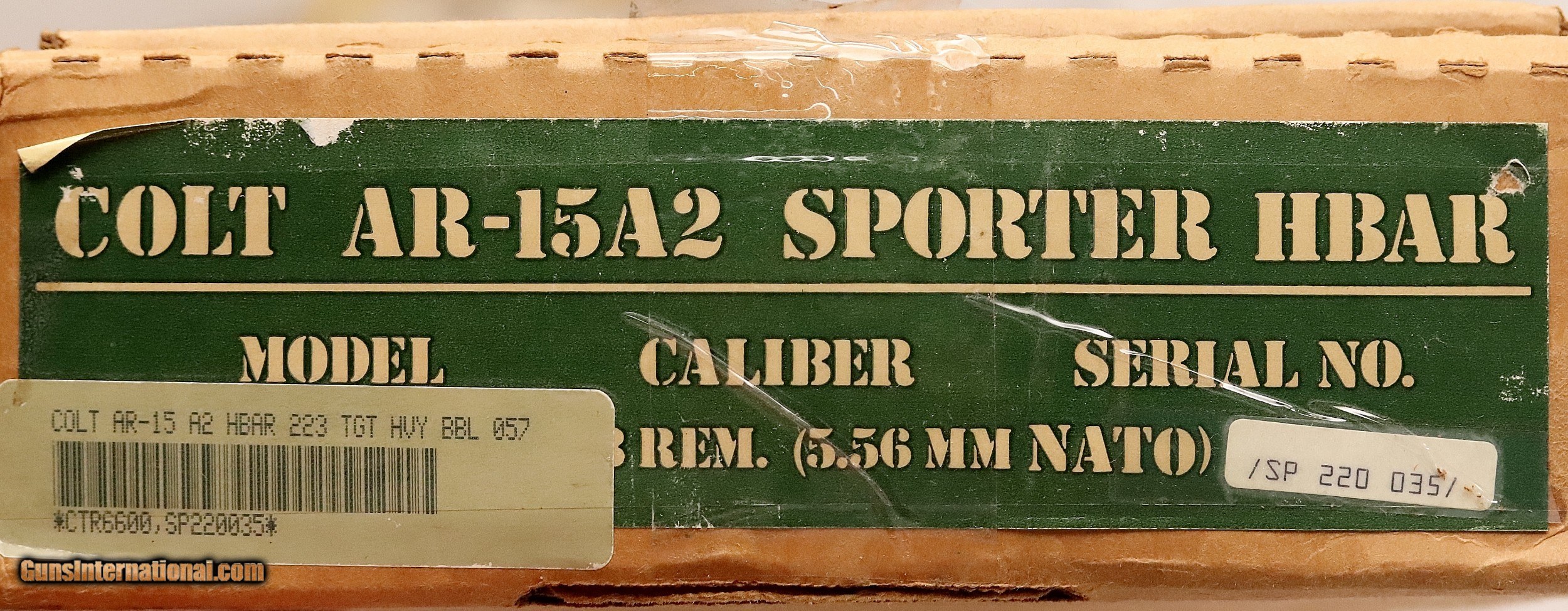 Colt AR15 A2, Pre-Ban, HBAR Sporter, EXC COND, w/ Box & All accessories. SN: SP 220035