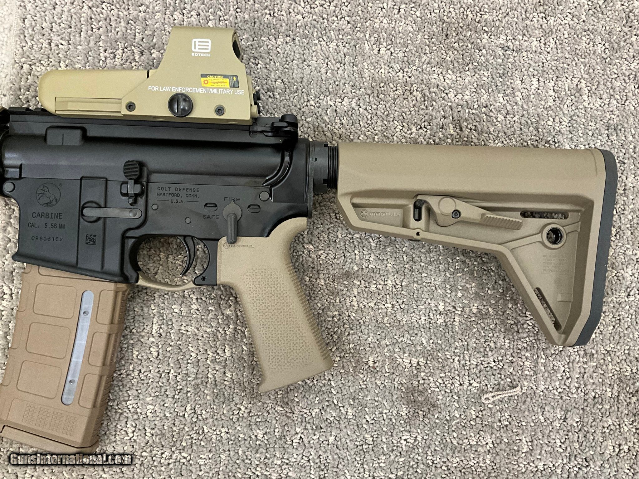 Description: Guns Listing ID: 555866 Great condition comes with a eotech sight SOLD Manufacturer: COLT Model: CARBINE Caliber Info: 5.56X45MM NATO Condition: Used - Non-Certified Barrels: 16" BARREL Action: SEMI AUTOMATIC Finish: black and tan |