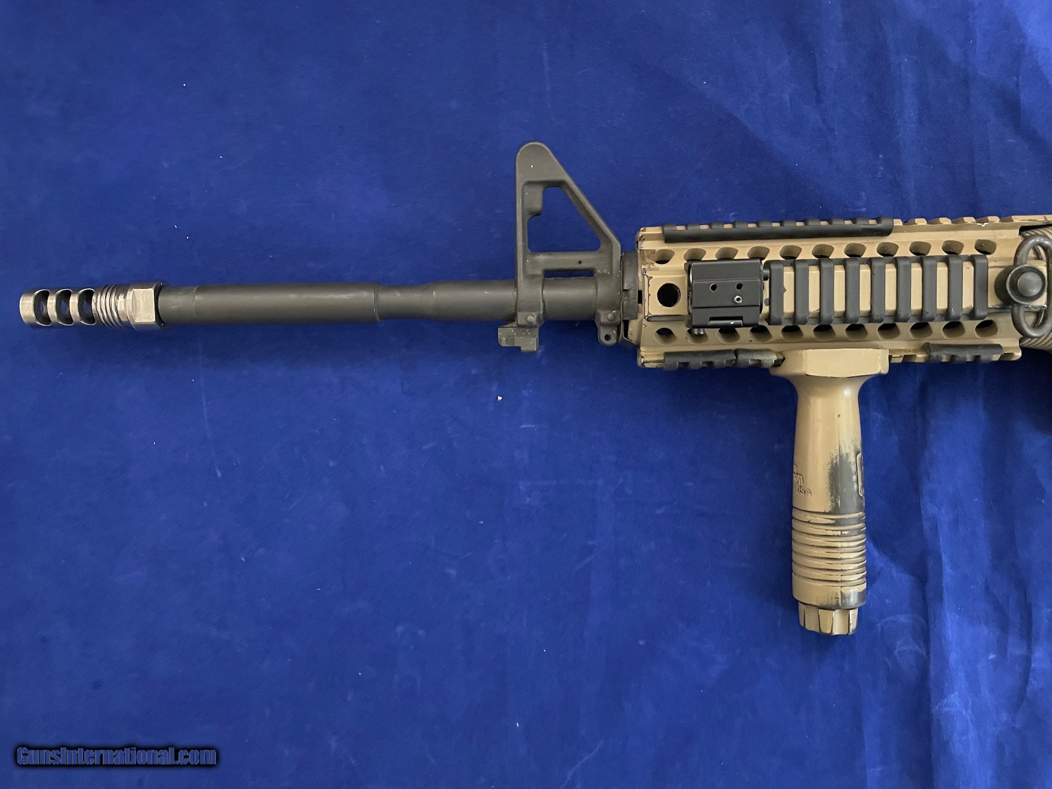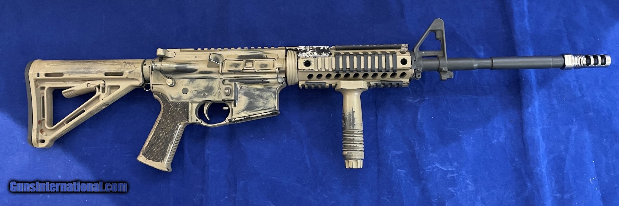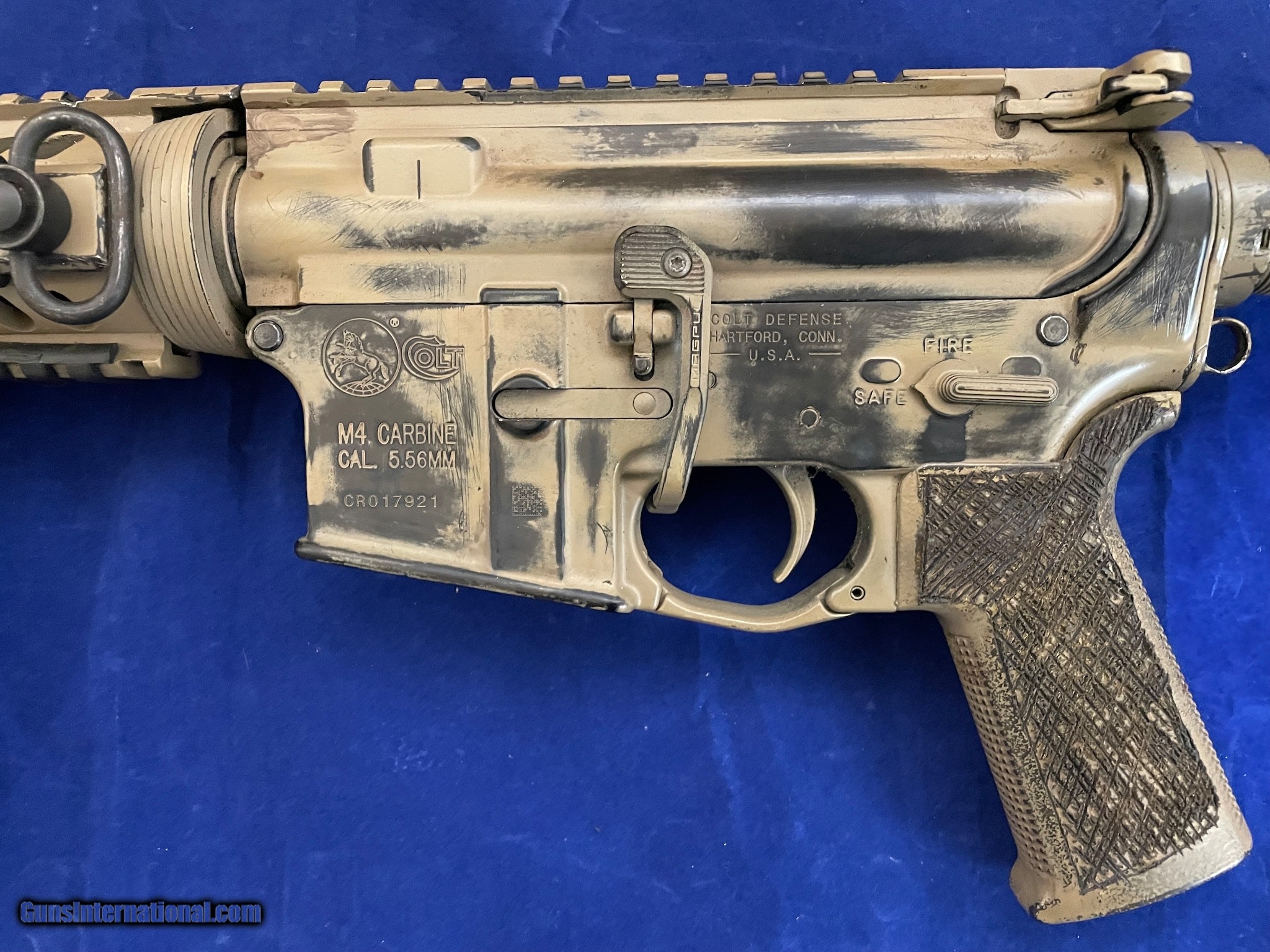 Description: Guns Listing ID: 565038 This listing is for a Colt M4 Carbine Semi-Automatic Rifle. This rifle is pre-owned and has been customized / modified. The previous owner of this firearm painted the majority of the gun with a dessert tan color paint. There is a vertical grip mount installed on the hang guard (which is of course removable). Something that looks like, or appears to be, a Modular Optic System (MOS) plate, has been screwed into the top right side of the hand guard. And finally the grip has been marred / scratched / scrapped, I would assume this was done to give the firearm a type of custom stippling, to help aid in a better grip. No magazine is included with this firearm. Please review all photos for exact condition and description. SOLD Manufacturer: COLT DEFENSE HARTFORD CT Model: M4 CARBINE Caliber Info: 5.56X45MM NATO Condition: Used - Non-Certified Barrels: 16.5 BARREL Finish: DESERT TAN |