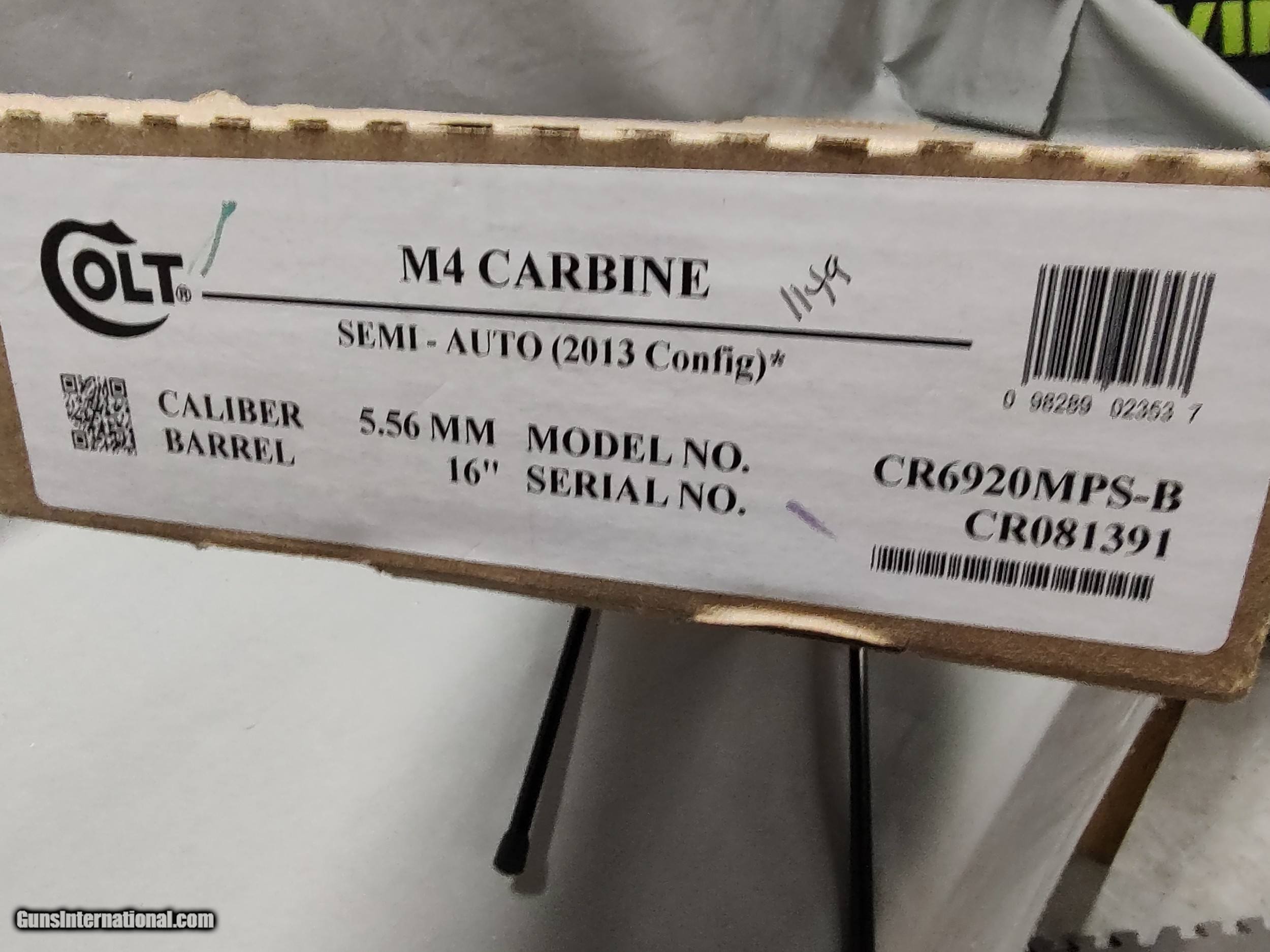 Description: Colt M4 Carbine in like new condition. Chambered in 5.56 with 18” barrel, Comes with matching box, small parts bag (unopened) and Pmag 30 round magazine. but we will not ship magazine with gun to states that ban high capacity magazines. ******************* No shipping to California, International, Canada or any other US state that has restrictions on firearm purchases. We collect 9.25% sales tax on all purchases in state of Tennessee. Credit card fee for all purchases is 3% if used instead of Cash, USPS money orders, bank wire transfers, personal check SOLD Rifle Caliber: 5.56x45mm NATO Manufacturer: Colt Model: M4 Carbine Serial Number: CR081391 Barrel Length: 18 Condition: Like New Metal Condition: Excellent Bore Condition: Excellent |