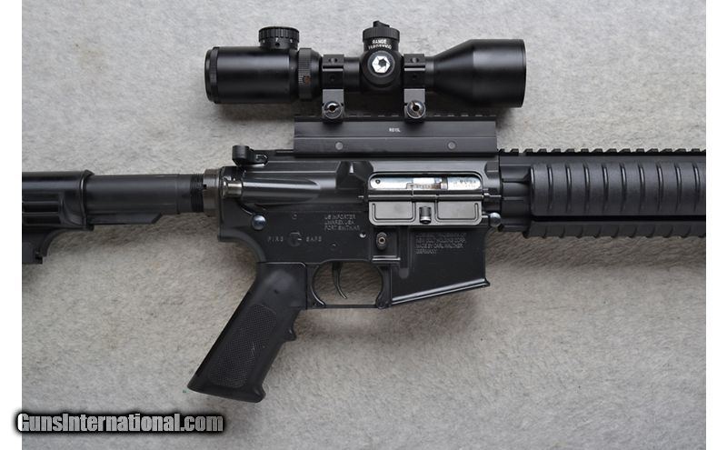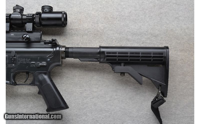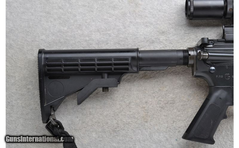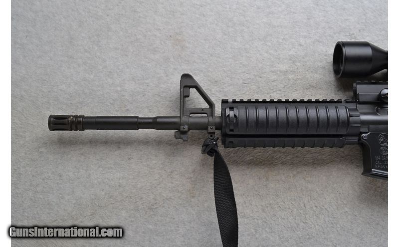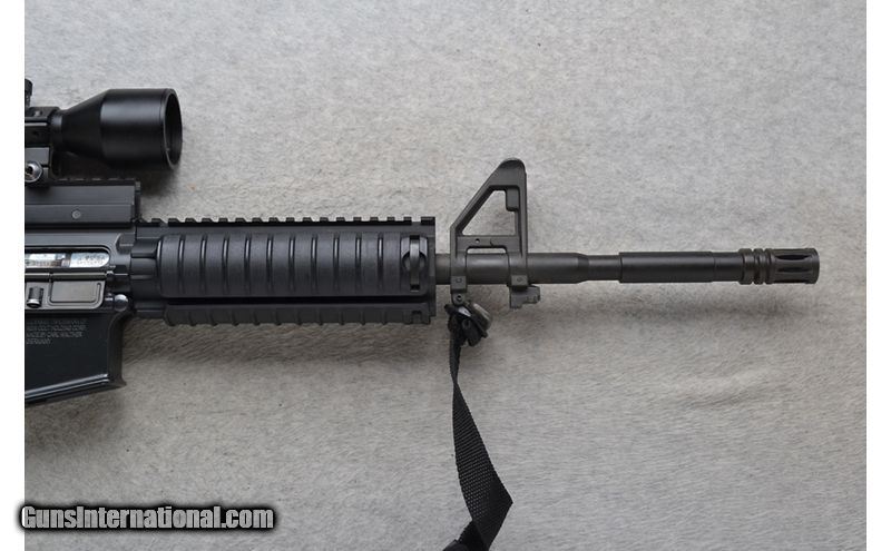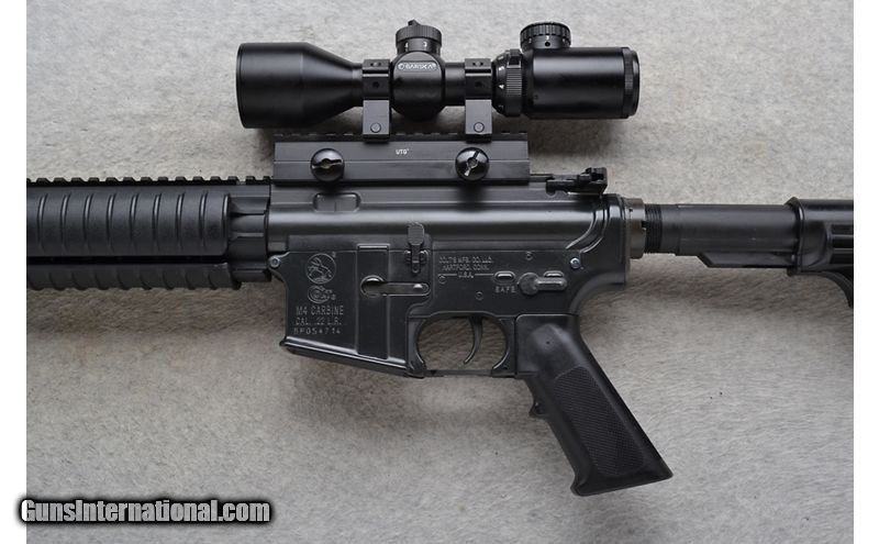 Description: This Colt Model M4 Carbine is a right hand semi-auto rifle in .22 Long Rifle Cal. It has a 16 inch barrel plus the muzzle break. The front sight is an adjustable post with protective sides. It is outfitted with a Barska 3-9x42 IR Scope. The butt stock is adjustable/telescoping and it has a checkered black polymer full pistol grip. The forearm has 3 black polymer ribbed grip panels over a vented metal alloy tube. .22 Long Rifle SOLD Chambers: 25 round magazine. Metal Condition: Excellent. Bore Condition: Excellent. Barrels: 16 inch barrel plus the muzzle device. Stock Dimensions: LOP 13 7/8 inches. Fore End: 3 panel ribbed grip black polymer over a vented metal alloy tube. Butt Pad: Checkered black polymer. Weight: 7 lb. 7 oz. Sights: Adjustable post front with protective sides. Barska 3-9x42 IR Scope. Item Location: Richfield, WI |
