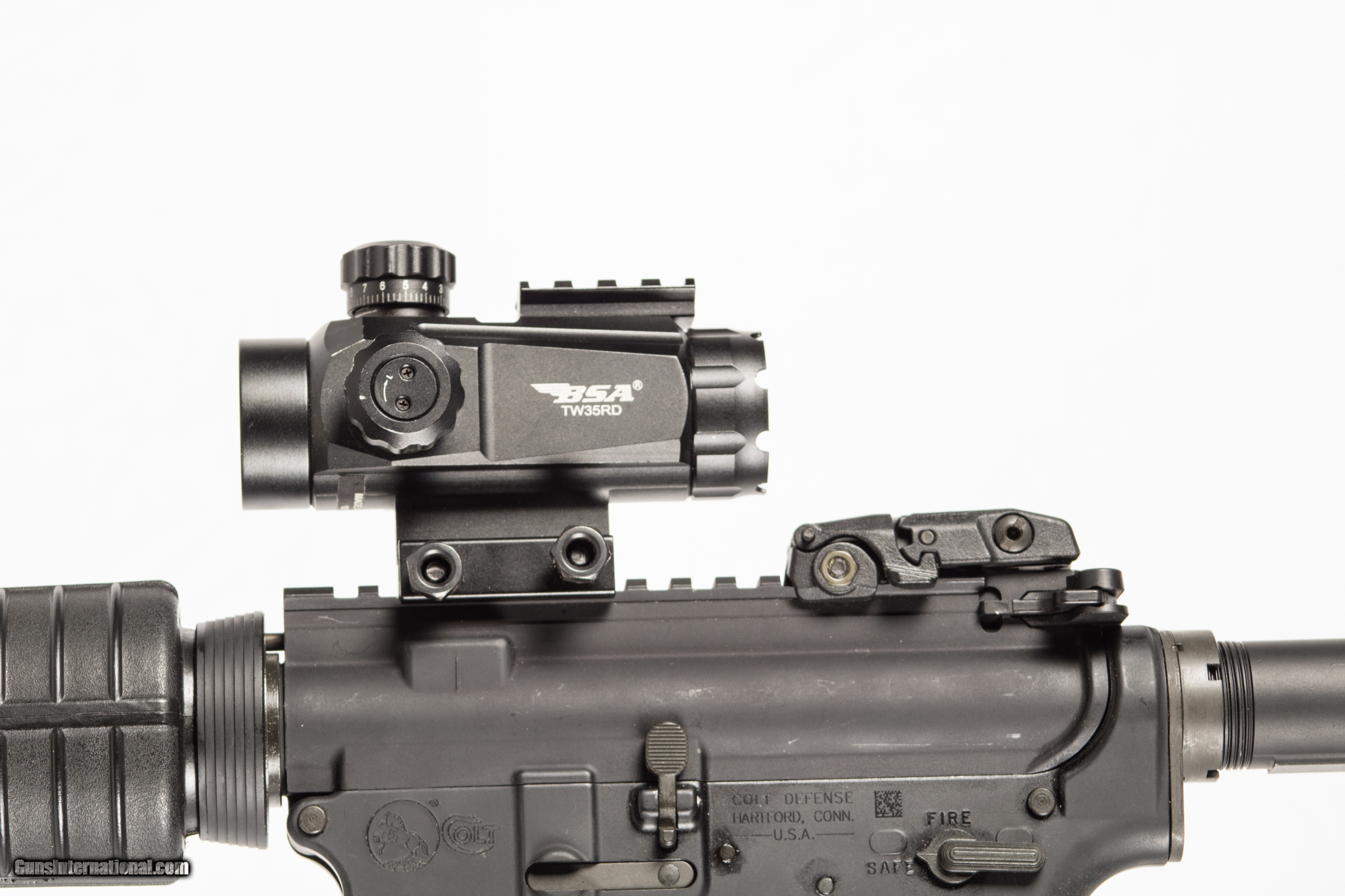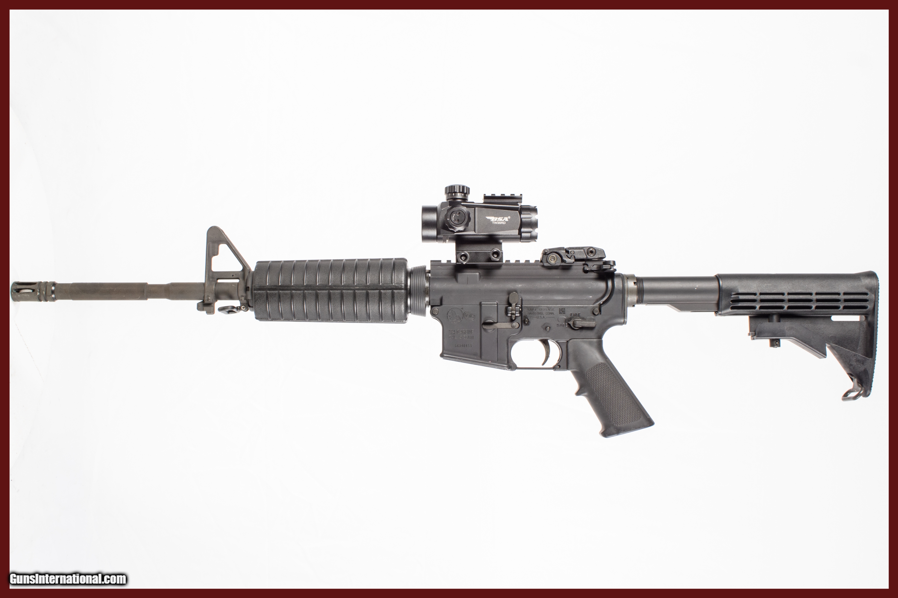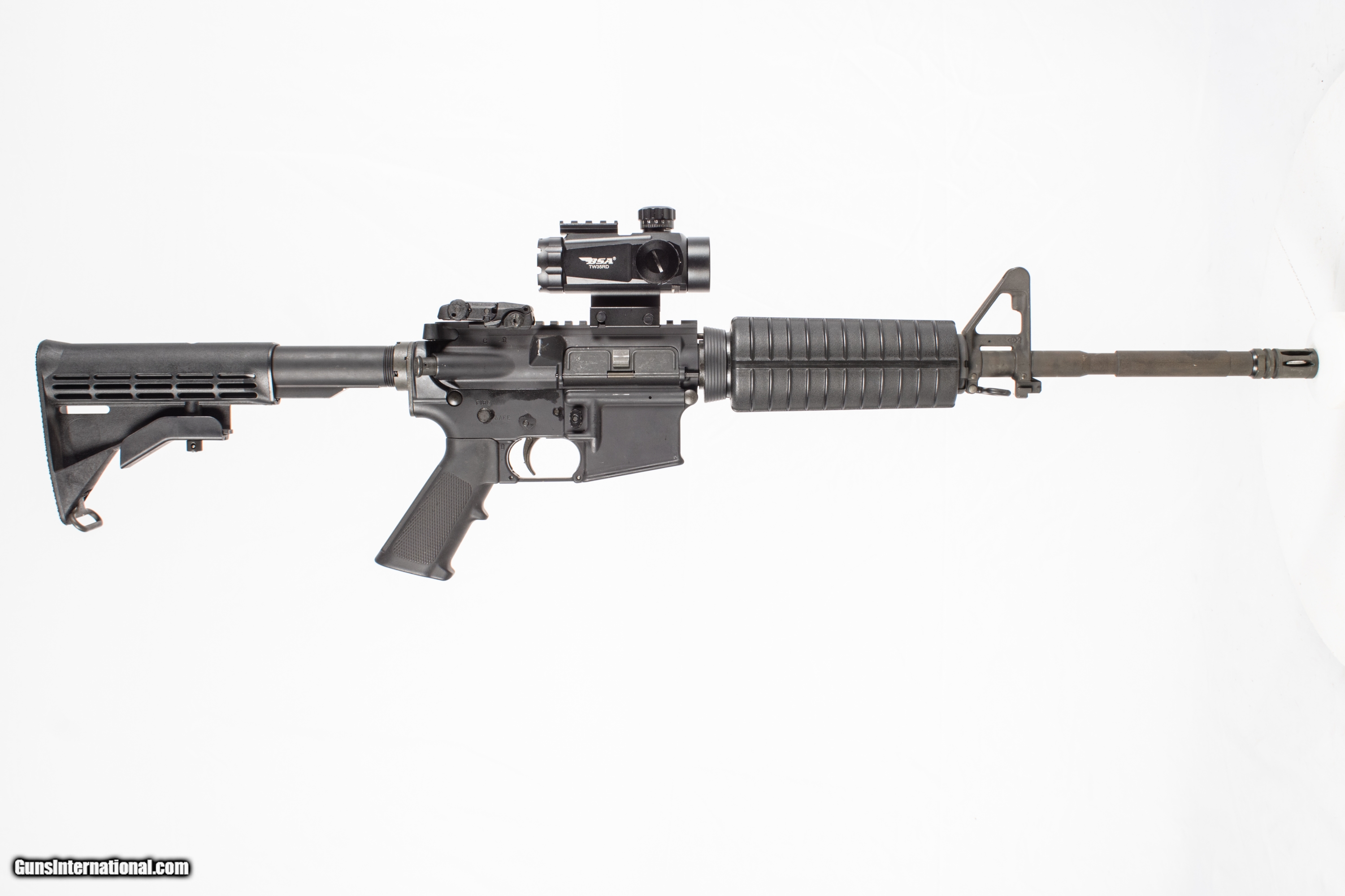 Colt M4 Carbine chambered in 5.56 mm with a 16 inch barrel bright & shiny bore 3 extra magazines and BSA red dot sight. This gun is in excellent condition and is covered by Dury's Lifetime Warranty.
