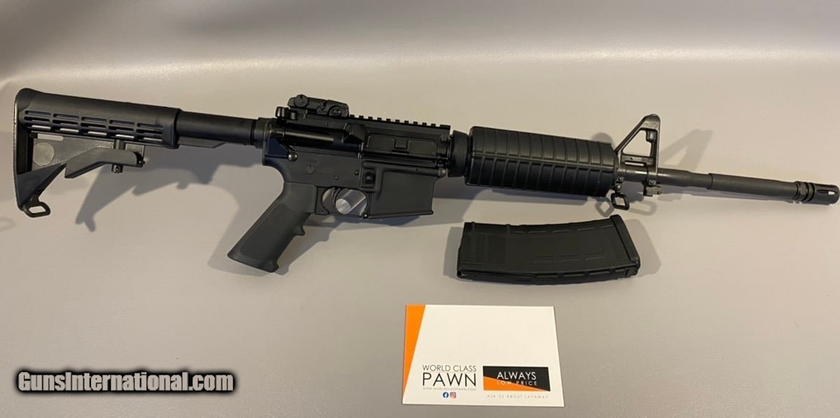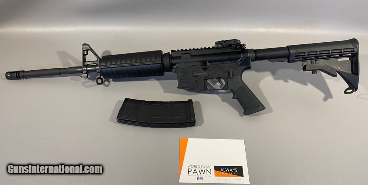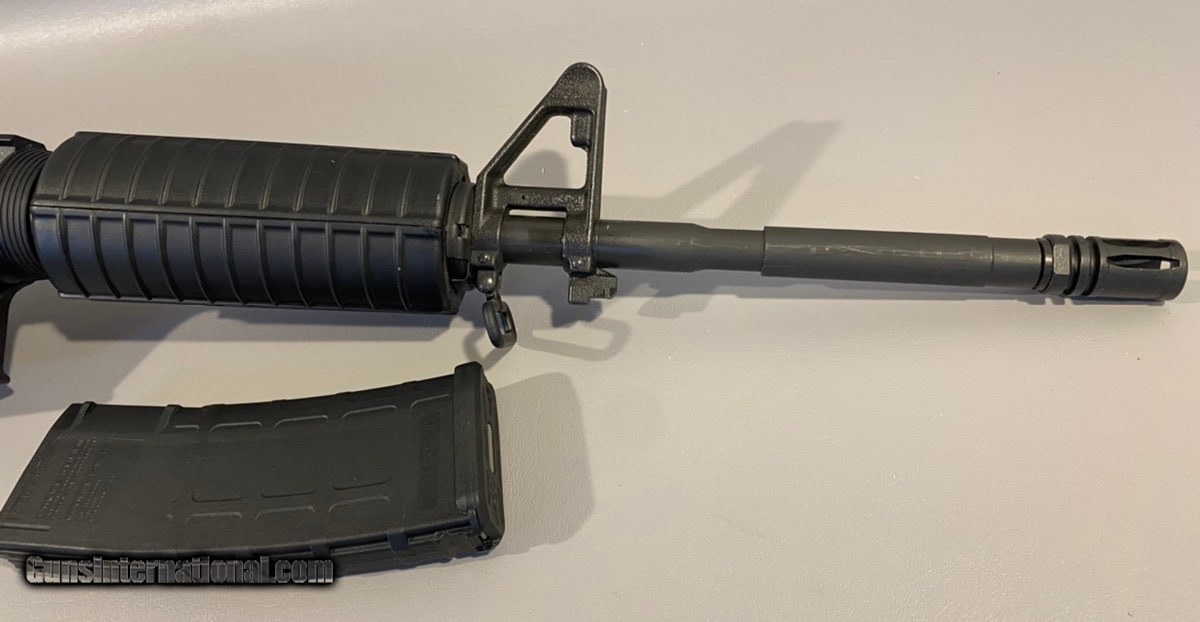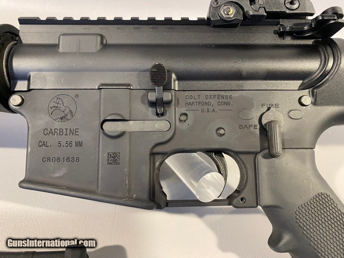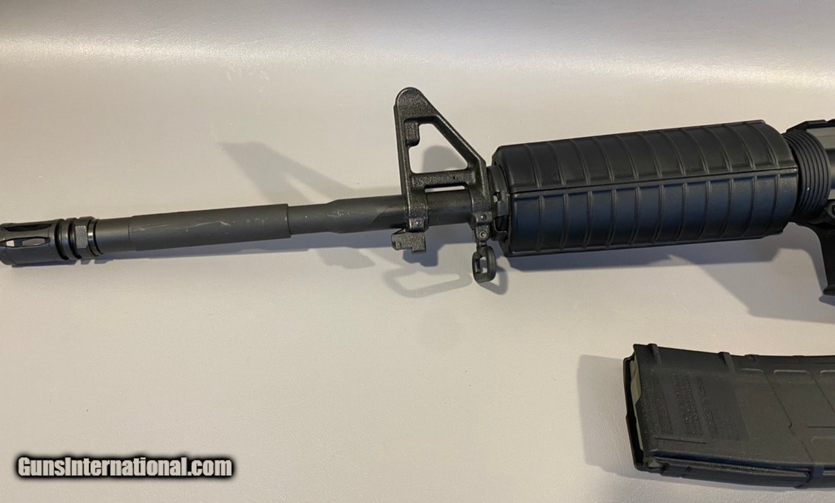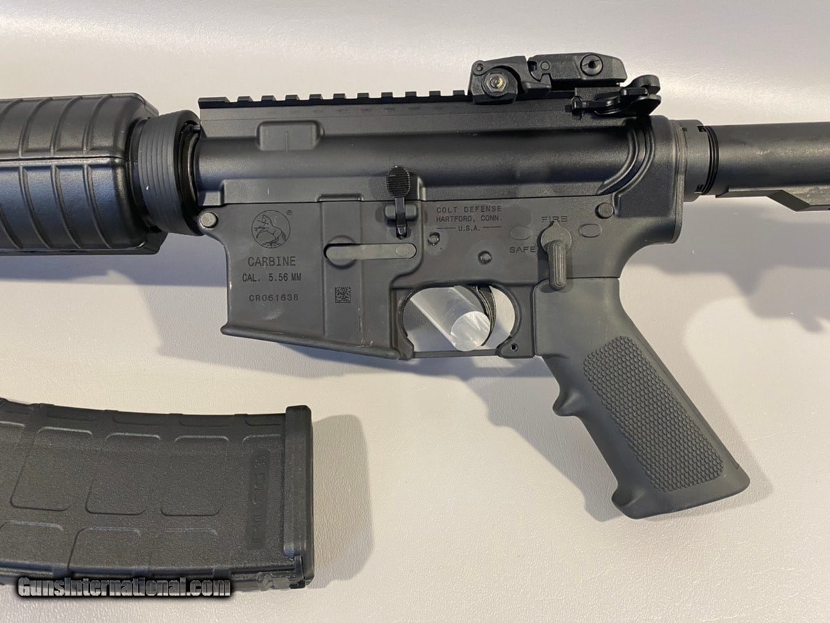 Description: Guns Listing ID: 565148 NEW RIFLE: COLT FIREARMS MODEL M4 CARBINE (CR6920), SEMI - AUTOMATIC, 5.56MM, 16\" BARREL. *NOTE: ITEM HAS BEEN ON DISPLAY IN STORE FOR A WHILE. MAY SHOW LIGHT MARKS/WEAR FROM HANDLING* DEALER SPECS: Direct Gas Impingement Semi Automatic Rifle 5.56 NATO (accepts 5.56 NATO and .223 Remington) 16.1\" Chrome Lined M4 Profile Barrel 1:7\" Twist Rate Threaded 1/2 x 28 TPI Birdcage A2 Style Flash Hider Forged 7075 T6 Aluminum Upper/Lower Receivers Flat Top Upper Receiver M4 Feed Ramps Reversible Selector Switch Carbine Length Gas System Polymer Hand Guard A2 Front Sight A2 pistol Grip Magpul Flip Up Rear 30 Round Magazine (Magpul PMAG) Accepts all standard pattern M4/AR-15 Magazines Standard Mil-Spec Trigger 4 Position Collapsible Stock Carbine Stock Front Barrel Lug Ejection Port Cover Made in the USA Overall Length 32\" Collapsed / 35\" Extended Overall Weight 6.95lbs Hard Coat Anodized Finish Matte Black Finish SOLD Manufacturer: COLT Model: M4 CARBINE Caliber Info: 5.56X45MM NATO Condition: Used - Non-Certified Barrels: 16 BARREL Finish: BLUE |