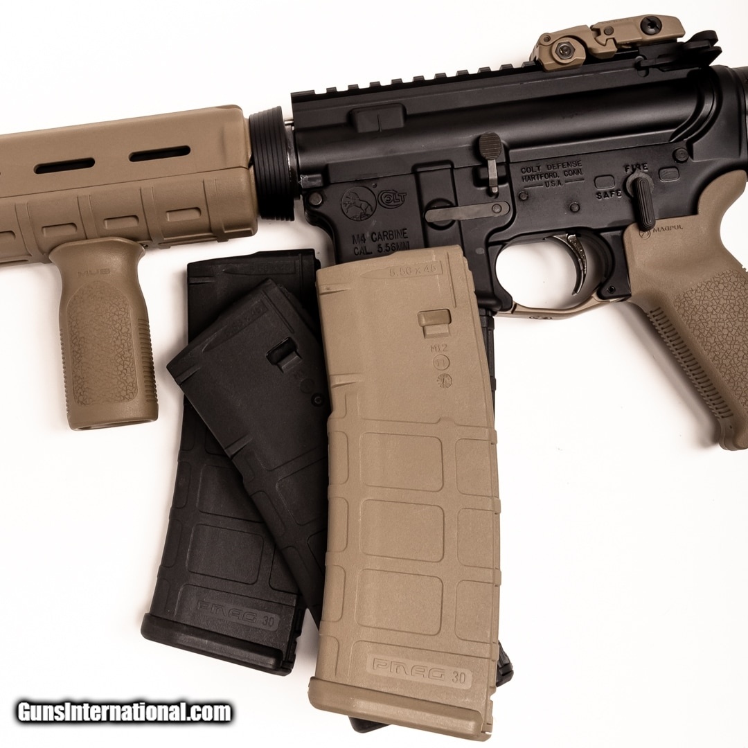 Description: Guns Listing ID: 581384 The Colt M4 Carbine is a rugged and accurate rifle that is closely patterned off the military‚‚s M4A1 Carbine but semi-automatic. Whether you‚‚re looking for a property-defense carbine, new duty rifle, or just a high-quality rifle, this M4 Carbine fits the bill perfectly. This M4 Carbine is in excellent condition! It sports a vertical foregrip and a 1/7 twist. The owner‚‚s manual and four 30-round magazines are included. SOLD Manufacturer: COLT Model: M4 CARBINE Caliber Info: 5.56X45MM NATO Condition: Used - Certified Barrels: 16 BARREL Finish: FDE/BLACK |