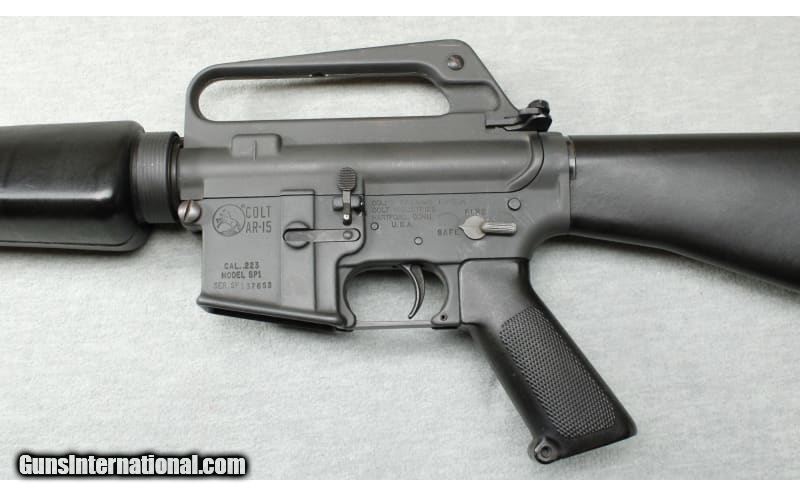 Description: Excellent condition, light finish wear, some small nicks and scratches, comes with box and one mag. Colt first commercially released the SP1 in the spring of 1964 and sold them through the late 1980s. Now as vintage collectibles, the Colt AR-15 SP1 perfectly captures the essence of what the original AR-15 was: lightweight, handy, soft-recoiling and easy to shoot. Unlike the traditional, walnut-and-steel rifles commonly found in that era, these early AR-15s took a different approach with aircraft-grade aluminum receivers and stock-sets manufactured from modern plastics. Equally radical was its rifle cartridge, the .223 Rem. This cartridge pushed small lighter weight projectiles to higher muzzle velocities to compensate for the lack of mass, while also having smaller footprints and increased portability. None SOLD Chambers: Semi auto Metal Condition: Excellent Bore Condition: Bright Barrels: 20 Triggers: Factory Stock Dimensions: 13" LOP Fore End: Triangle hanguard Butt Pad: Factory butt plate Sights: Factory iron sights Item Location: La Vista, NE |