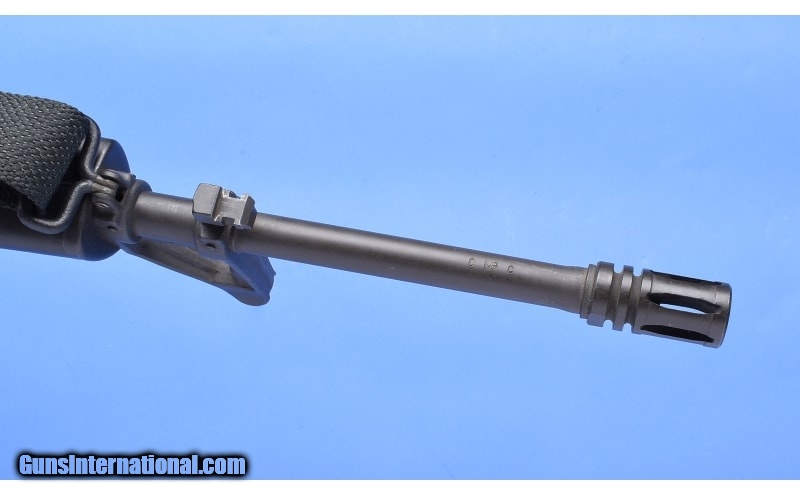 Description: 1972 vintage Pre-Ban offers early features of the AR-15 such as A1 pattern upper without deflector or forward assist. Post front sight on the gas block with bayonet lug, triangle forearm. Very high condition rifle shows few minimal handling marks. Includes (1) Simmons Precision Products / Universal Industries 20 round mag .223 Remington SOLD Metal Condition: Matte Gray Bore Condition: Bright Sharp Barrels: 18 Inch "pencil" weight barrel marked "C MP C" with A1 flash hider Fore End: Triangle Style Weight: 7 lbs 6 oz Sights: "Two leaf rear peep sight on the handle, Adjustable post front Item Location: Buda, TX |