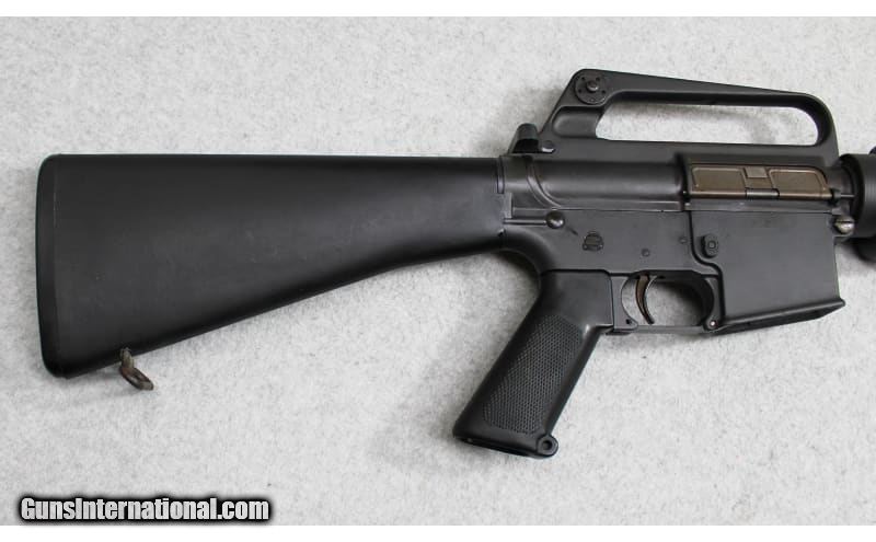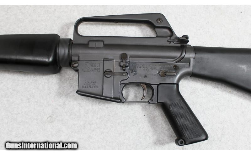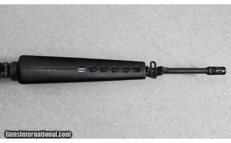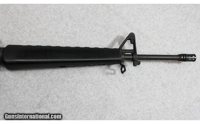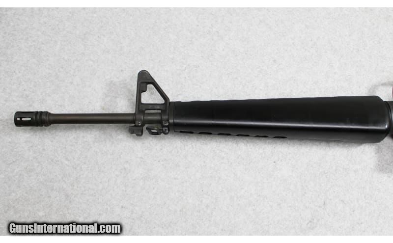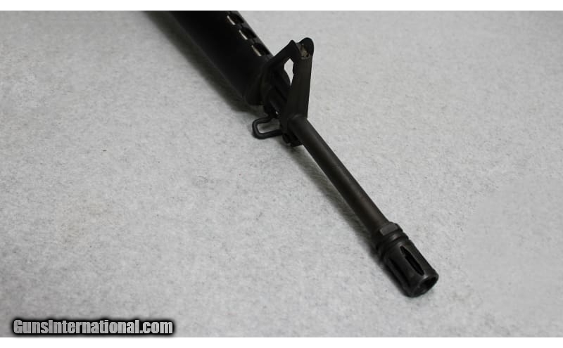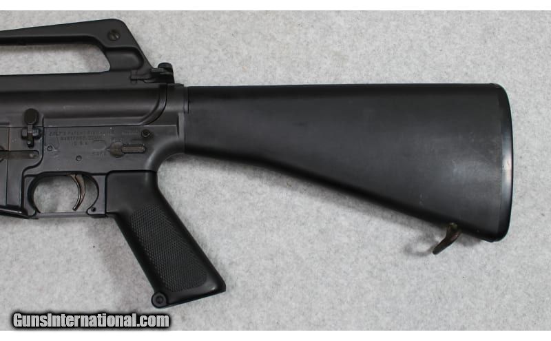 Description: This Colt SP1 semiautomatic rifle is chambered in .223 Remington. Date of manufacture for this rifle is 1976. Features peephole rear sights atop the handle as well as a standard post front sight. Rifle only, no accessories or mag. .223 Remington SOLD Metal Condition: Very good with minor handling marks Wood Condition: N/A Bore Condition: Bright and clear with good rifling Barrels: Flash hider Stock Dimensions: 13.5 LOP Butt Pad: Plastic stock Weight: 7 lb 3 oz Sights: Peephole rear sight/front post sight Item Location: Fort Worth, TX |