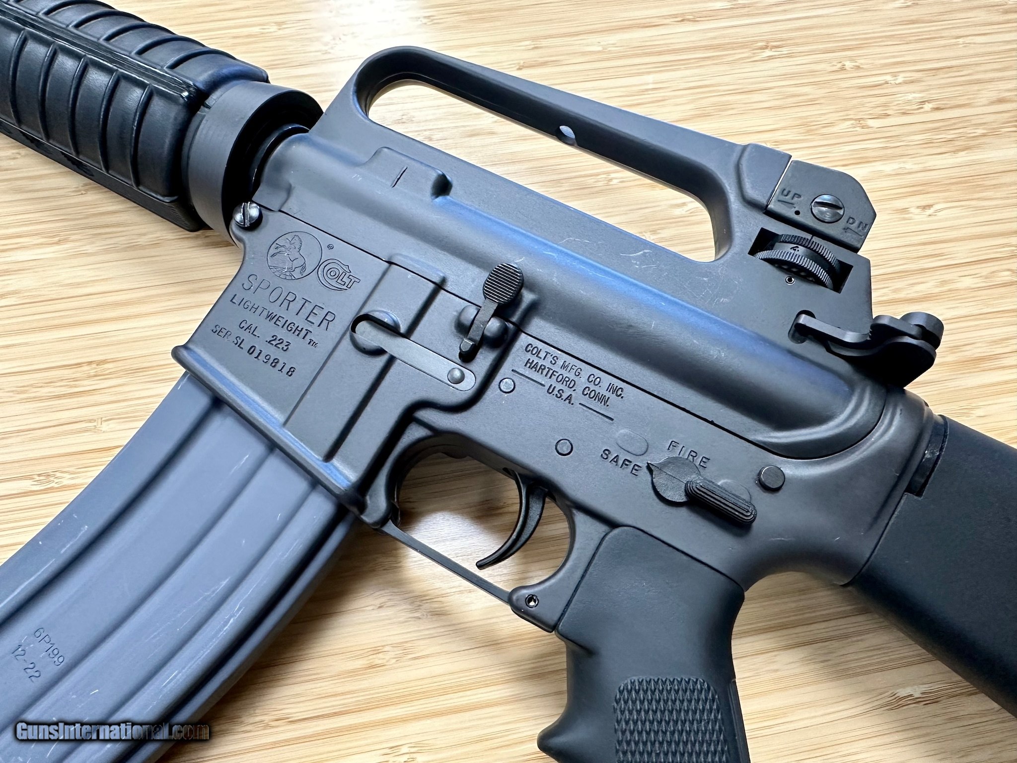 Description: Guns Listing ID: 1215886 This Colt Sporter Lightweight is in excellent condition. It appears to have barely ever been fired and could be considered like-new. The serial number indicates that this is a pre-ban production. Includes one 30-round Colt magazine. See photos for details. SOLD Manufacturer: COLT Model: Sporter Lightweight Caliber Info: 5.56X45MM NATO Condition: Used - Non-Certified Barrels: 16 BARREL Finish: BLACK |