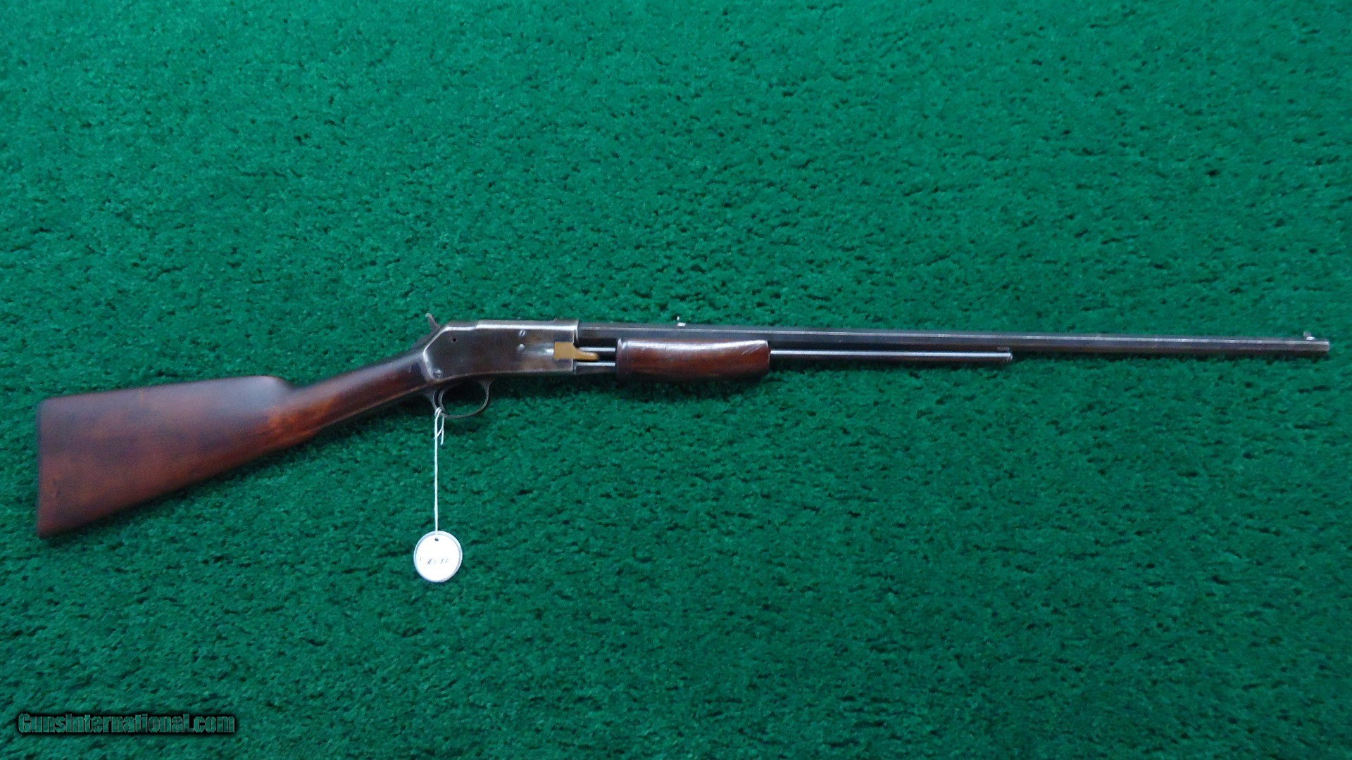 Description: 22 Caliber Lightning rifle with 24 inch octagon barrel. A very nice little rifle and this is a good example. Receiver has most finish remaining and is a blue/brown color. Very nice blue on barrel. Some light wear on the octagons but nice overall condition. The bore could use a good cleaning and has some roughness. Wood is way above average. Very nice fitting on both upper and lower tang. There is a chip missing at the toe but original Colt buttplate is intact. 2 very small chips at the upper corners by the frame. Forearm does have a light hairline crack from the screw going forward. A lot of these forearms are broken in half but this one is in good overall condition. Action works very well. This little Colt is a good collectable piece. The 22 Cal Lightning rifles will take all Long or all Short .22 cartridges, or part Long and part Short. Leroy Merz Antique Firearms specializes in antique and vintage Winchesters and other fine American firearms. Since 1965 Mr. Merz has taken part in the world of firearms and has been a contributor to many well known reference books. We have hundreds of additional guns in every price range at our home online. Search for Merz Antiques in google. SOLD Antique: Yes |