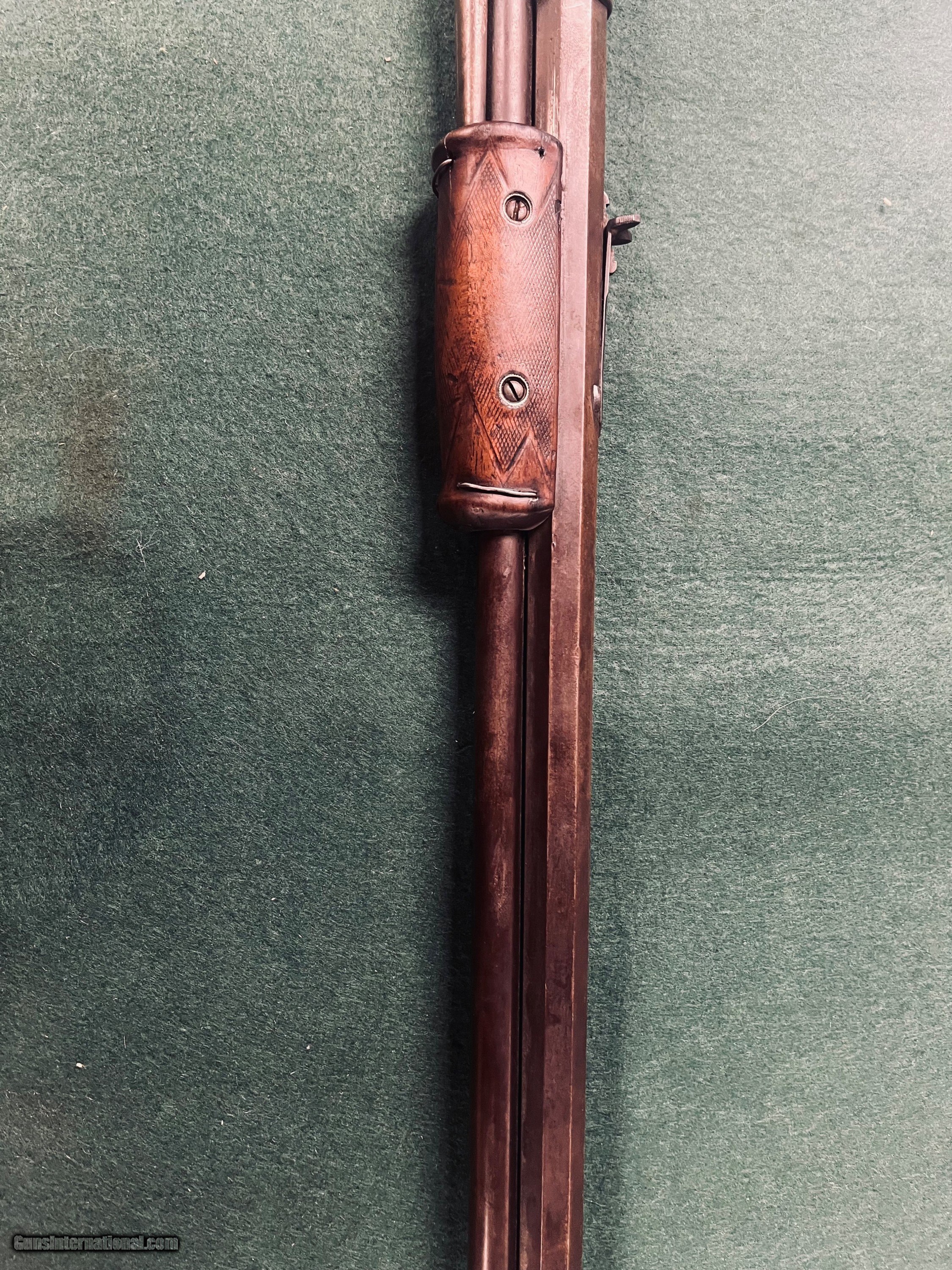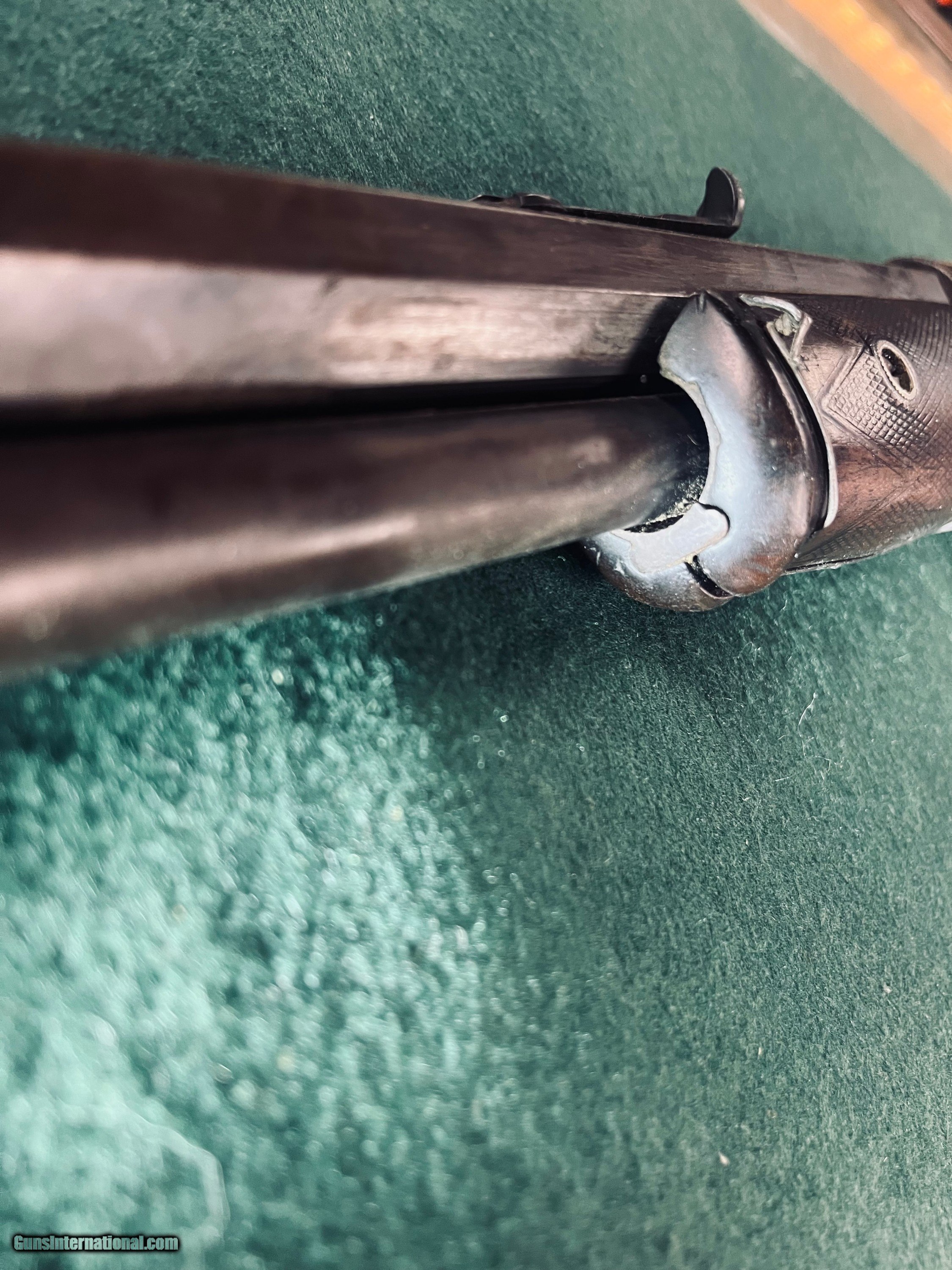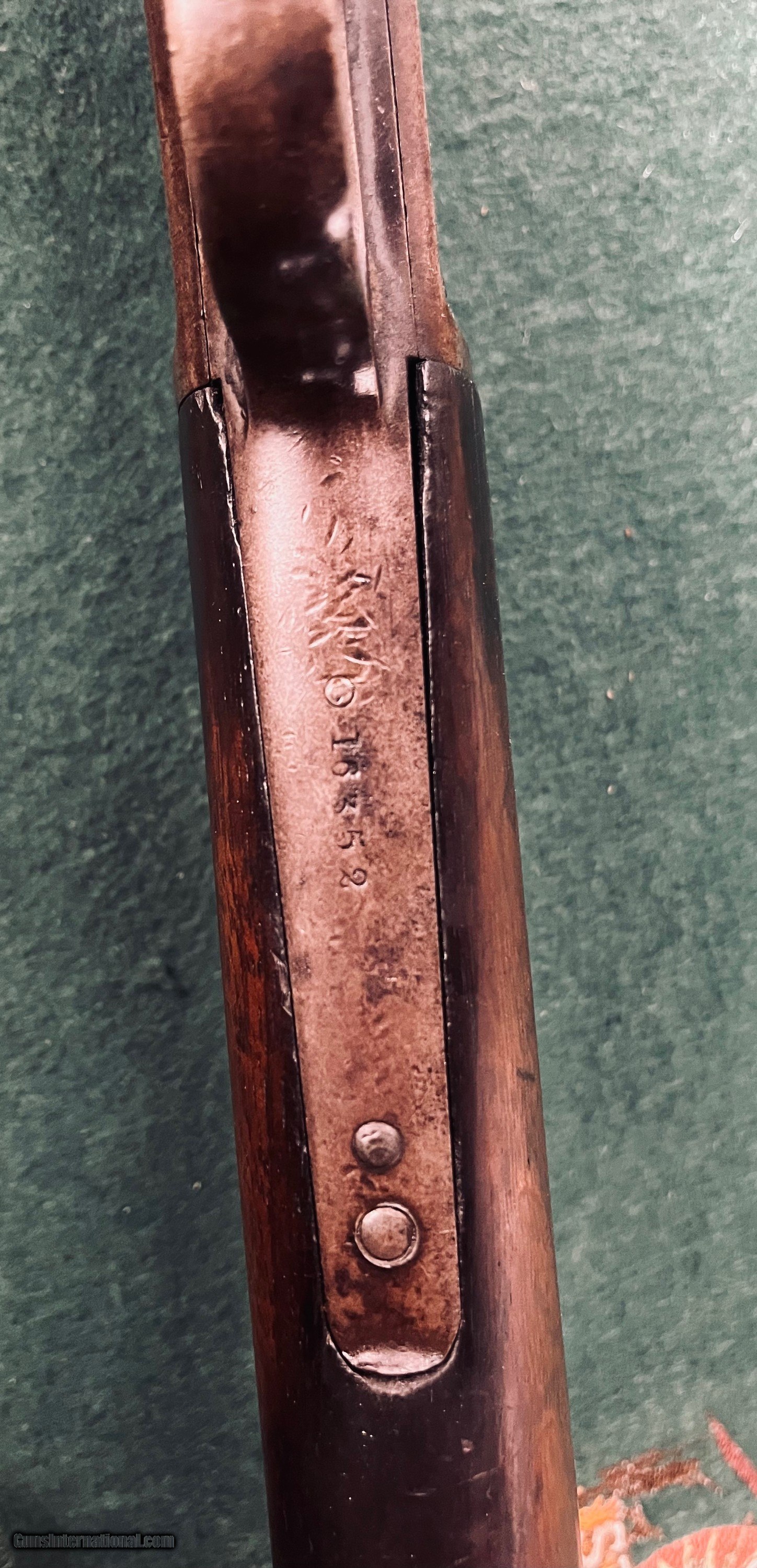 Description: For sale is a 1886 Colt Lighting 44-40. Serial number is 16352. Rifle is in good condition with normal wear and patina for its age it appears to operate the way it should. The pump forearm is split and the left side bolt slide is missing see pics. I did find the parts available on eBay for around $100. Give us a call with any questions or more pics at 315-405-4441. We sell all of our guns as is no refunds and shipped to a FFL. We take credit cards for payment just give us a call at 315-405-4441 SOLD Antique: Yes Rifle Caliber: .44-40 Winchester Manufacturer: Colt Model: Lightning Serial Number: 16352 Condition: Good Metal Condition: Good patina Wood Condition: Good Bore Condition: Good |