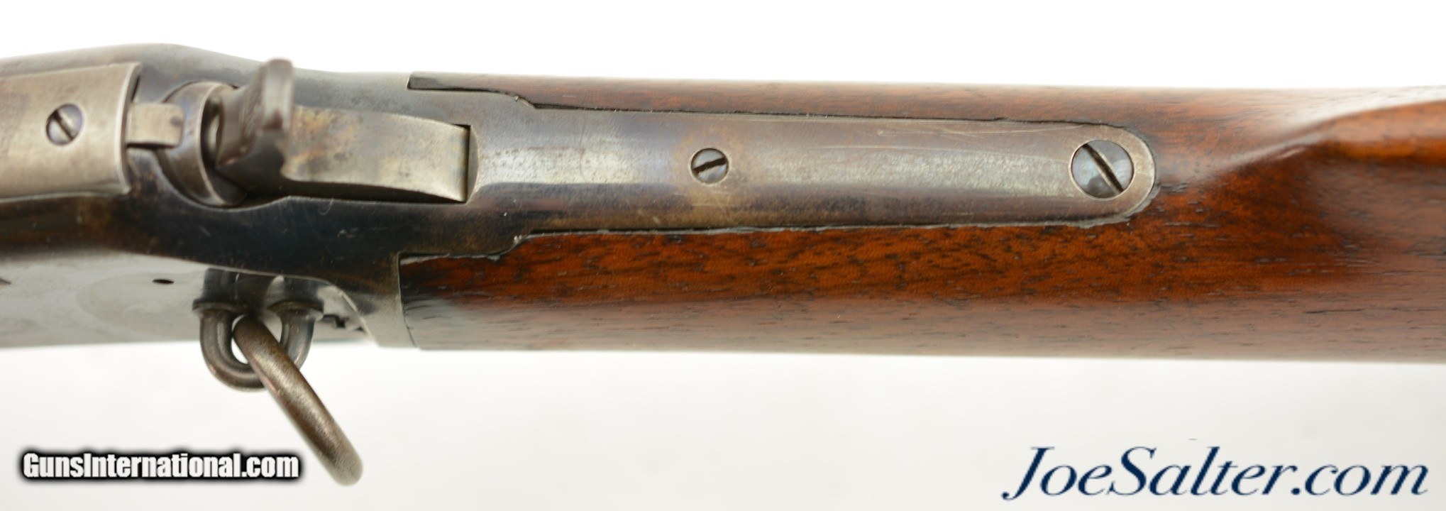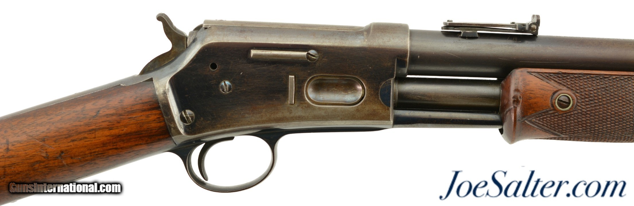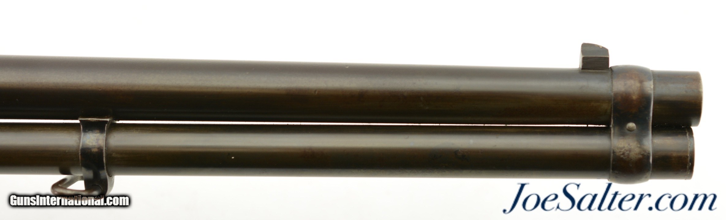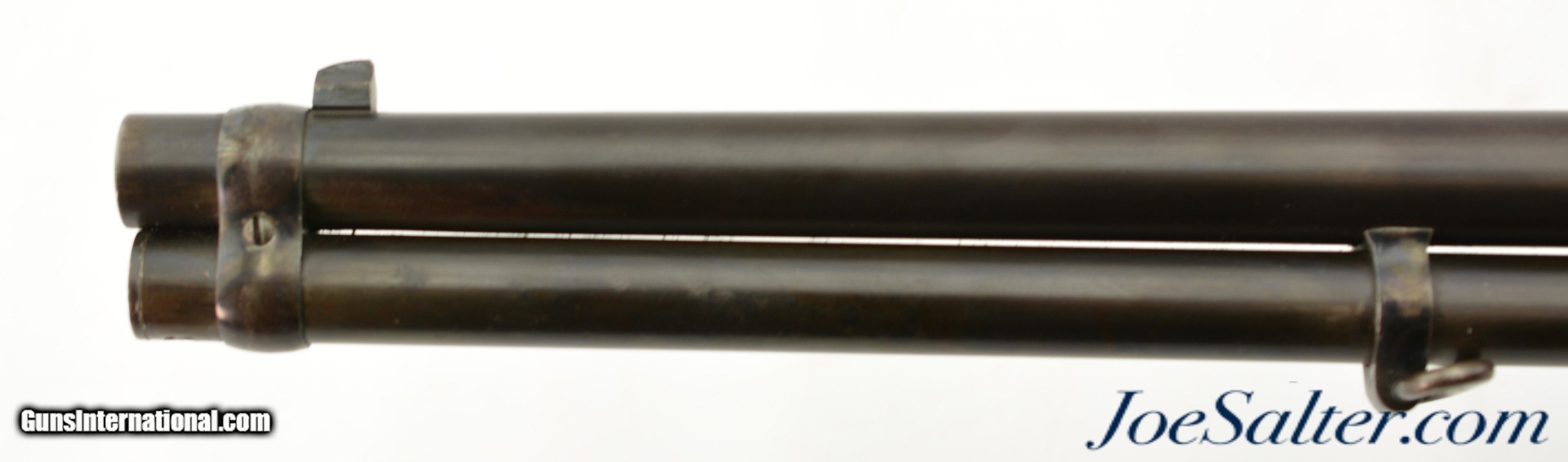 Description: Serial #66133, .30-40 (.38 WCF), 20" barrel with a fine, bright bore that has some traces of freckling within the grooves at the muzzle. This is a handsome carbine that was made in 1893 and retains 70-75% of the original bright blue finish on the frame, with the balance faded to freckled gray. The barrel and magazine tube retain about 50-60% of the original blue with a mild plum-brown patina on the remainder, and some of the bright original nitre blue remains on the screw heads as well. The checkered walnut slide is in fine shape with minor handling marks and some mild flattening of the points on either side, while the buttstock likewise has small handling marks and minor surface blemishes scattered about the otherwise fine original oil finish. The action is mechanically excellent, and the carbine rates fine-near excellent condition overall. It is a desirable Lightning in a great "Wild West" chambering. Antique Antique: Yes Price: $3,995.00 Contact Seller |