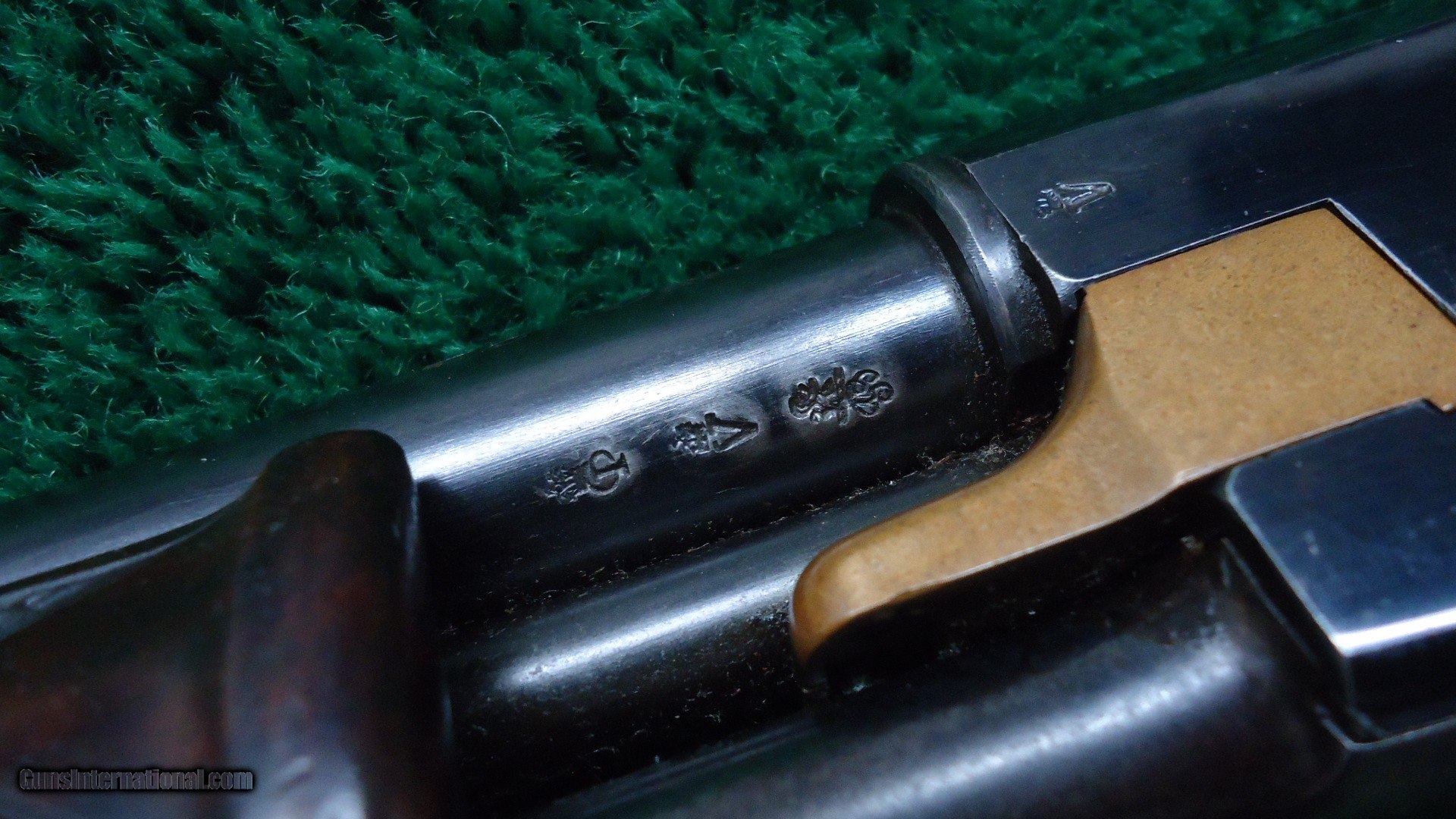 Description: Gun has English proofs as well as a Colt Letter stating it was shipped to Colt's Patent Fire Arms Mfg Company London Agency March 26, 1896. Letter also states 22 Rimfire, 24 inch Octagon configuration, Blue finish, Full pistol grip, checkered wood. Special features are the Colt peep and Beach combination sights. Beautifully cased in a leather case with Holland & Holland label inside. Most of the lining is in tact. Accessories include a cleaning rod and oil bottle as well as some Eley 22 caliber cartridges. On the outside are the initials "E.V.F.". Gun is in fantastic condition. 24 inch round barrel retains about 95% blue with a very good bore. Original sights. Receiver retains about 98% blue with vivid case color on the hammer. Trigger guard is starting to tone slightly. Walnut stocks have good checkering and most lacquer remaining. Correct hard rubber shotgun style buttplate. Mechanics are excellent. This one is excellent inside and out. A Colt letter accompanies the outfit that is addressed to Dr. Chester Bonoff who was a great old collector from days gone by. He had some of the best Colt's in the world. Leroy Merz Antique Firearms specializes in antique and vintage Winchesters and other fine American firearms. Since 1965 Mr. Merz has taken part in the world of firearms and has been a contributor to many well known reference books. We have hundreds of additional guns in every price range at our home online. Search for Merz Antiques in google. SOLD Antique: Yes Rifle Caliber: .22 Long |