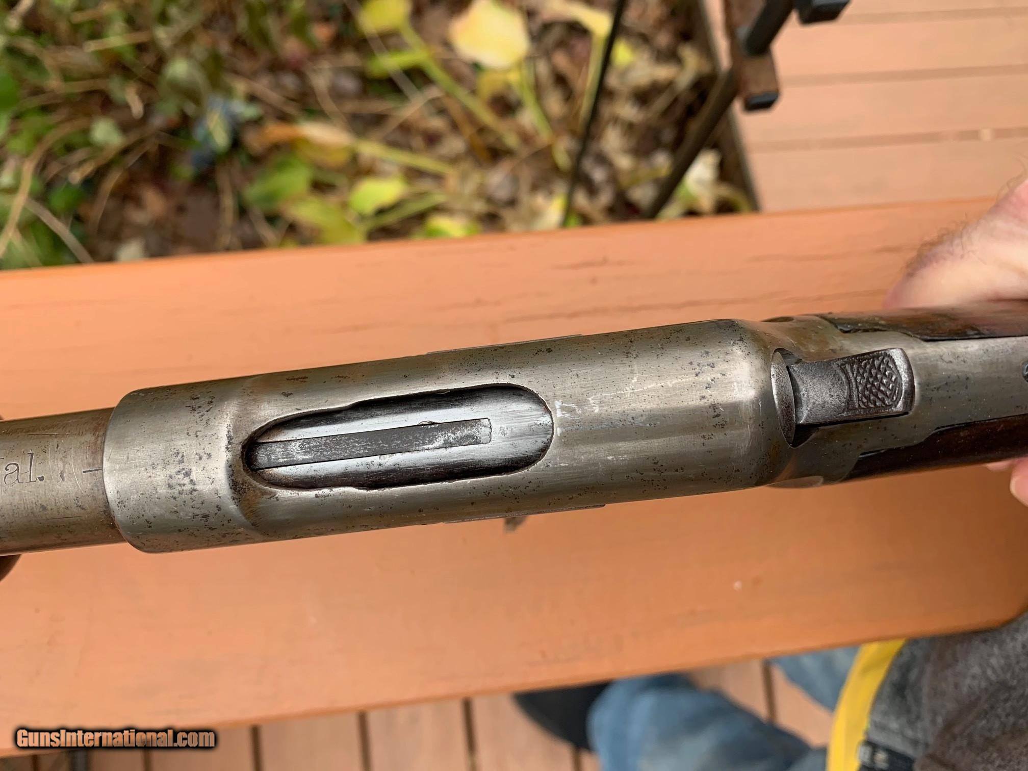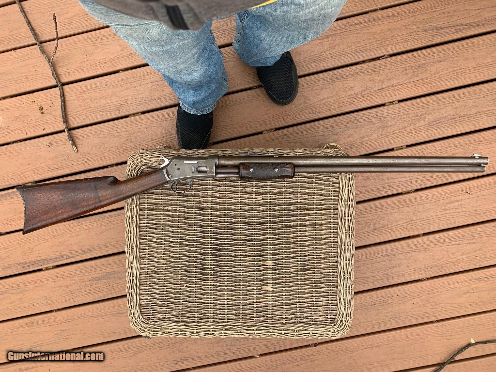 Description: Colt Lightning magazine rifle in 44-40 made in 1887. All original grey gun. Nice lettering on barrel and serial. Minimal dings etc. on wood, screws are equally nice and undamaged. Open top early gun. Checkering is very strong on the forend with no cracks. The bore is teriffic! Should be a great shooter. Sold as is. Have checked by a competent gunsmith prior to shooting. Antique so ships direct to you. SOLD Rifle Caliber: .44-40 Winchester Manufacturer: Colt Model: Lightning |