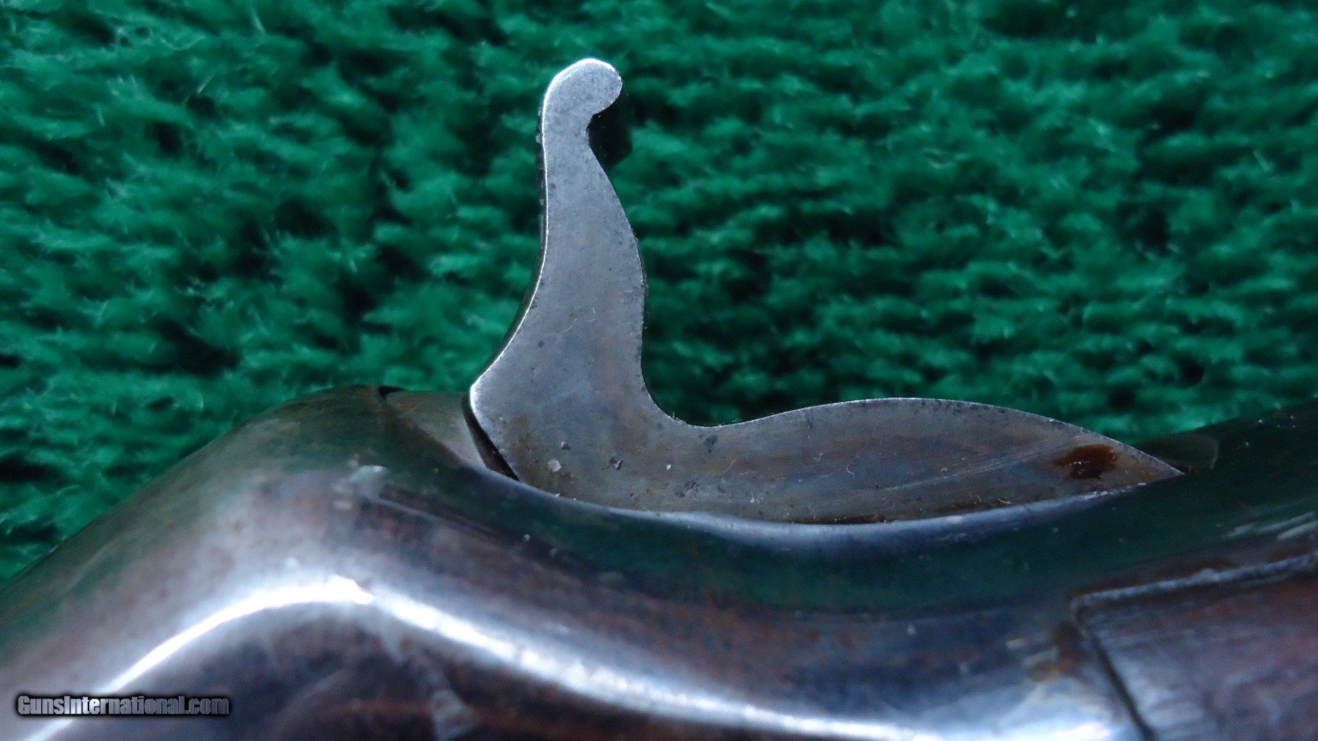 Description: 26 inch round barrel chambered in 32 caliber with a good bore that is near bright with scattered light to moderate pitting and good rifling. Barrel shows about 60% thinning finish starting to turn brown. Sights include a replacement hunter’s style front with German silver insert and original sporting rear with a tang mount graduated peep. Magazine tube shows about 70% finish with a few light dents near the end. Receiver is the early style before dust covers and shows about 70% finish with very light freckling. Traces of case color on the hammer. Walnut slide handle and buttstock show light cleaning. Features a rifle butt. Good looking early example made in 1885. Leroy Merz Antique Firearms specializes in antique and vintage Winchesters and other fine American firearms. Since 1965 Mr. Merz has taken part in the world of firearms and has been a contributor to many well known reference books. We have hundreds of additional guns in every price range at our home online. Search for Merz Antiques in google. SOLD Antique: Yes Rifle Caliber: .32-20 Winchester |