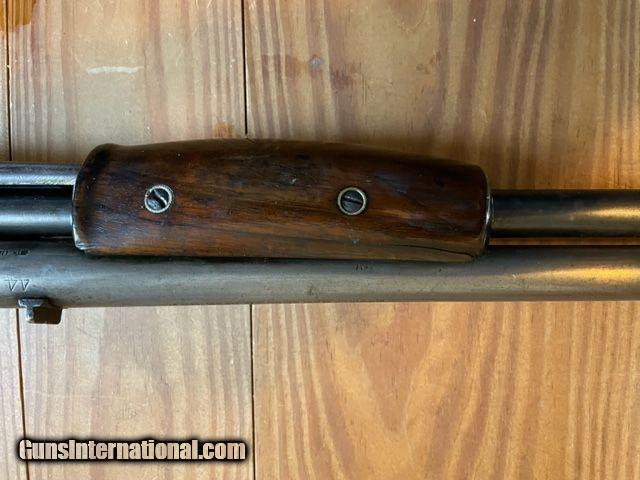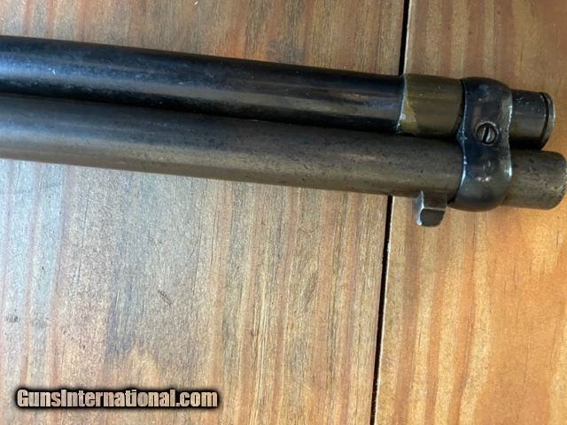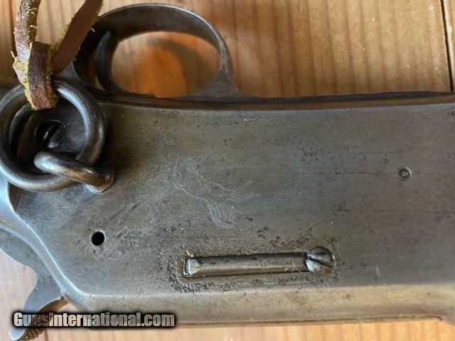 Description: Colt Lightning Saddle Ring Baby Carbine in 44 WCF (44-40). Serial # dates to 1898. Baby Lightning Carbines weigh 1 lb. less than "Regular" Saddle Ring Carbines. Barrel length 20". London proof marks on barrel, Colt records show multiple orders of Colt Lightnings shipped to London England in 1898. Magazine tube w/front clamp has been replaced, looks correct.Everything else is original. Bore is great, I would rate it 8-9 on a scale where 10 is mint. Stock and forearm show well, no damage. Original blueing gone, Rampant Colt Etching on LS of receiver in great shape. Inletting perfect from factory, prominent barrel address and proof marks. Correct sights. SOLD Antique: Yes Rifle Caliber: .44-40 Winchester Manufacturer: Colt Model: Baby Lightning Carbine Metal Condition: Great Wood Condition: Great Bore Condition: Great Action: works well |