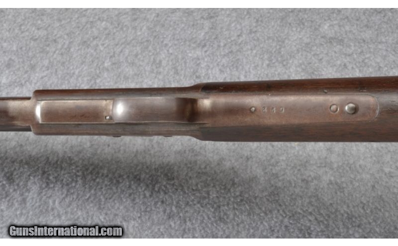 Description: Metal is brown patina throughout and bore shows strong rifling with scattered old pitting. Wood remains solid and has darkened with age. Mechanical functtion is stiff and needs a good cleaning. Early 3 digit serial number. SOLD Manufacturer: S/N 8XX Caliber Info: .44-40 Metal Condition: Good Wood Condition: Good Bore Condition: Fair Barrels: 26 Triggers: Original Stock: Uncheckered Walnut Stock Dimensions: 13 1/4" LOP Fore End: Checkered Walnut Butt Pad: Crescent Steel Weight: 6 3/4 LB Sights: Blade Front - Notch Rear Item Location: Wheeling, WV |