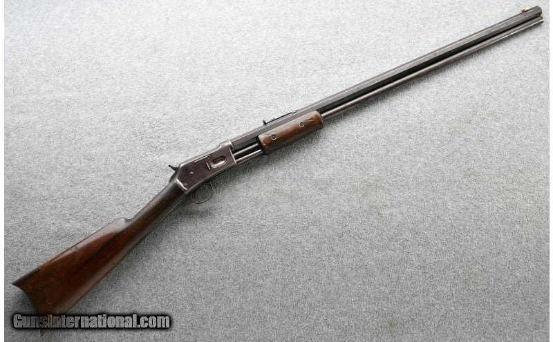 Description: This Colt Lightning was manufactured in 1886, the second year of production, and ended in 1904. Total production is estimated at 89,777 units in various calibers. .38-40 WCF SOLD Antique: Yes Chambers: .38-40 Winchester Center Fire fifteen round tubular magazine slide-action rifle Metal Condition: "Fair, shows mostly plum-brown patina with scattered rust spots, some slightly marred screw heads Wood Condition: "Good, shows a hair-line crack at the wrist, right side and a small crack at the rear of the slider, lower right side. A significant gouge on the comb and various scuff marks Bore Condition: The bore shows three distinct rings near the muzzle with light to moderate pitting Barrels: 26" Octagonal Triggers: Single Stock Dimensions: 13 3/8" LOP Fore End: Checkered walnut slider Butt Pad: Crescent metal Weight: 7 Lbs. 6 Oz. Sights: "Rocky Mtn style front blade, Sporting leaf rear Item Location: Grand Junction, CO |