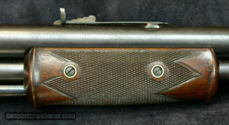 Description: #44396, .38-40, 26 inch round barrel, correct barrel sight, Rocky Mountain front sight, no information available in Colt records, circa 1890. Condition: mirror bore, 95% barrel blue, tinny spot of oxidation and some "speckling" on barrel, 95% receiver blue with scattered scratches, excellent walnut, excellent mechanically, excellent markings. SOLD Antique: Yes |