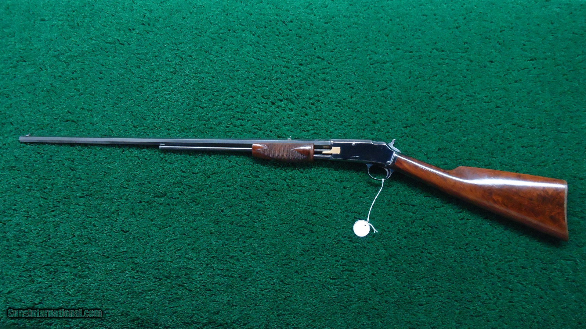 Description: Special order 26 inch octagon rapid tapper barrel. Excellent bore. Original sights. Beautiful fancy grained buttstock is very good. Uncheckered with rubber buttplate. Forearm is deluxe checkered fancy burl wood. Most all varnish remains. Gun is in excellent condition overall. Frame has beautiful Niter blue remaining. The barrel has about 97% original blue remaining. Bright case colors on the hammer. Fantastic Colt that would be hard to improve upon and would be the centerpiece of any 22 caliber or Colt collection. Leroy Merz Antique Firearms specializes in antique and vintage Winchesters and other fine American firearms. Since 1965 Mr. Merz has taken part in the world of firearms and has been a contributor to many well known reference books. We have hundreds of additional guns in every price range at our home online. Search for Merz Antiques in google. SOLD Antique: Yes Rifle Caliber: .22 Long |