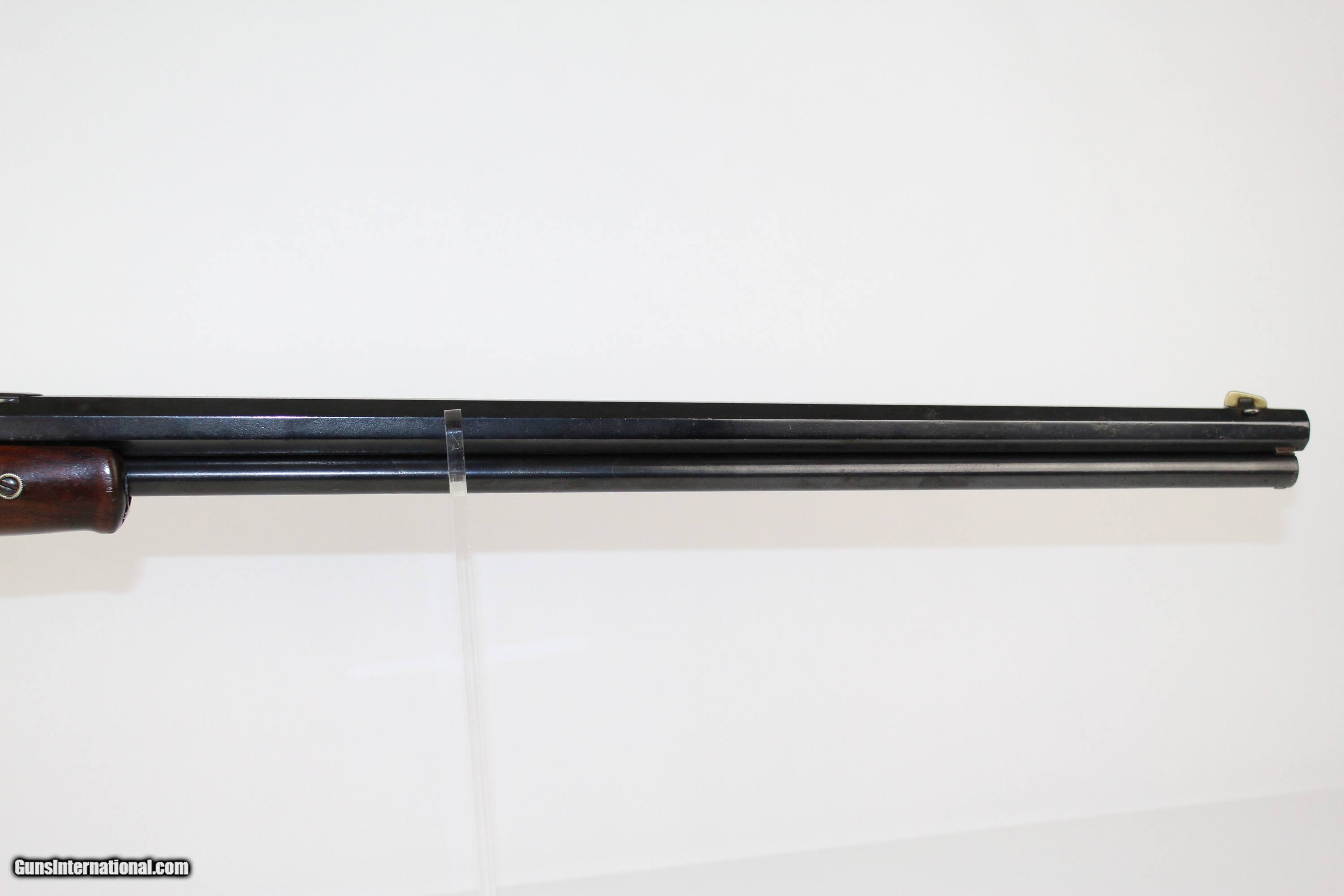 Description: FIRST YEAR Antique Colt “LIGHTNING” Rifle in .44 Slide Action Repeater Made in 1884 Here we present an antique Colt Lightning Medium Frame Slide Action Rifle, made in 1884, in Hartford, Connecticut. This was Colt’s entry into the pistol caliber rifle and carbine market, which was absolutely dominated by Winchester at this time. Pistol caliber rifles were instrumental in the hands of those settling the West, as they were able to carry one type of ammunition to feed both their long gun and their sidearm. It also enabled a rifle to be stoked with the maximum number of cartridges, sacrificing power for capacity, useful when outnumbered at close range. The Colt Lightning was successful, but never approached the numbers that Winchester’s lever action was able to achieve. The top of the barrel is marked “44 Cal” and “COLT’S PT.F.A. MFG. CO. HARTFORD. CT. U.S.A./ELLIOT’S PATENTS MAY 29.1883.SEPT.18.1883”. The overall condition is very good. The metal surfaces have been reblued. The markings are clear and legible. The bore is in good condition with strong rifling. The stock is in good shape. The action on this rifle is strong. Own the original! This is a legitimate antique and not a reproduction. Barrel is 26 inches. Caliber: .44-40 Overall condition as seen in photos. Very Fast. Very Safe. FREE SHIPPING WORLDWIDE. Delivered directly to your door by express mail! Guaranteed AUTHENTIC & Includes CERTIFICATE OF AUTHENTICITY. ancestryguns $1900 #6620 SOLD Antique: Yes |
