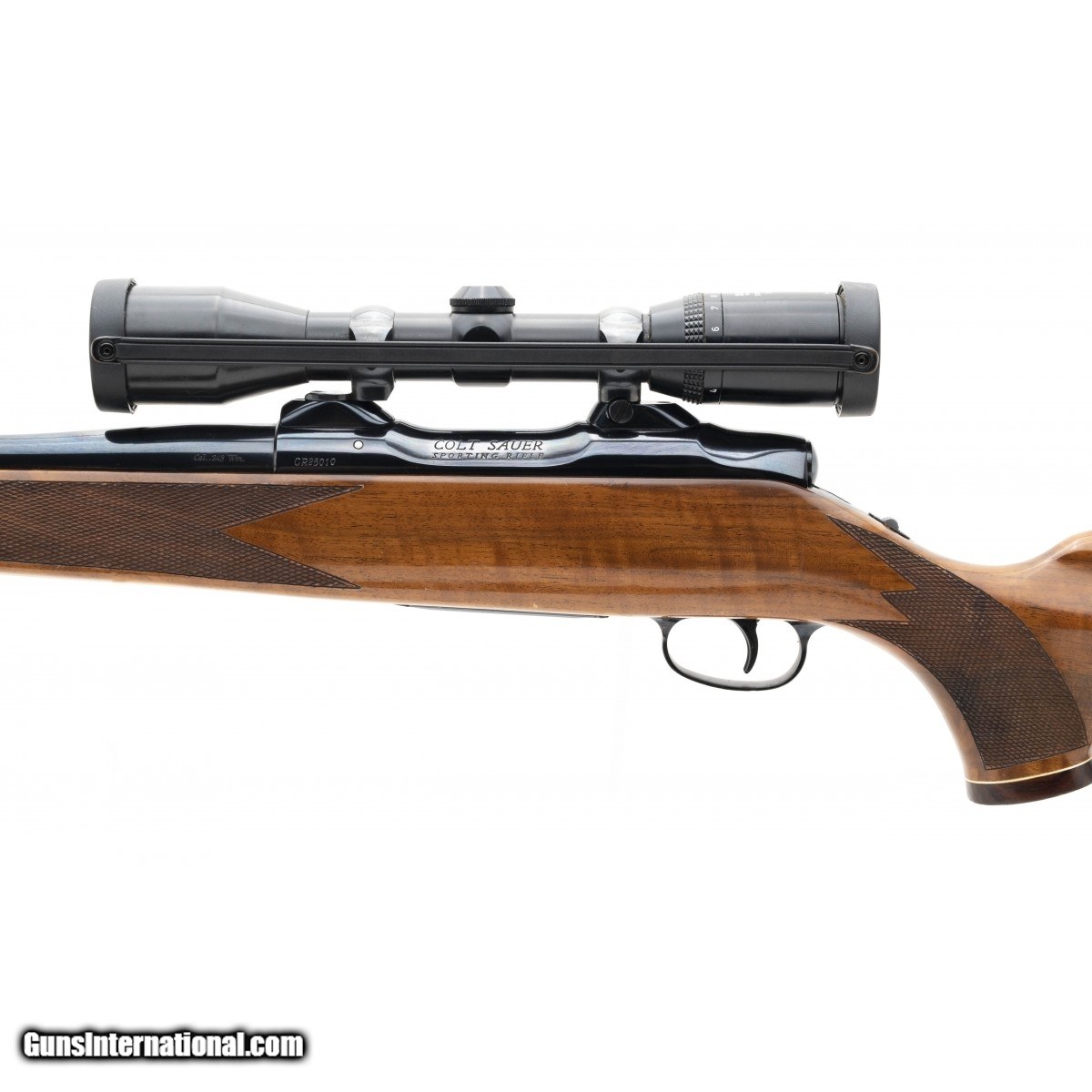 Description: " West German made Colt Sauer rifle in popular deer hunting caliber. The bore is excellent, bright with strong rifling. The rifle has a nicely figured deluxe walnut stock. Comes with a Zeiss Diavari-C 3-9x36 scope. Overall condition is excellent with light handling marks. SOLD |