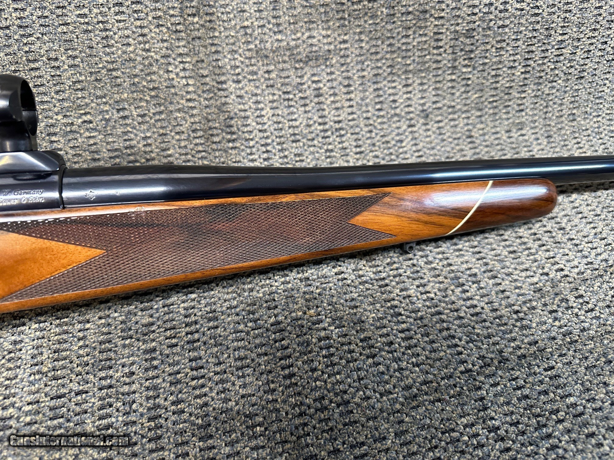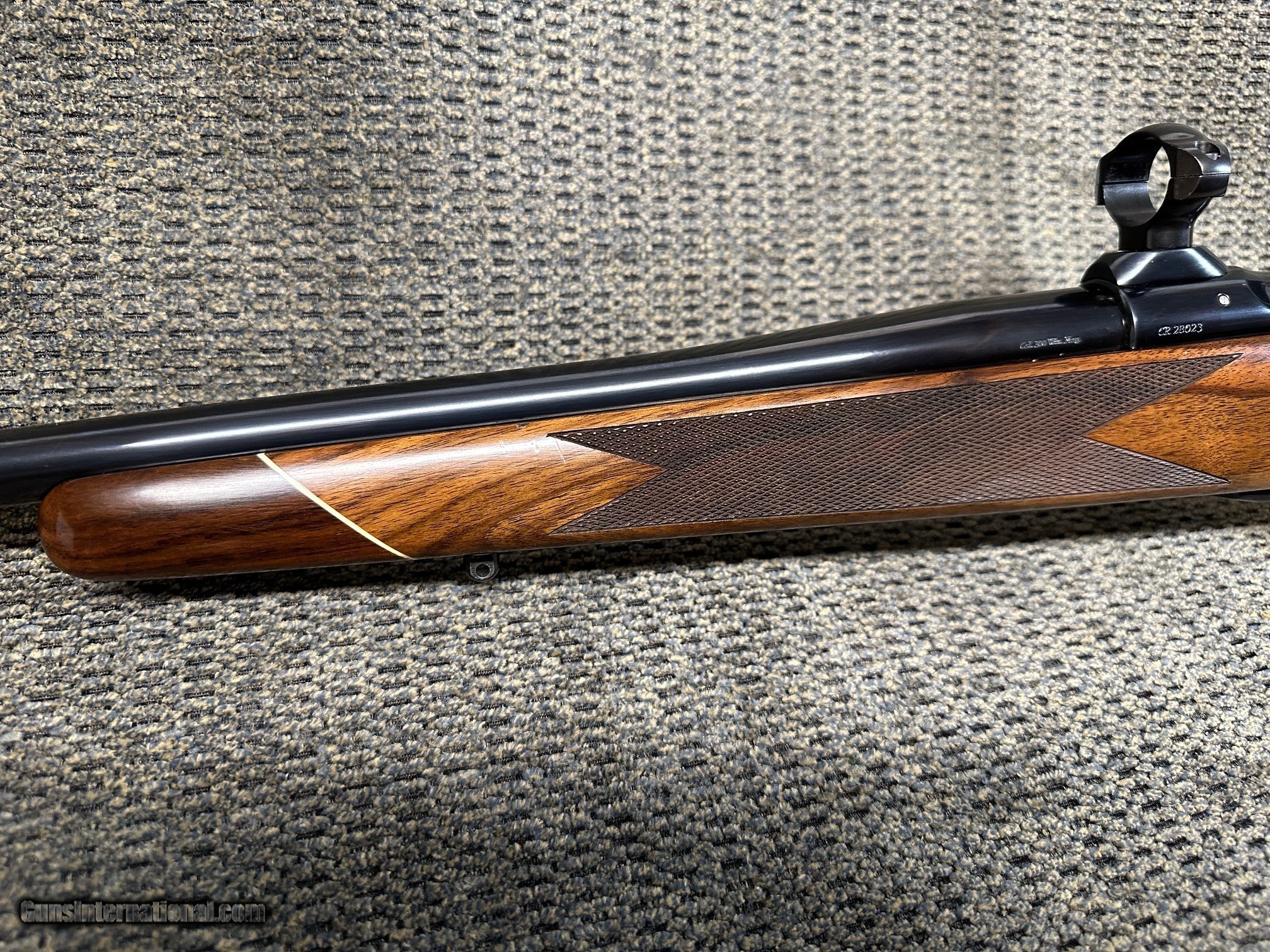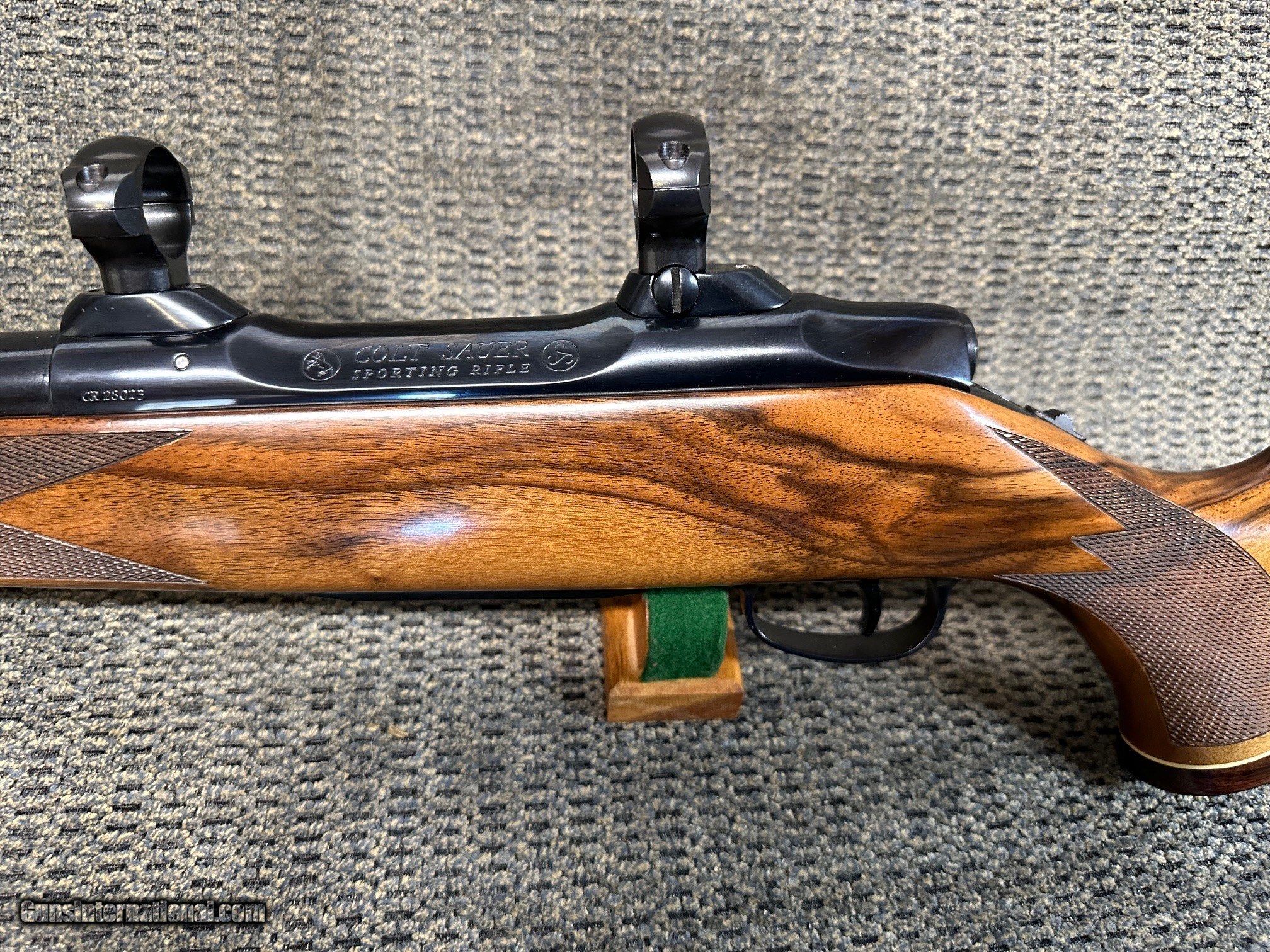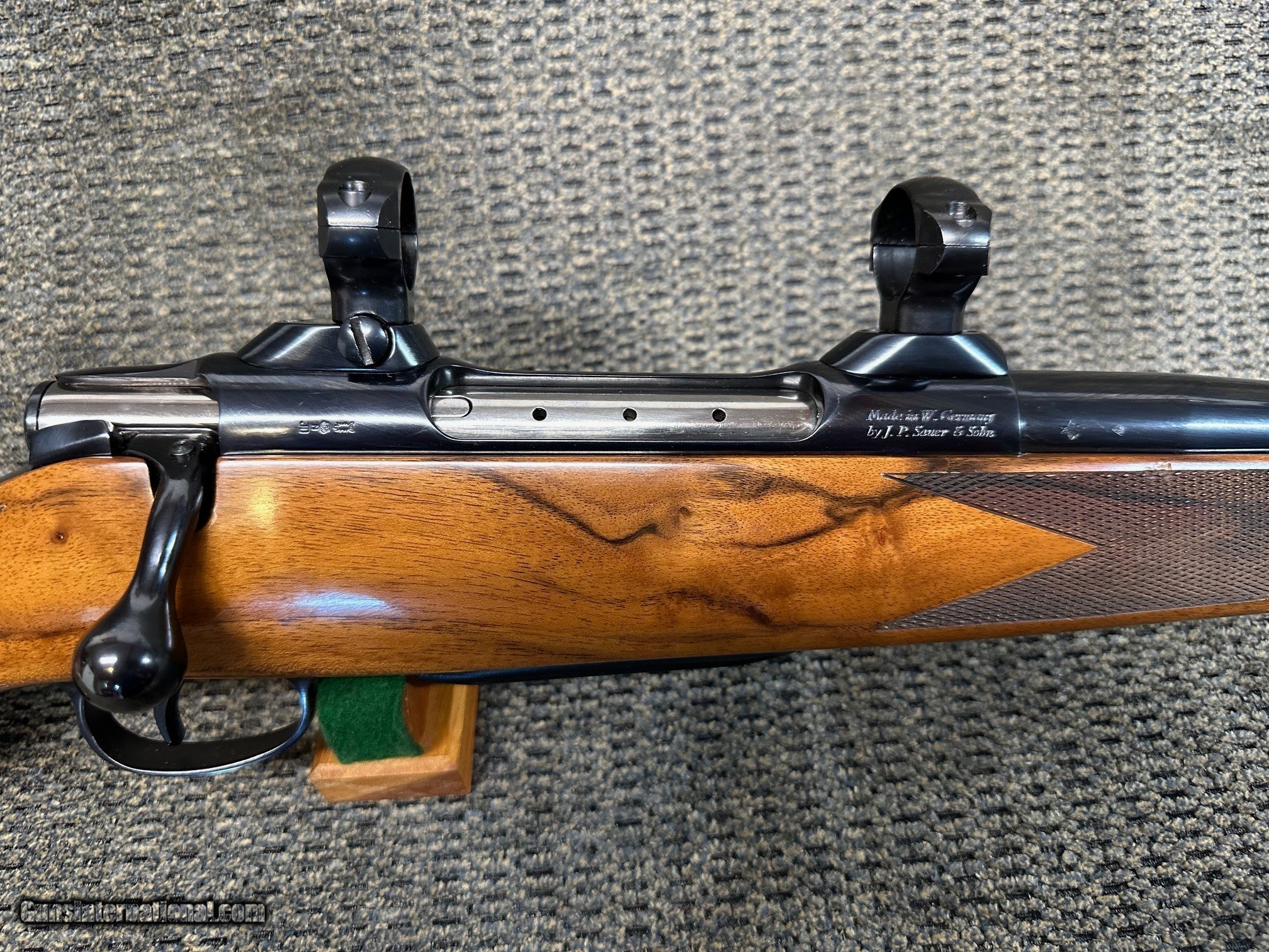 Description: **STUNNING** Colt Sauer chambered in 300 Winchester Magnum. These fine rifles built by JP SAUER in Germany from '74-'85 were the pinnacle of German design, elegance, and quality craftsmenship. Built for Colt for the American sporting firearms market. The super smooth bolts on these rifles sport 3 rear retractable locking lugs. 24" barrel on this one with bore as new. This fine rifle shows very little use, however it does have a half dozen small handling marks on wood, the most notable being on the right side at top edge of checkering on forearm. Not deep, but there. I would rate the wood at 97-98%. Factory recoil pad. The deep, rich blueing on this piece is 99%. Nearly perfect! An Absolutely Beautiful rifle! Equipped with Redfield bases and rings. Shipping & Insurance will be $100.00 to your FFL in the lower 47. NO CA Sales. Thanks for looking. SOLD |