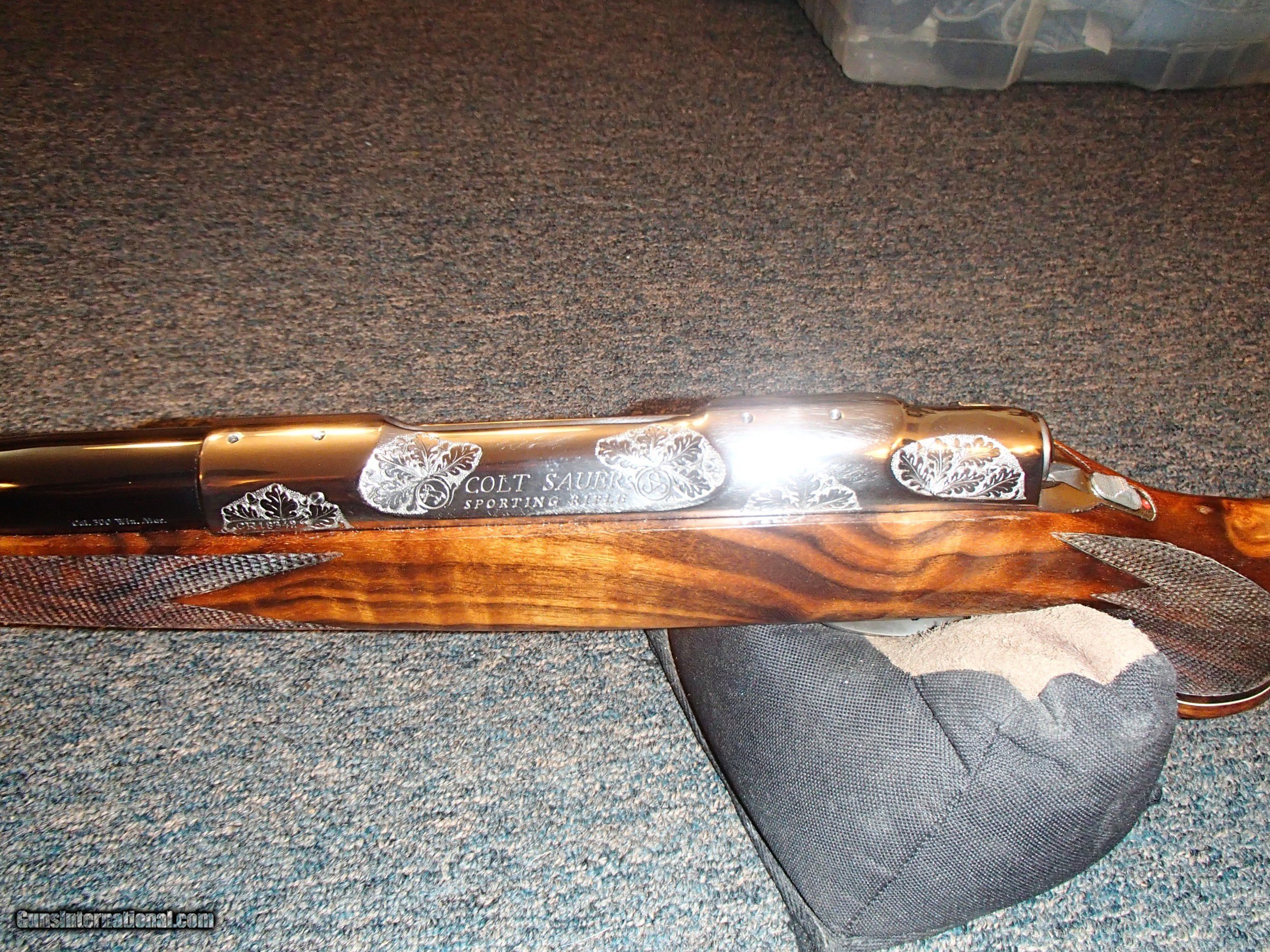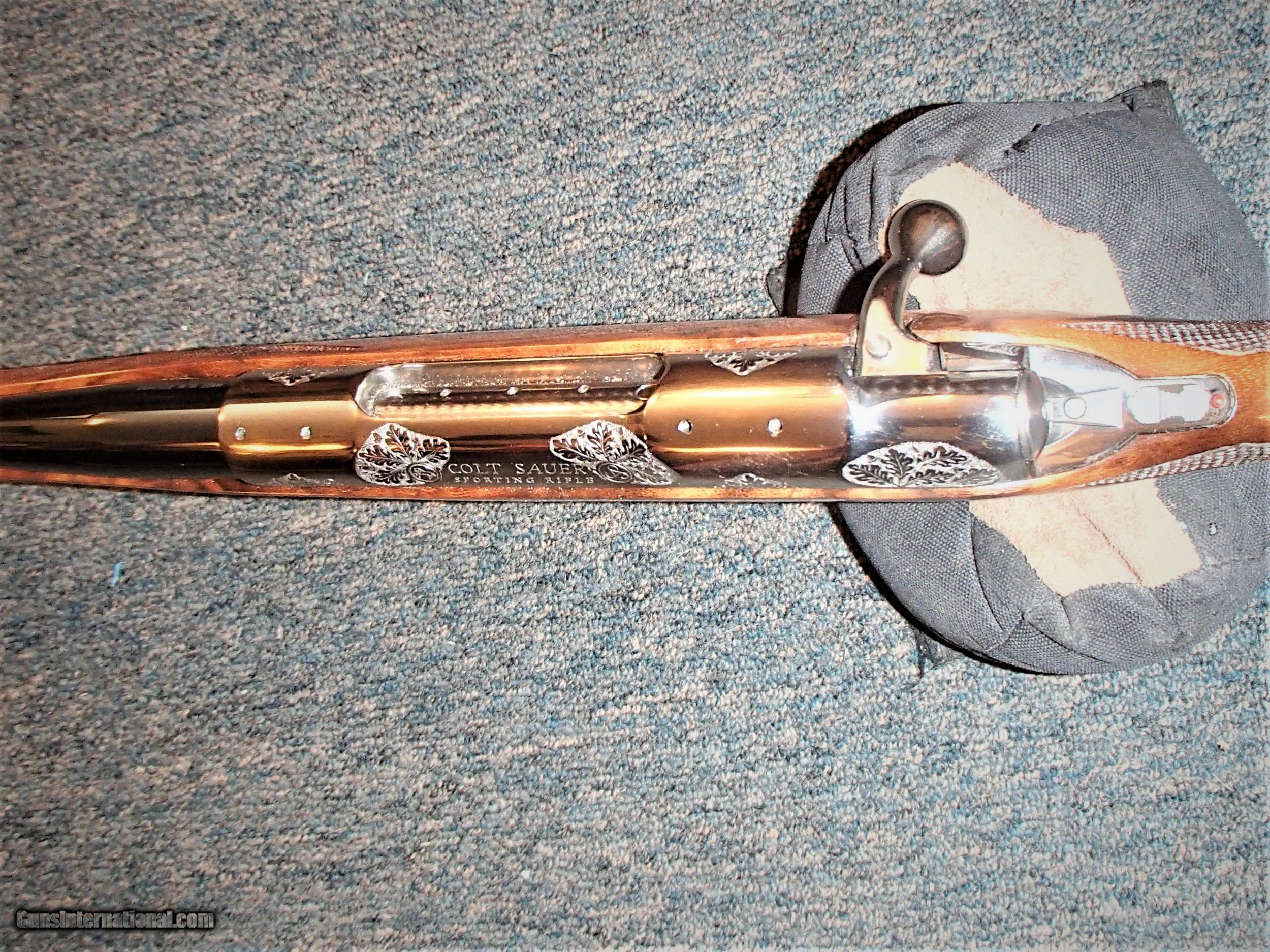 Description: This is a very nice Grade III Colt Sauer 300 Win. Mag. These are the rarest of the Colt Sauers. take a look at the exhibition grade stock. It is in 98% condition just a few extremely small handling marks.4599.00 . I dont think it has ever been fired. They don't get much better than this! This is factory stock and I have owned it for 10+ years. SOLD Manufacturer: Colt Sauer Caliber Info: 30 Condition: 98% Action: bolt |
