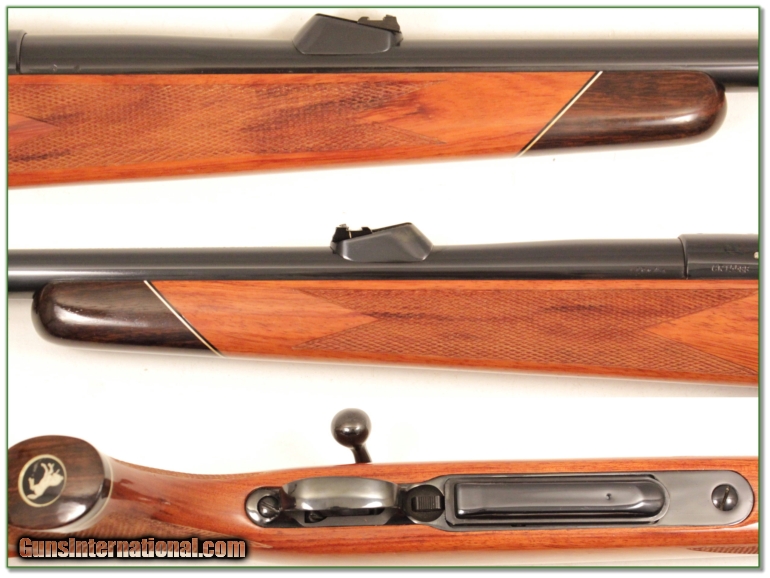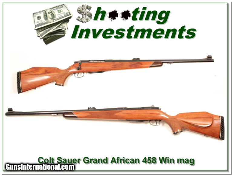 Description: This is a new condition Colt Sauer Grand African. It has beautiful wood and highly polished blue. If fired I’m sure not more than a few rounds and I’m sure never taken on a hunt. It will make an impressive gun for your next Safari or a perfect addition to any collection. It is a Shooting Investment. Shipping and insurance is $30 or $18 more if you want it shipped in a new Plano hard case. Please email me with any questions or larger pictures. (I now consign quality firearms only 10%! Let me know if you have any you would like to sell!) [14-0411] Terms & Conditions Payment: Payment is by Money Order, Cashiers Check or Personal Check. I can now also accept MasterCard and Visa with a 3% convenience fee. PayPal can be used for some items but never firearms. Please let us know if you would like to pay via PayPal. Shipping: The shipping charge will be listed in each description. It is $30 for most guns. Some heavy guns or those insured for over $2000 may be higher. Shipments to Alaska and Hawaii are higher because air shipment is required. Most firearms are shipped within 5 days of receipt of payment. We prefer shipping at the beginning of the week to avoid firearms in transit over weekends. We package all shipments carefully and insure them for the full purchase price, rounded up to the next $100. In the unlikely event that damage occurs, it is important that you save all packaging material for the claims process. Optics are shipped Priority Mail and most other non-firearm shipments are shipped First Class. Returns: Our return policy is simple. If for any reason you are not pleased with your purchase, you may return your item for a refund. The only exception is ammunition, it cannot be returned. It is important to us that you are happy. Guns cannot be fired or dissembled before returning them and must be returned in the same condition as received. Notification of a return must occur with-in 3 days of receipt at your dealer. Shipping, convenience and dealer fees are not refundable and are the responsibility of the buyer. Lay-a-way: If needed, we offer a 60 day lay-a-way option on most firearms. It is 1/3 now, 1/3 in 30 days and 1/3 in 60 days. Lay-a-way firearm sales are final. Consigning your firearms with Shooting Investments: We will help you get top dollar for your firearms. While most local guns shops charge 20% or more, our fee is only 10% with a minimum of $50. At your local gun shop it might take months to sell. Selling on-line provides instant access to thousands of interested buyers. You won’t find any other on-line dealer willing to sell your firearms for only 10% or listing every gun on 4 separate s. Selling through an House typically costs 15% and you have to wait several months to sell and longer to receive funds. If properly priced, we will sell your firearms in a week or two. Send us an email or give us a call and we’ll explain how easy it is for you to get top dollar. Trading: We collect guns and usually just trade for guns we want to add to our collections. We often sell guns for others wanting to purchase one of ours. We find this the most fair to both of us. Our Commission is only 10% and we hold the gun you want until yours sells. Please contact us if you want to sell one of yours to buy one of ours. Help for California Buyers: We are happy to ship to California. It is the buyer’s responsibility to make sure any item you buy is legal in your state. We are also happy to help with your purchase of a firearm from someone other than us. If you see a gun you would like to buy but the seller can’t or won’t ship to California we can help. You buy the gun and have it shipped to us. We’ll then ship it to your California dealer. The cost for this service is only $30 + shipping. Let me know if we can help! SOLD |