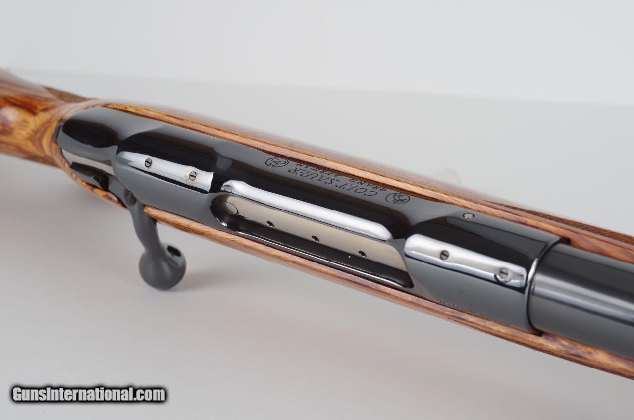 Description: Colt Sauer Grand African chambered in .458 Win. Mag with a 24'' barrel. This is a very high condition gun. The original bluing remains in near perfect 99%+ condition. The wood is also exceptional with only the slightest of handling and the wood rates 99%. The chamber area is very clean. The bore is bright and shiny with strong lands and grooves. Overall this one will be tough to upgrade. SOLD Manufacturer: Colt Sauer Model: Grand African Caliber Info: 458 Win Mag Metal Condition: 99%+ Wood Condition: 99% Bore Condition: 100% |