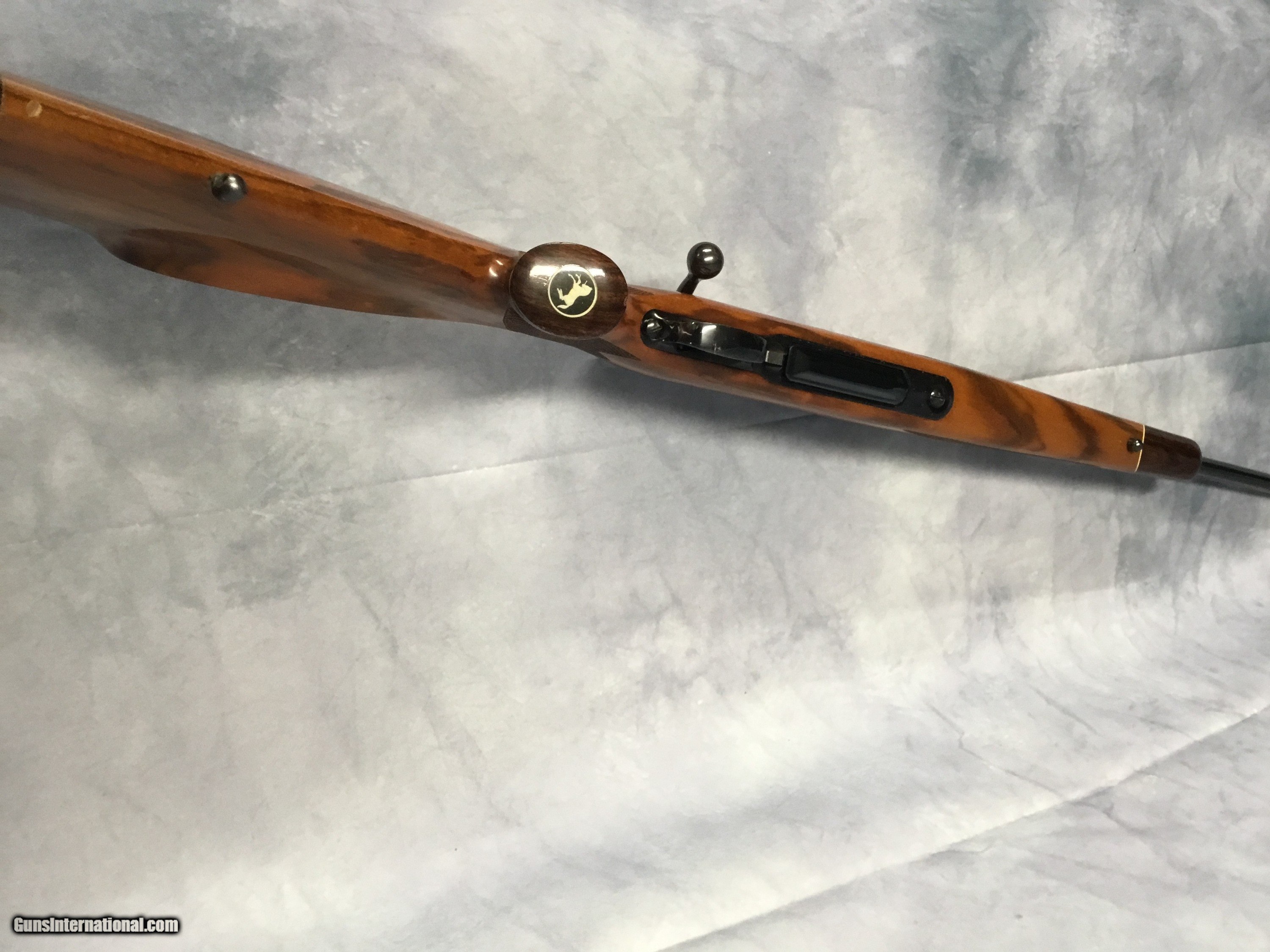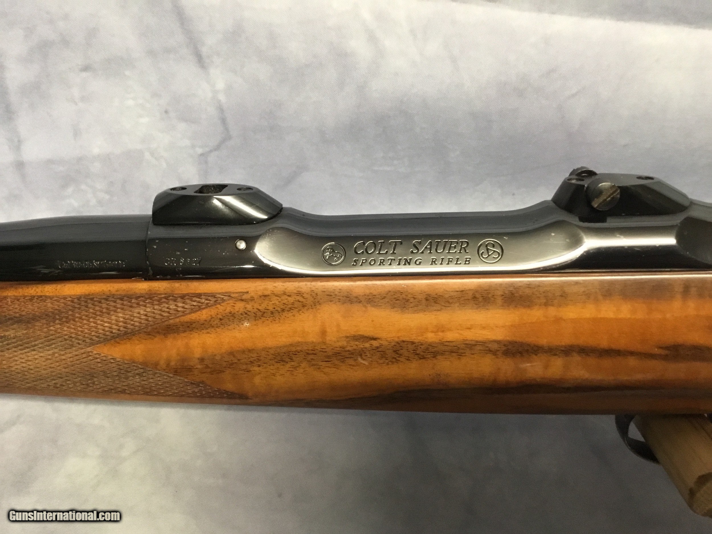 Description: This Colt Sauer is used and made several safaris to Africa to hunt plains game. It has several handling marks on the stock and some small spots of bluing loss on the receiver and bolt knob. This rifle is professionally fitted with a new Colt Sauer barrel with threaded end cap for suppressor. Barrel is 23.5 inches. No rounds have been fired in this new barrel. The receiver is medium length, smooth bolt run, and non-rotating locking lugs. The stock has a fancy grain walnut stock. This rifle would make a fine hunting rifle for white-tails. I follow all rules/policies of Guns International. Rifle must ship to a FFL dealer. Please call with any questions. SOLD |