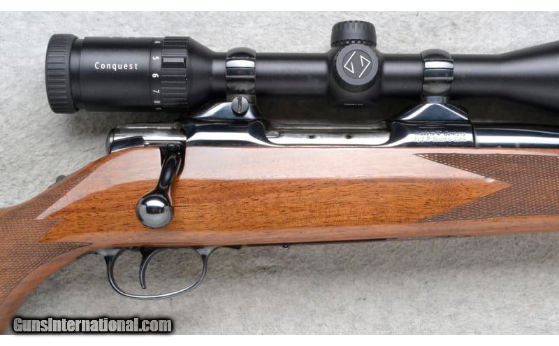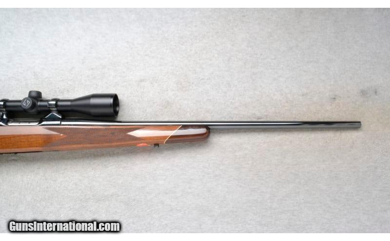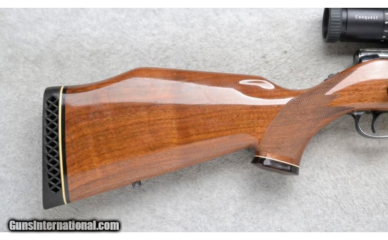 Description: This Colt Sauer Model Sporting Rifle is a right hand bolt action rifle in .243 Win. Cal. It has a 24 inch barrel. It is outfitted with a Zeiss Conquest 3-9x40 MC Scope. The butt stock is a checkered grip walnut pistol grip with raised cheekpiece and rosewood cap. The forearm is a checkered grip walnut with a rosewood top. The grooved trigger is adjustable. .243 Winchester SOLD Chambers: Detachable Magazine. Metal Condition: Very Good. Some very minor handling marks. Wood Condition: Very Good. Some minor use marks. Bore Condition: Excellent. Barrels: 24 inch. Triggers: Adjustable. Stock Dimensions: LOP 13 1/2 inches. Fore End: Checkered grip walnut with a rosewood tip. Butt Pad: Colt Sauer black rubber recoil pad. Weight: 8 lb. 10 oz. Sights: Zeiss Conquest 3-9x40 MC Scope. Item Location: Richfield, WI |