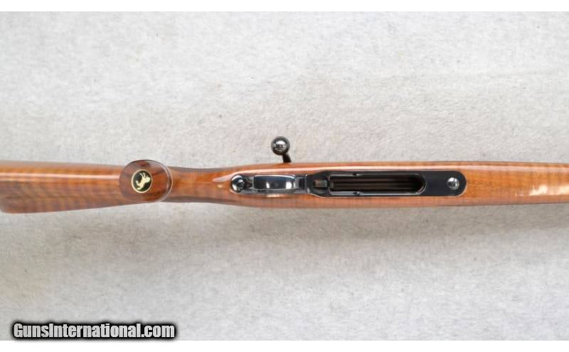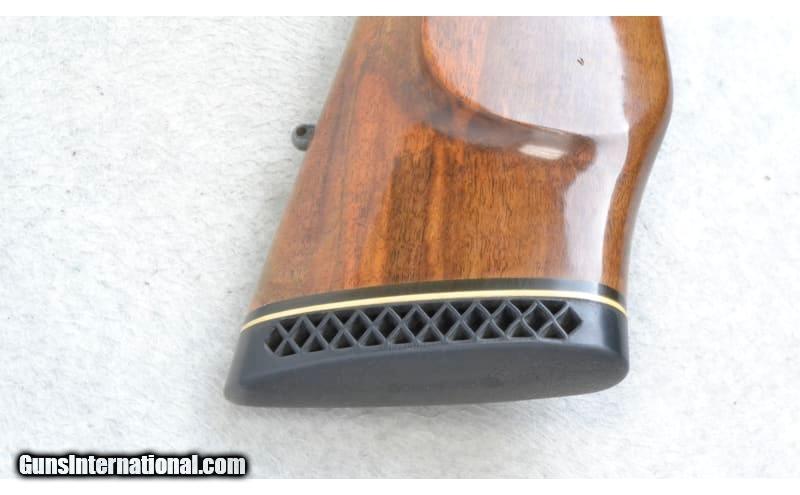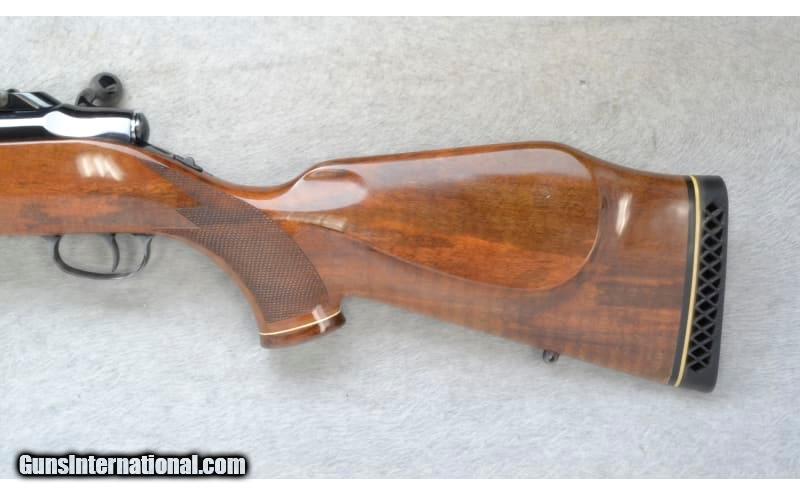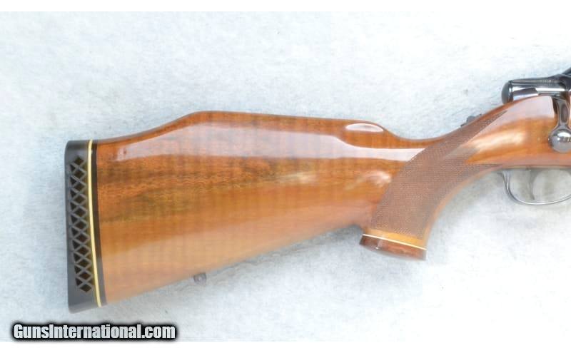 Description: This Colt Sauer Model Sporting Rifle is a right hand bolt action rifle in .25-06 Rem. Cal. It has a 23.5 inch barrel. Scope mount bases are installed. The butt stock is a checkered grip walnut pistol grip with a raised cheekpiece and rosewood cap. The forearm is a checkered grip walnut with a rosewood tip. The trigger is grooved and adjustable. Made in W. Germany. .25-06 Remington SOLD Chambers: Detachable Magazine. Metal Condition: Excellent. Wood Condition: Very Good. A few minor handling/use marks. Bore Condition: Excellent. Barrels: 23.5 inch. Triggers: Grooved. Adjustable. Stock Dimensions: LOP 13 1/2 inches. Fore End: Checkered grip walnut with a rosewood tip. Butt Pad: Colt Sauer black rubber recoil pad. Weight: 8 lb. 6 oz. Sights: Scope mount bases are installed. Item Location: Richfield, WI |