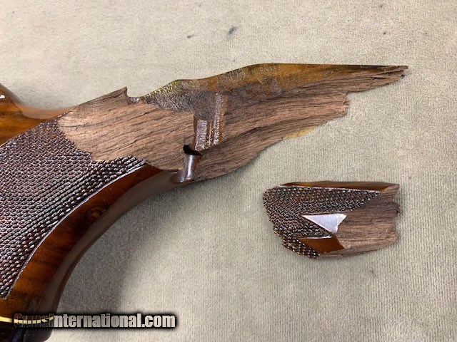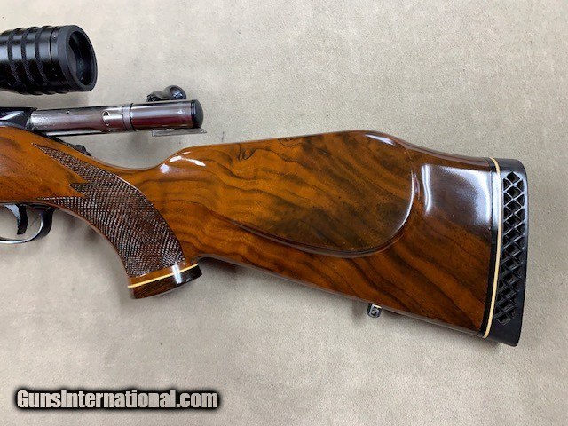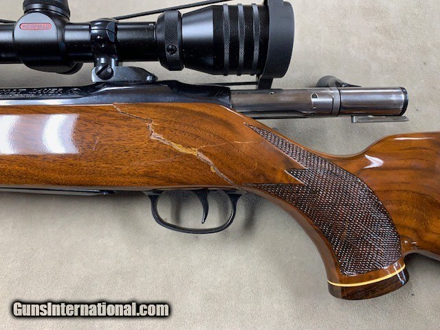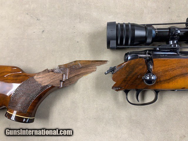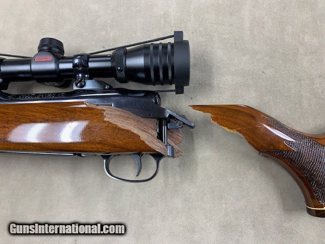 Description: THIS WAS THE ORIGINAL LISTING for this rifle but after selling it and shipping it to the buyer, UPS BROKE IT IN HALF at the wrist (see photos). It was a clean break and there are no pieces missing so a good stock man could put it back together (or even re-stock the rifle). It would be well worth it. XXXX A mint condition Colt - Sauer Sporting Rifle in .30-06 caliber and with a period Redfield 3-9x42mm Scope in proper mounts. This is the nicest Colt Sauer we have ever had the opportunity to offer, with absolutely superb highly figured walnut, perfect bore and chamber, etc. and all in absolutely mint condition overall. Colt contracted with J.P. Sauer to have these rifles manufactured and they were available some 40 years ago. We have owned many but this is probably the best one, XXXXX Due to the break at the wrist we are selling it now AS IS for 1/2 price. The first group of photos show how it used to look prior to ups - the last grouping show its condition currently. The only damage is to the stock. SOLD Rifle Caliber: .30-06 Springfield |