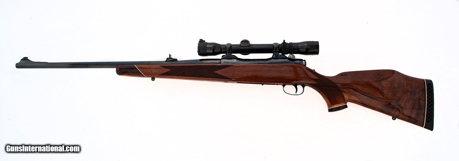Description: Very clean rifle with some light cabinet marks. SOLD Manufacturer: Colt Sauer Model: Sporting Rifle Caliber Info: .375 Holland & Holland Magnum Condition: Preowned Metal Condition: Very Good Barrels: 24 Action: Bolt Action Gauge Info: .375 Holland & Holla LOP: 13 5/8 Weight: 9.000000 Case: Browning Naugahyde C |