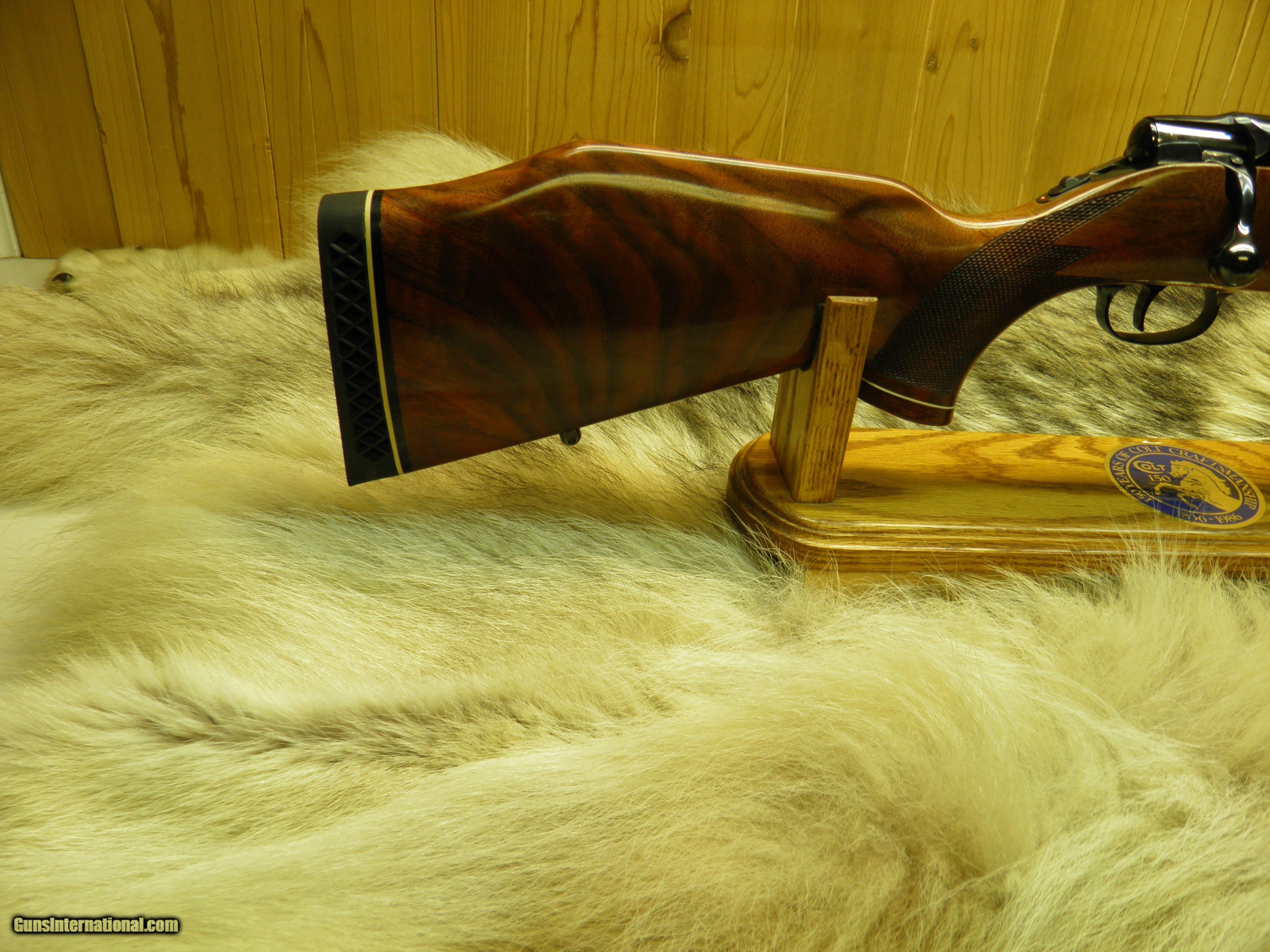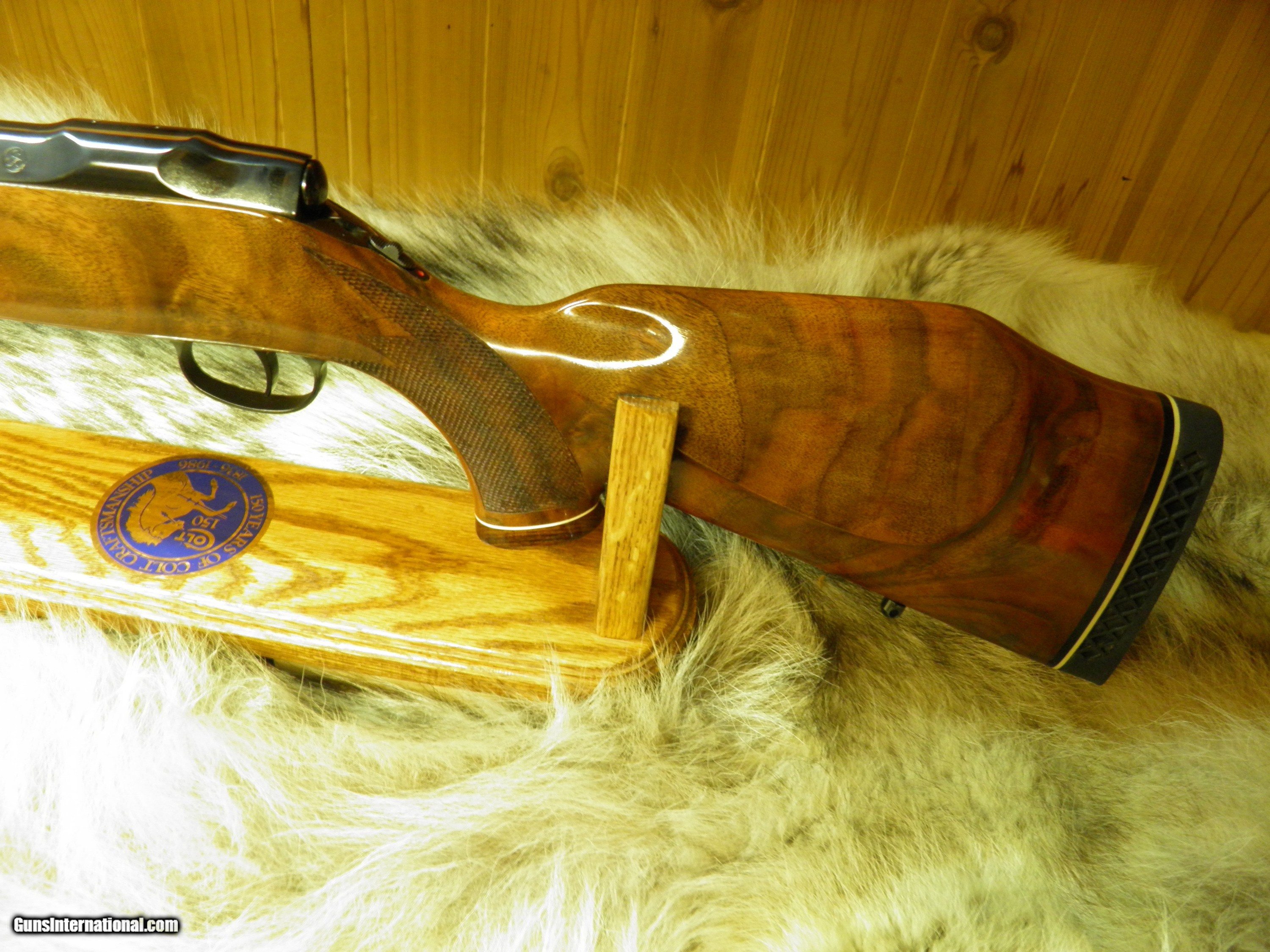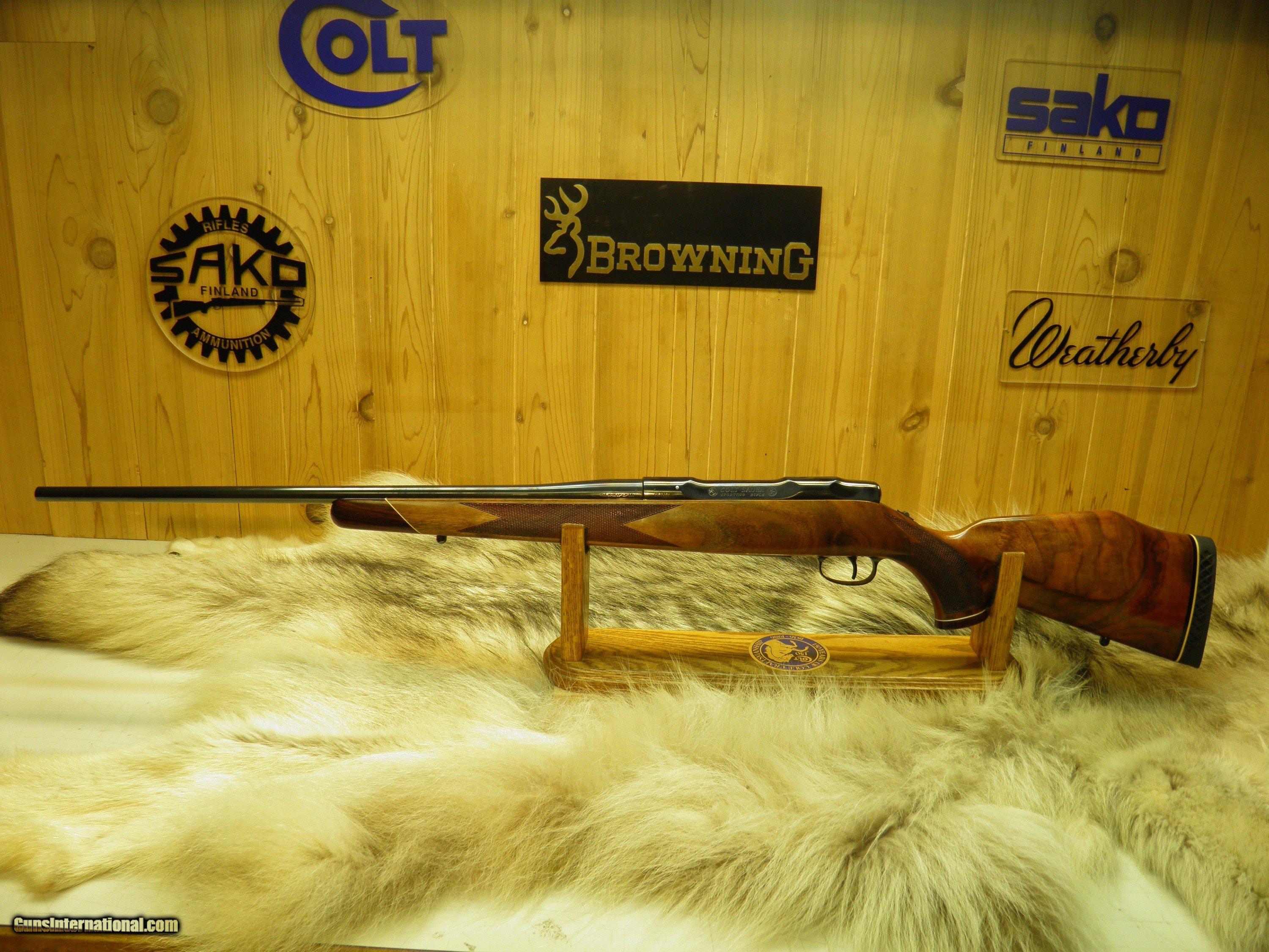 Description: COLT SAUER SPORTING RIFLE CAL: 30/06 MANF: 1978 BARREL LENGTH 24" WITH A 1 - 10" TWIST, RECEIVER DRILLED AND TAPPED FOR SCOPE MOUNTS, MAGAZINE CAPACITY 3 ROUNDS + I IN THE CHAMBER TOTAL FOUR, TRIGGER ADJUSTABLE WITH A ROLLER BEARING SEAR, THATS CRISP AND CONSISTENT WITH NO OVER-TRAVEL, TANG SAFTEY, ALONG WITH A LOADED CHAMBER INDICATOR ON LEFT SIDE OF RECEIVER, BOLT IS HIGHLY POLISHED FOR VELVET SMOOTH OPERATION, BEAUTIFUL HIGHLY FIGURED AMERICAN WALNUT, WITH MONTE-CARLO, CHEECK-PIECE, ROSEWOOD FOREND TIP AND GRIP CAP WITH COLT HORSE MEDALLION INLAY, HAND-CUT FINE LINE CHECKERING, ATTACHED SWIVEL STUDS, WOOD FINISHED IN HIGH GLOSS POLYURETHANE, METAL SURFACES ARE HIGHLY POLISHED, AND MASTERFUL BLUED, THAT SHOW THE DEEPEST MOST LUSTROUS MIRROR BLUE FINISH. SPECS> LENGTH OF PULL 13 1/2", OVERALL LENGTH 43 3/4", APPROX. WEIGHT 7 3/4 LBS, ONE OF THE SMOOTHEST AND PRECISION DESIGN, GERMAN CRAFTSMANSHIP, MAKE THIS ONE OF THE FINEST HUNTING RIFLES EVER MADE!! "CONDITION" 99%++ MINTY CONDITION AND UNFIRED. SOLD |