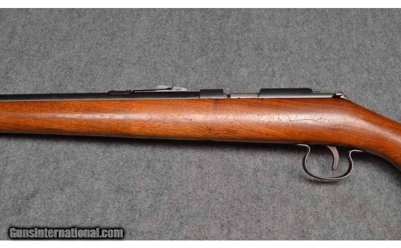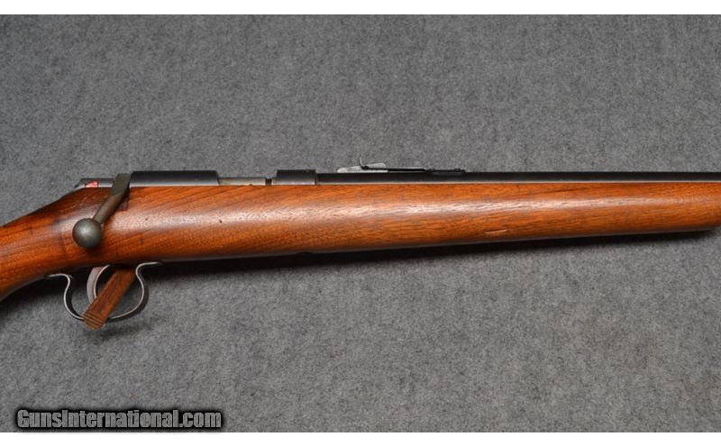 Description: This bolt-action rifle is a Colt Colteer, chambered in .22 LR. It has a 24" blued steel barrel, an adjustable rear iron sight with fixed front sight, and finished walnut furniture. This Colt Colteer is in good condition with only mild signs of use or .22 Long Rifle SOLD Chambers: Bolt-action rifle. Metal Condition: Good. Mild signs of use and wear. Wood Condition: Good. Mild signs of use and wear. Barrels: 24" blued steel barrel. Triggers: Single metal trigger. Stock Dimensions: 13-1/2" LOP. Fore End: Finished walnut furniture. Butt Pad: Black Colt butt plate. Sights: Adjustable rear iron sight, fixed front sight. Item Location: Wichita, KS |